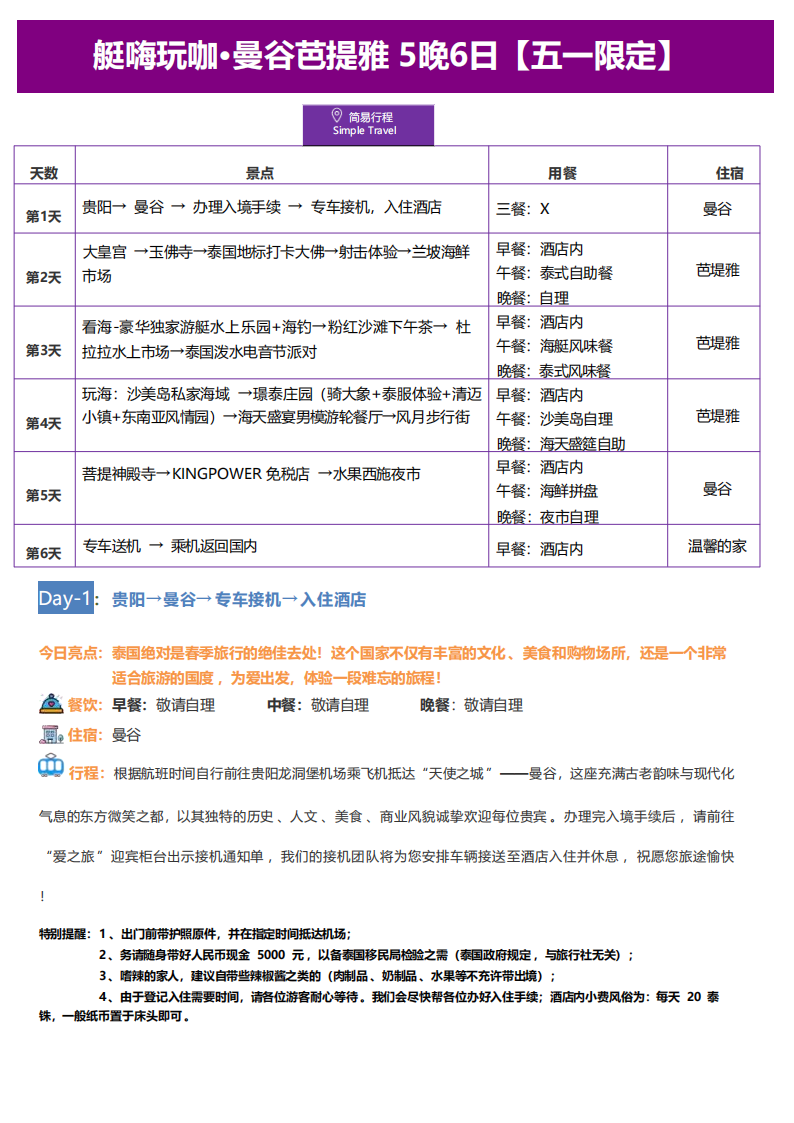 曼谷芭提雅6日游