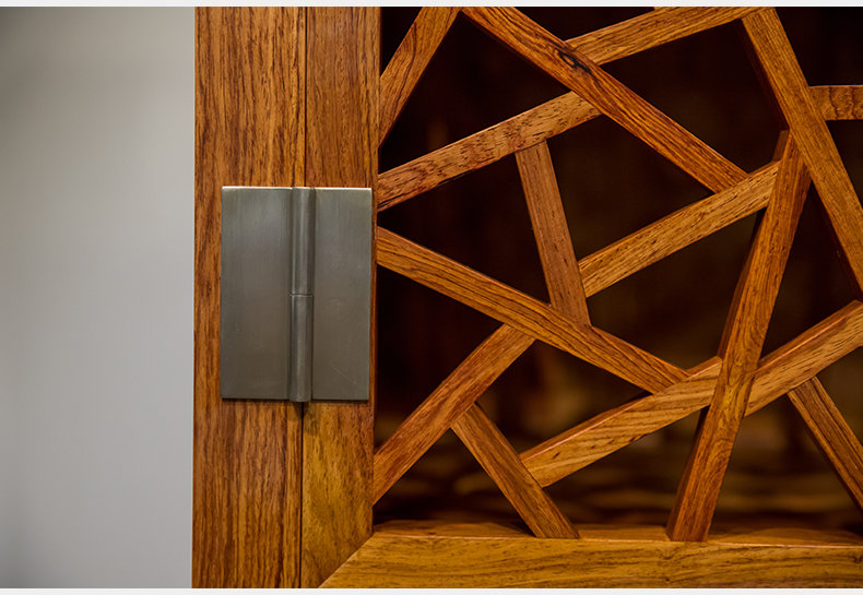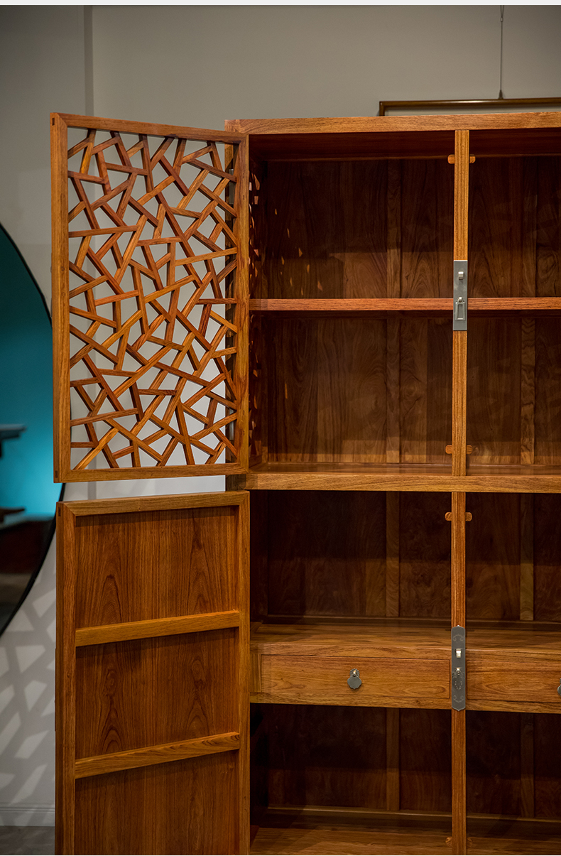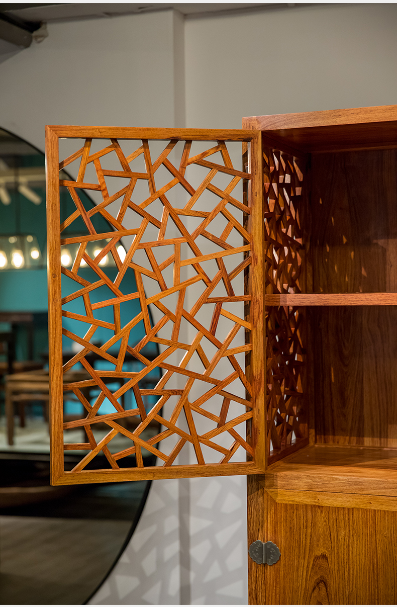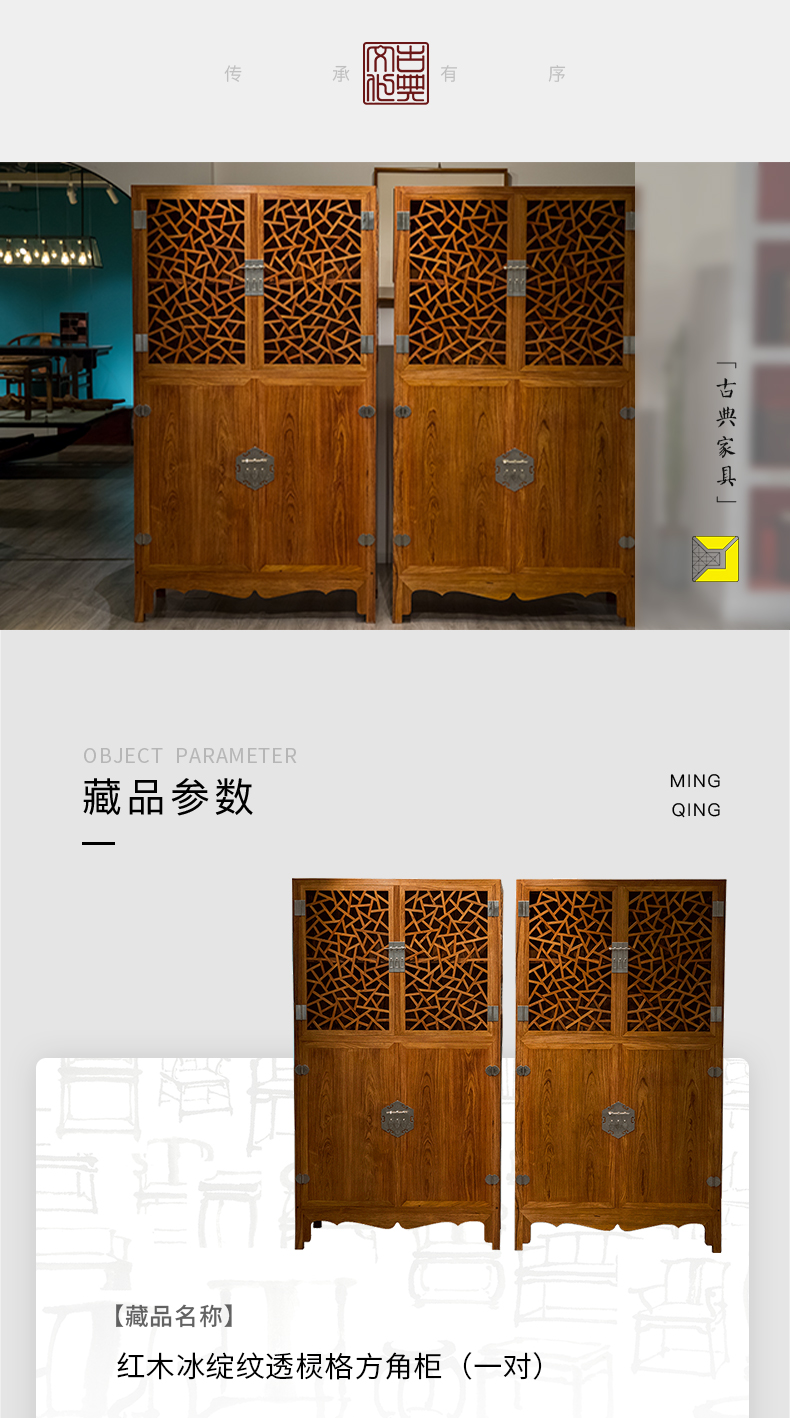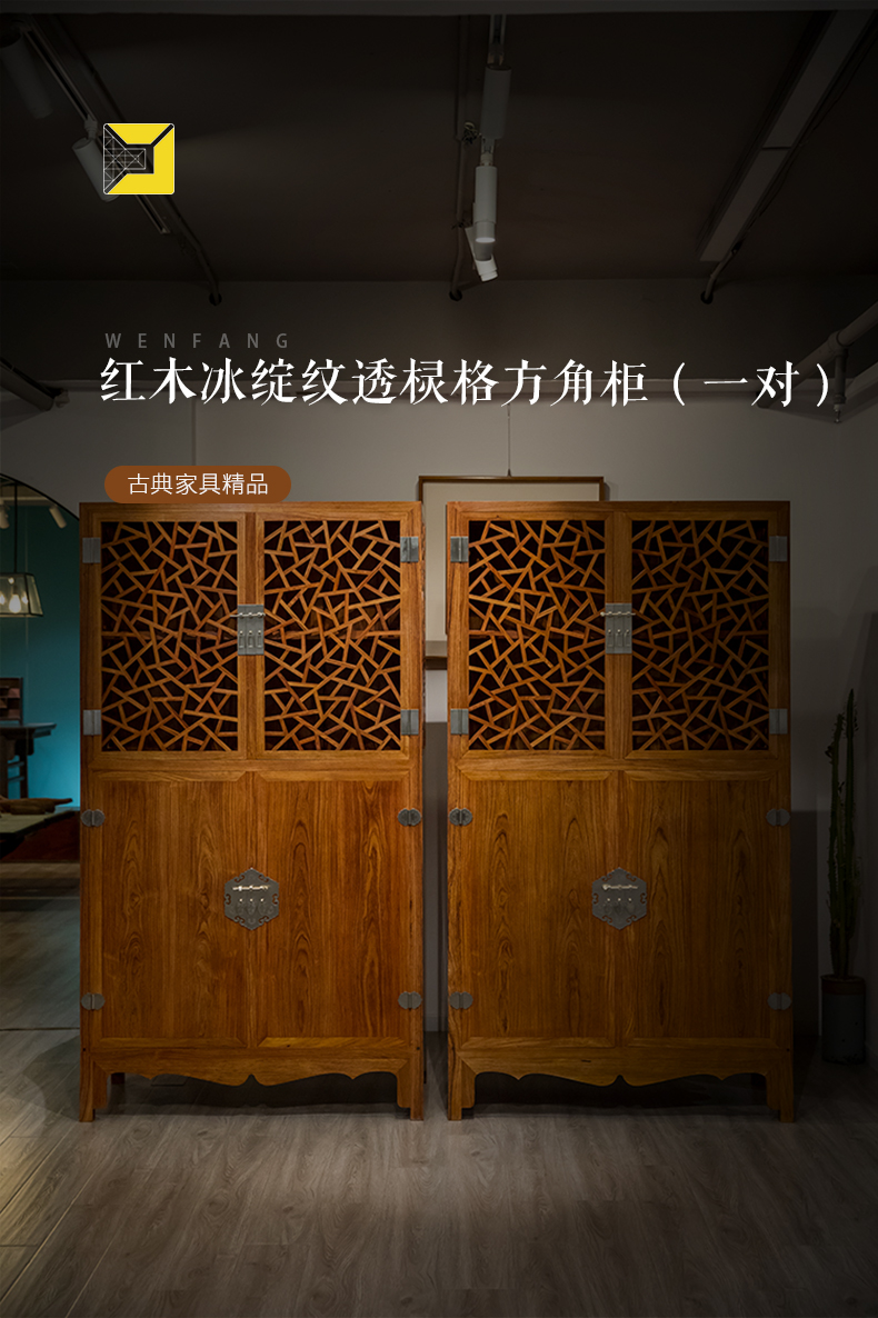 红木冰绽纹透棂格方角柜(一对)