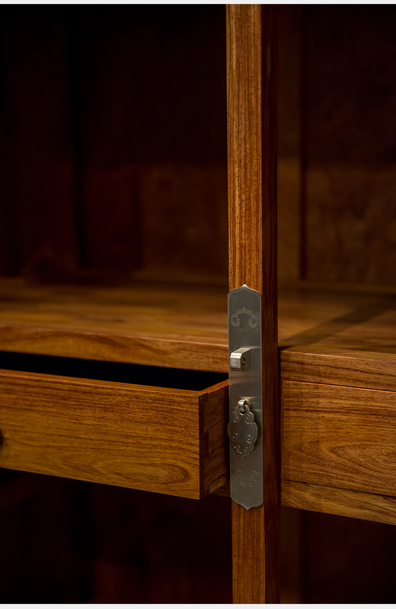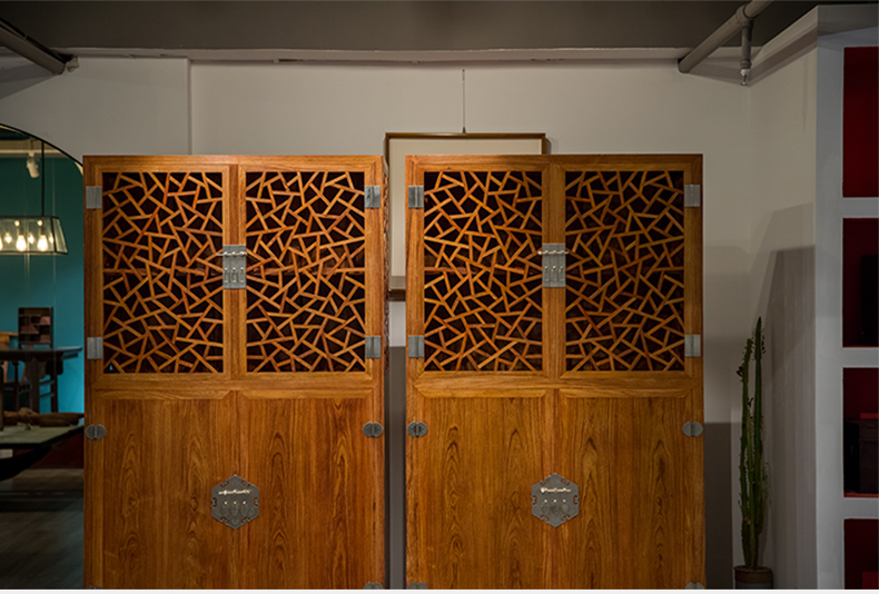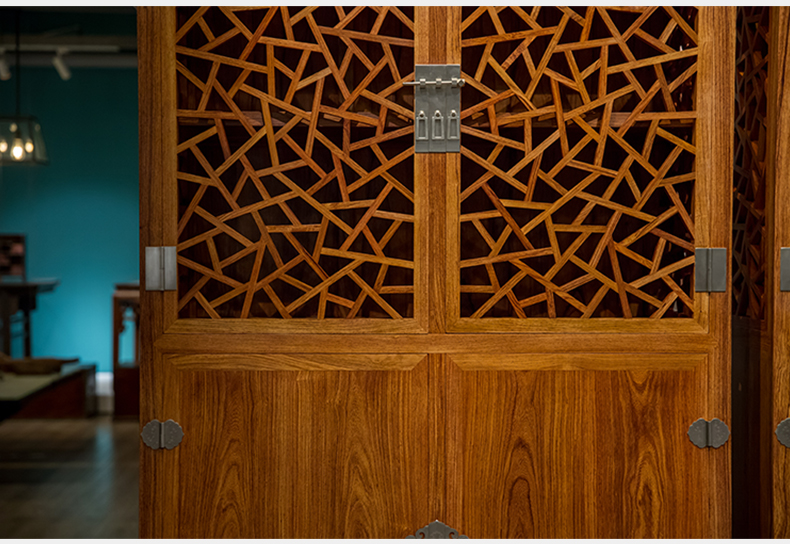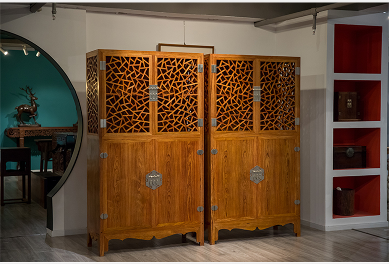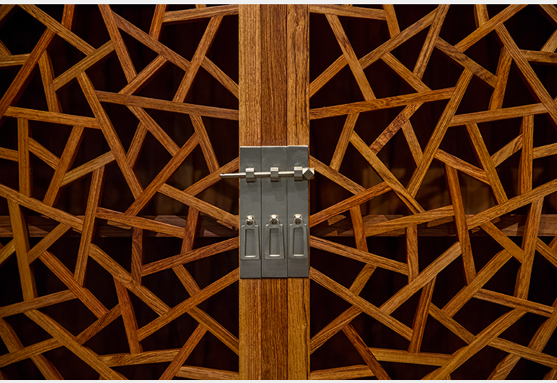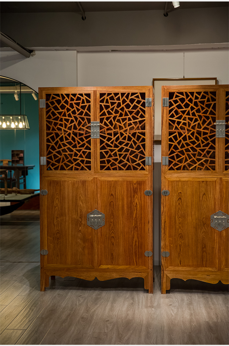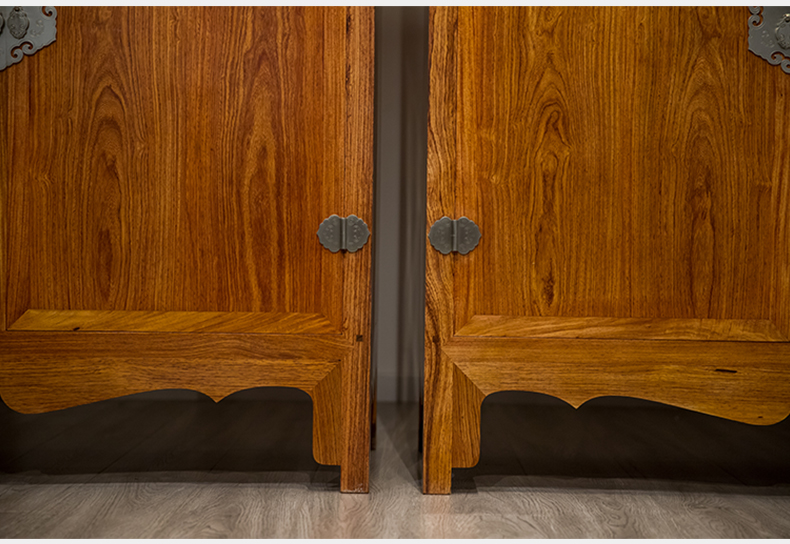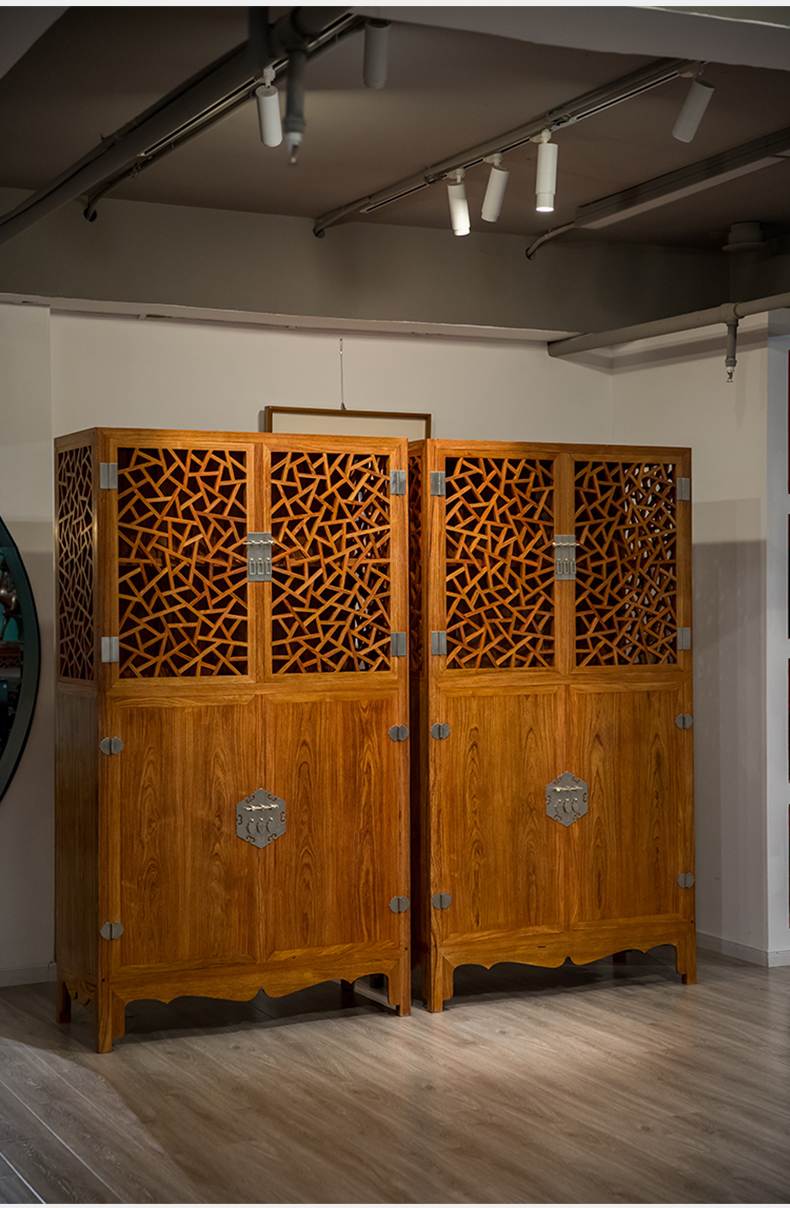 红木冰绽纹透棂格方角柜(一对)