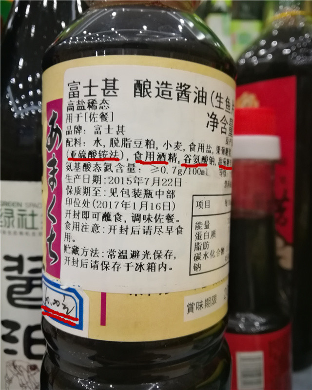更加需要注意的是我们现在市场上很多标注无添加酿造酱油,配料料很多是加了白糖和酵母提取物,这样的酱油并不是传统意义上真正的纯粮酿造酱油。