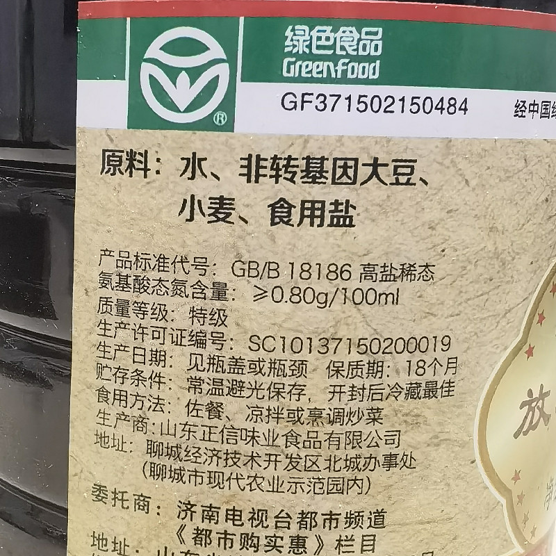 (上图)这是一款山东乃至全国畅销的酱油,味道鲜美,味鲜至极。然而这样的一款酱油里面含有多种添加剂,在配料的第二排是味精、提鲜剂、防腐剂、甜味剂、焦糖色……
