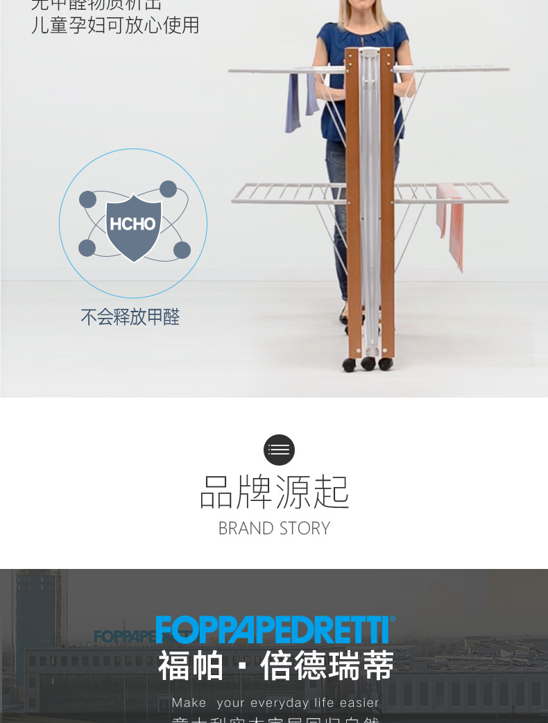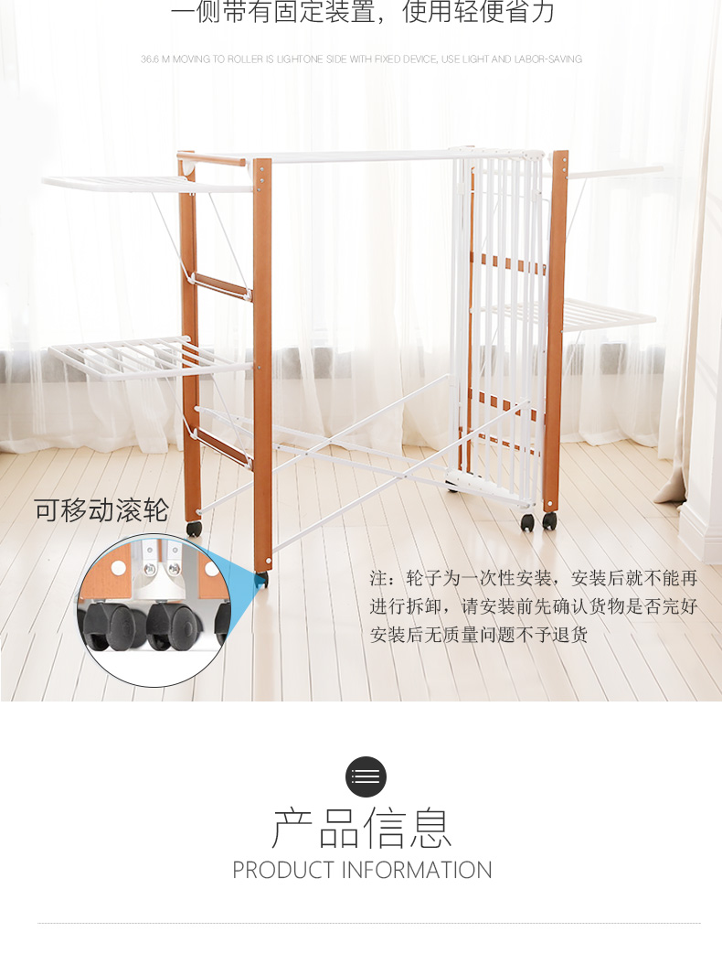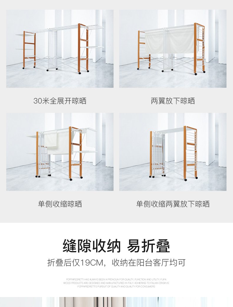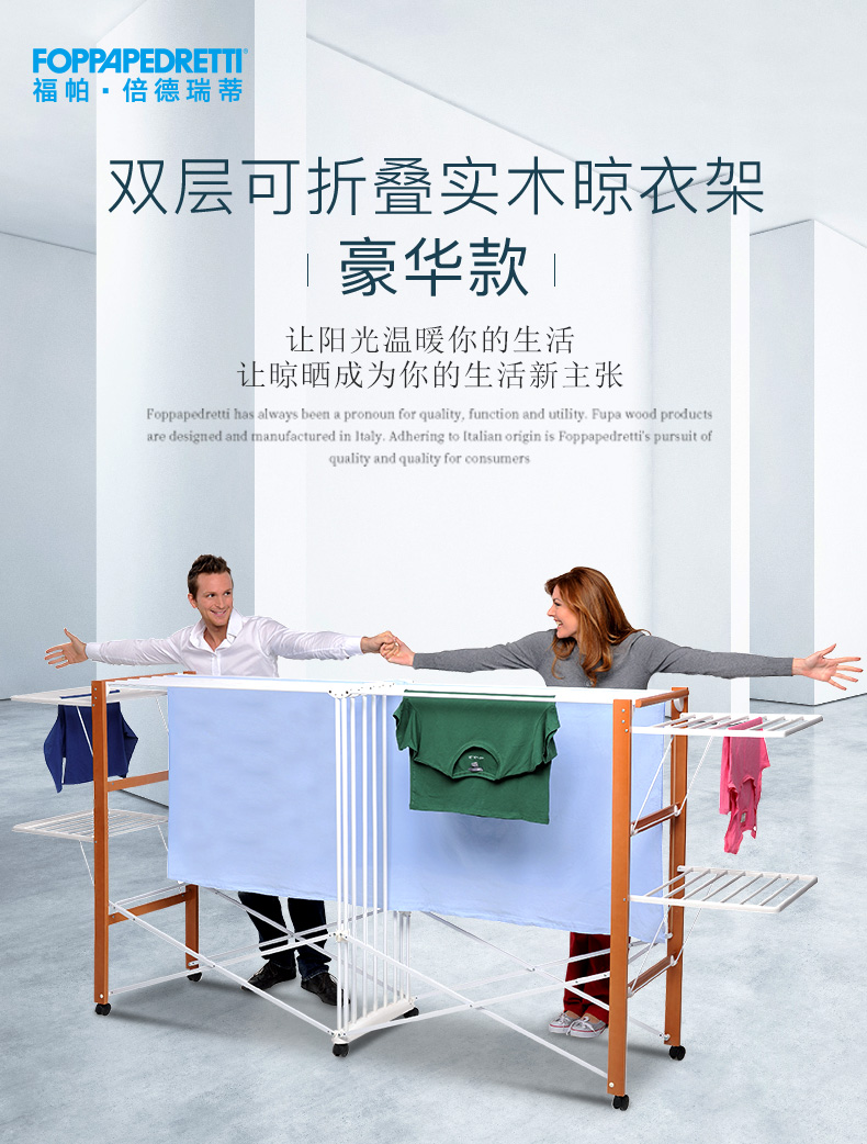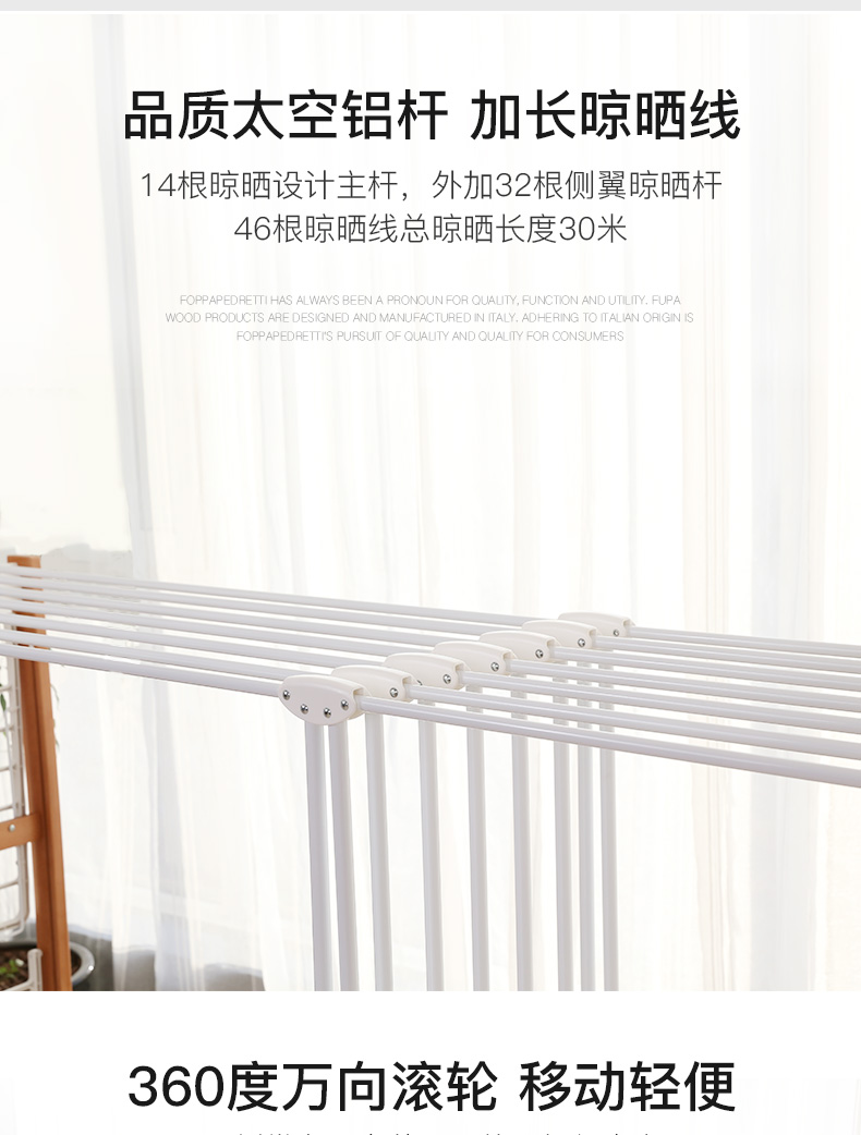 【利快】福帕进口大型小别墅晾衣架落地可折叠阳台室内移动室外平层晒衣架