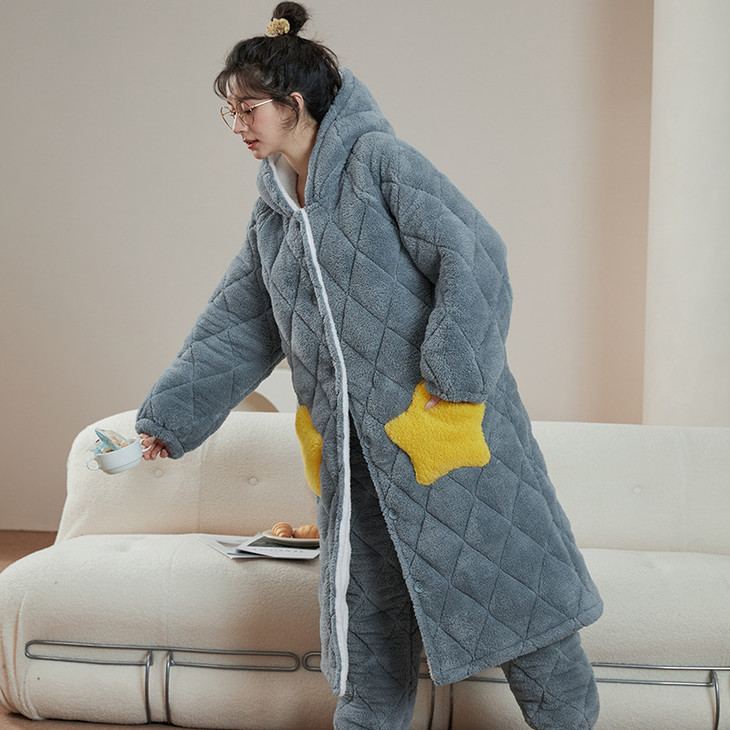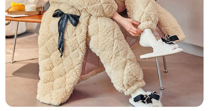 珊瑚绒睡衣可外穿加绒加厚保暖三层夹棉法兰绒家居服