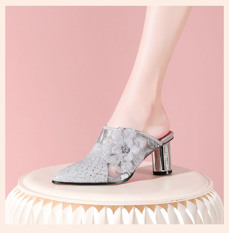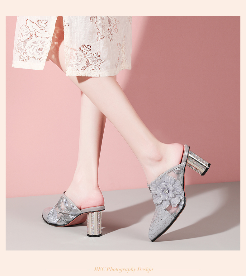 春季新款,大花朵粗跟凉拖YSML-A076-1261