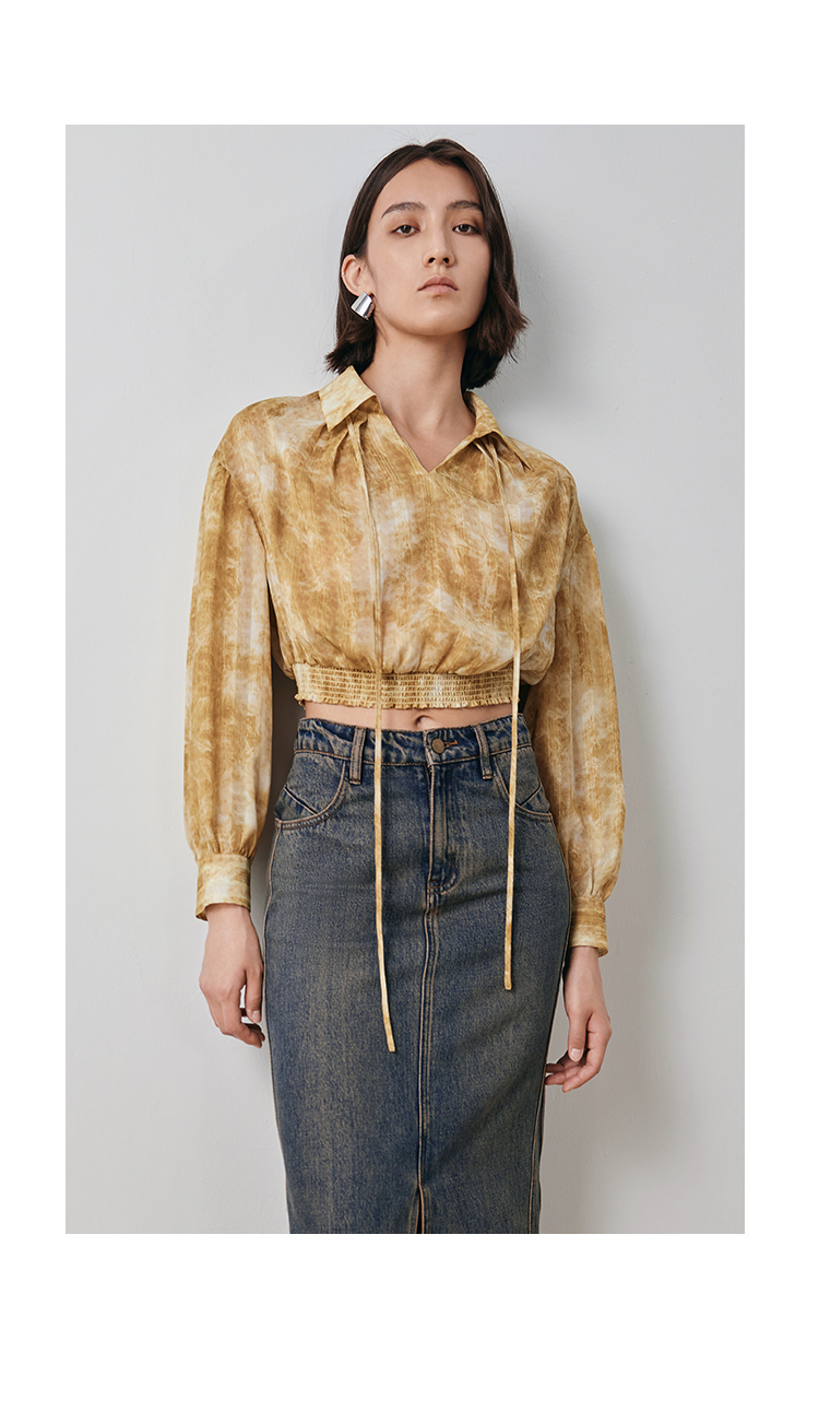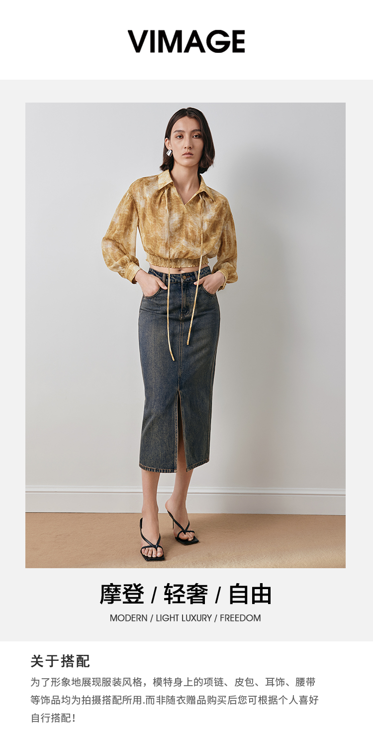 VIMAGE纬漫纪秋季新款时尚个性扎染印花上衣女V2013606