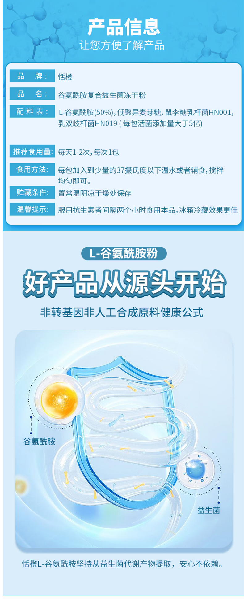 恬橙谷氨酰胺儿童复合益生菌冻干粉呵护屏障 1盒装【3送1】