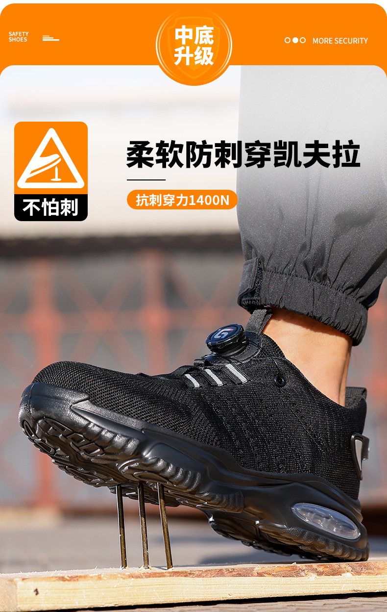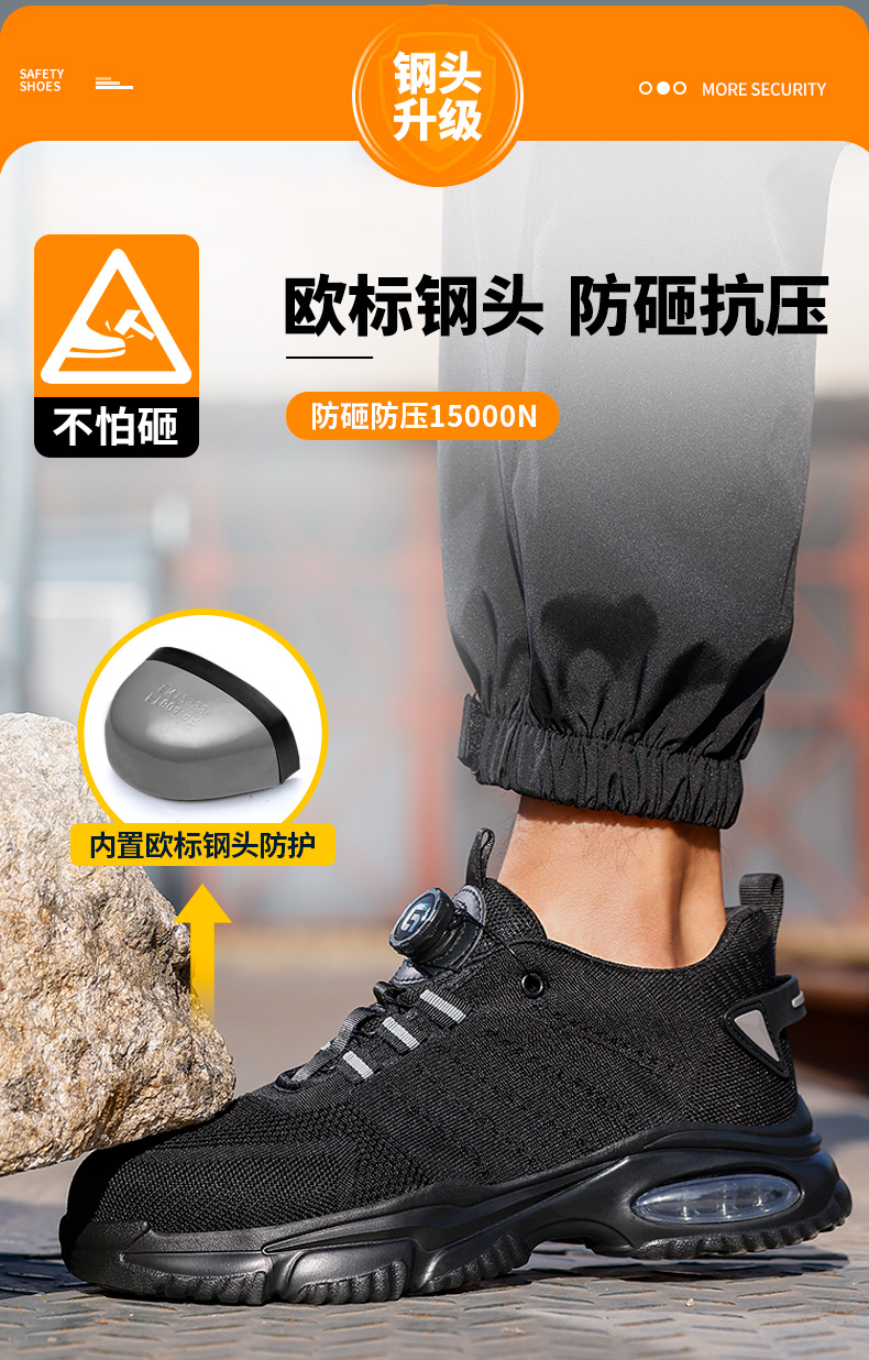 2025新品四季男士劳保鞋轻便橡塑底钢头防砸防刺穿舒适透气工作鞋