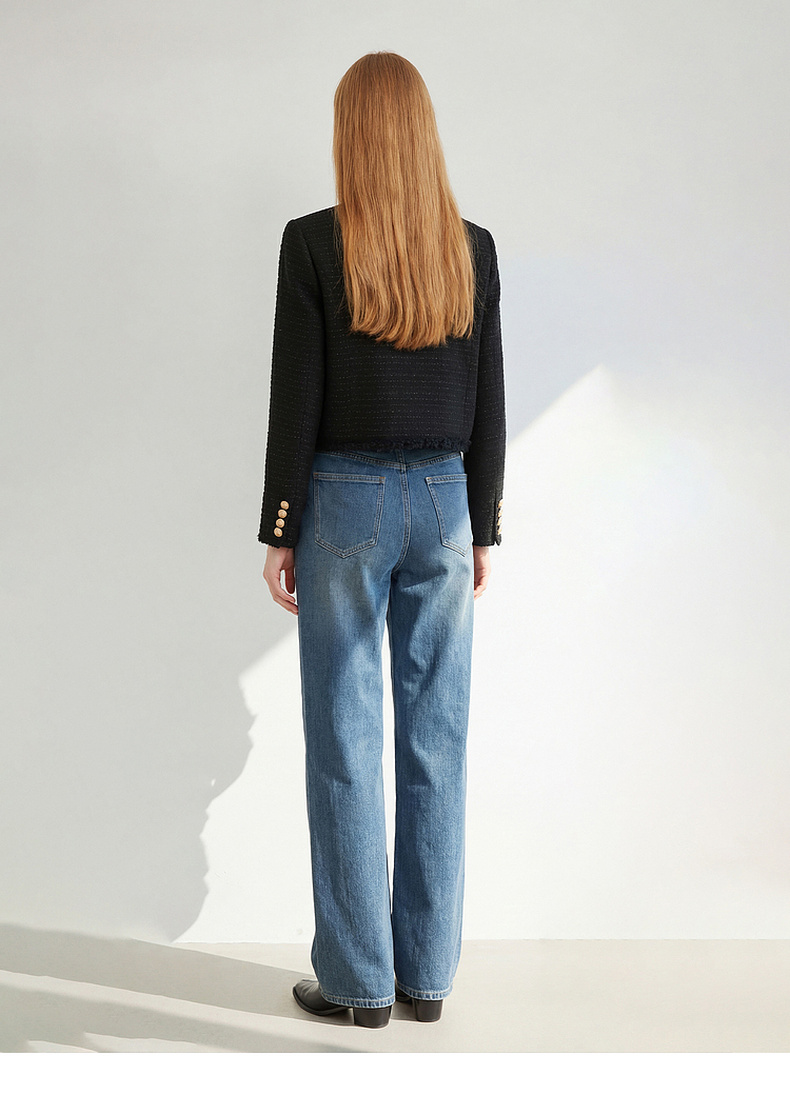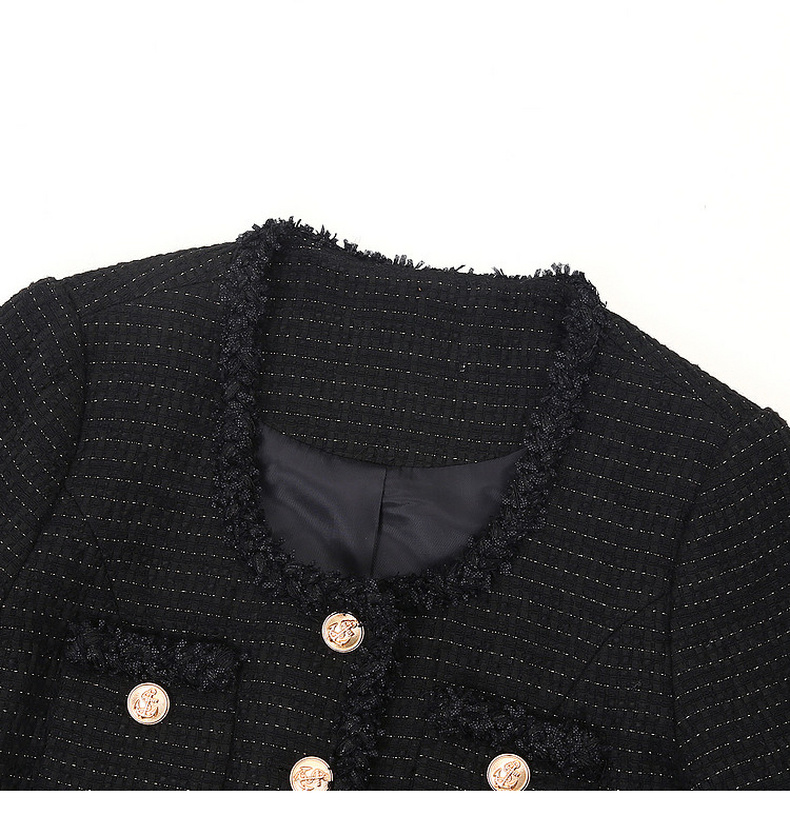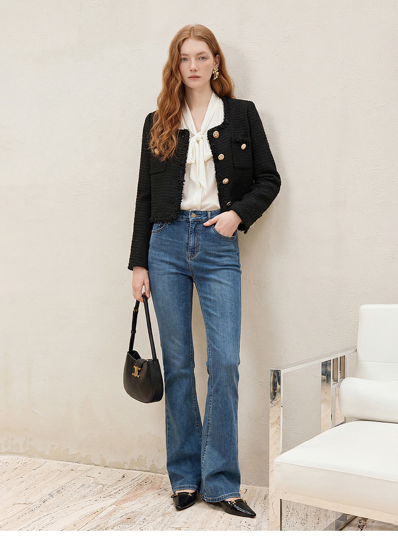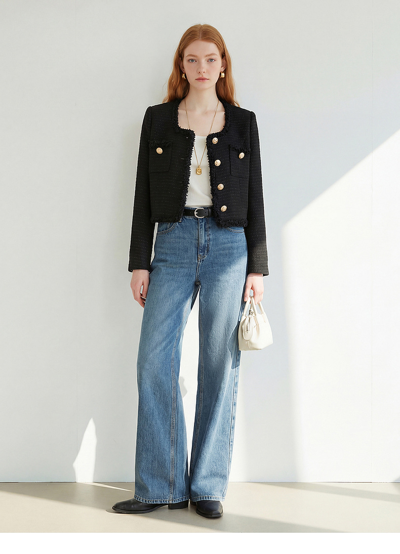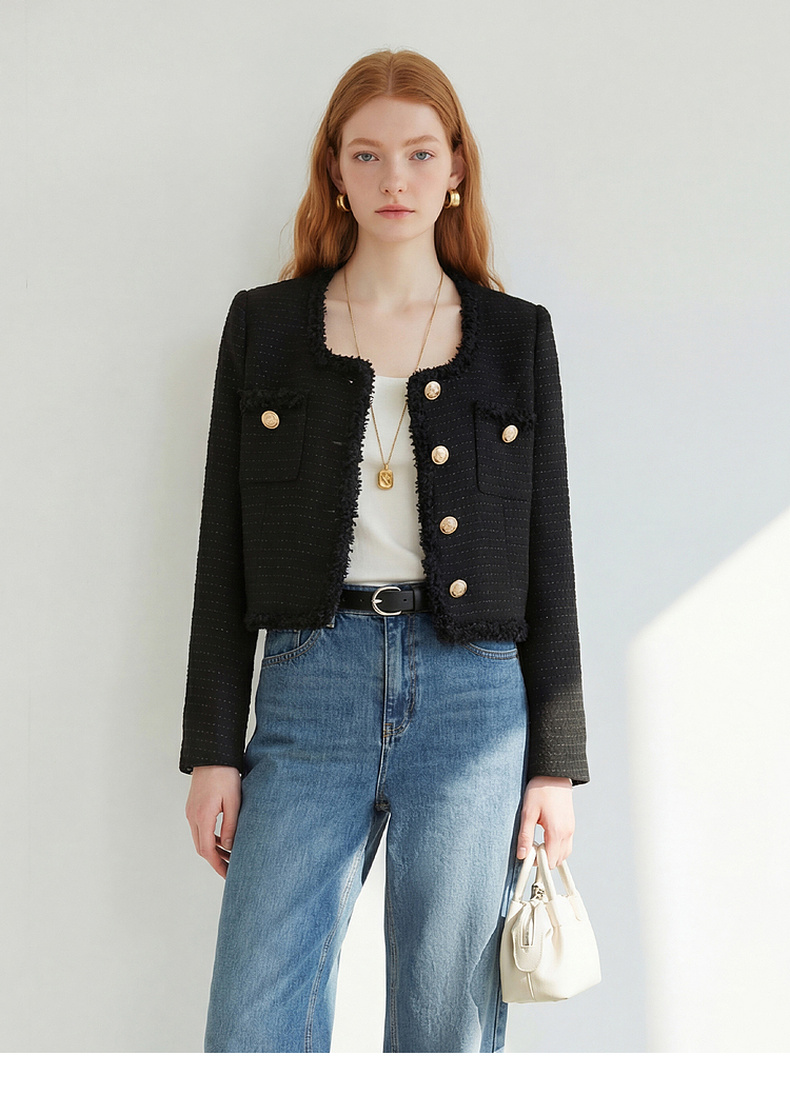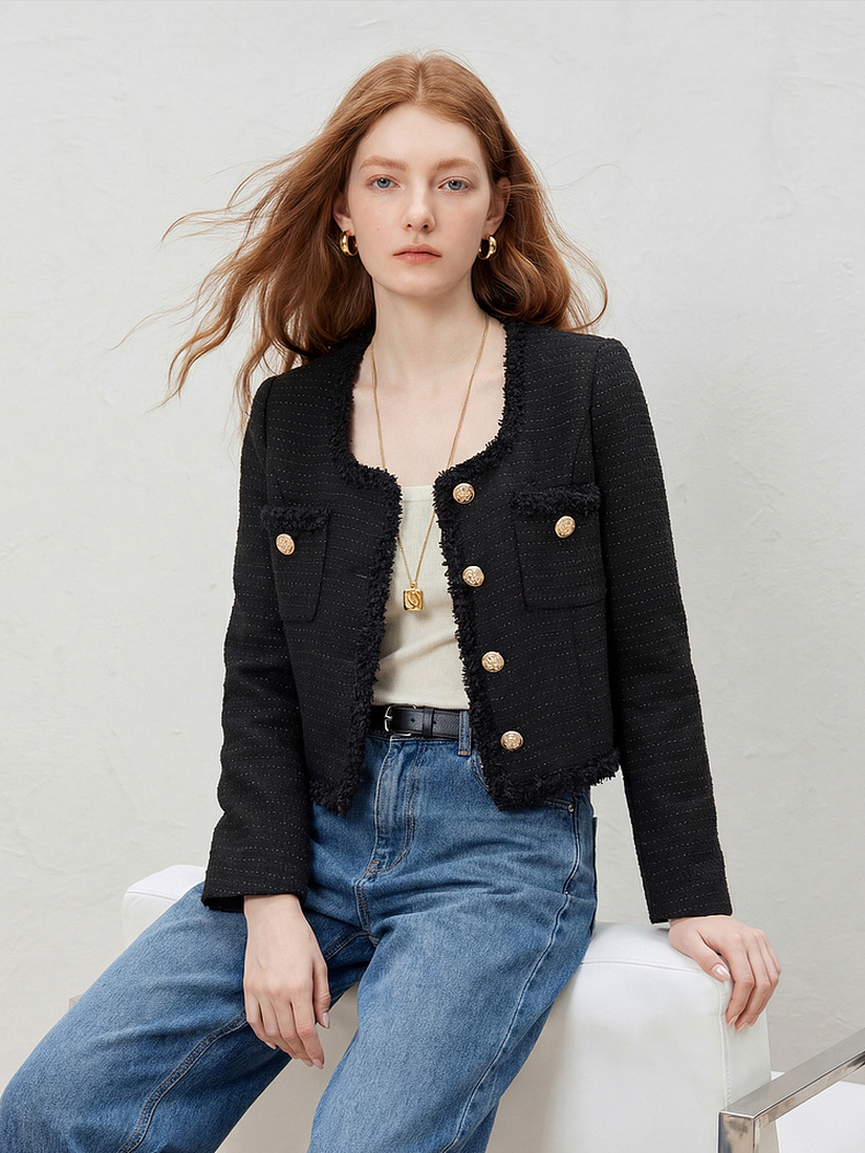 天猫同步【羊毛混纺】拉夏贝尔/La Chapelle法式U领排扣圆领小香风短外套春秋新款小个子气质短上衣