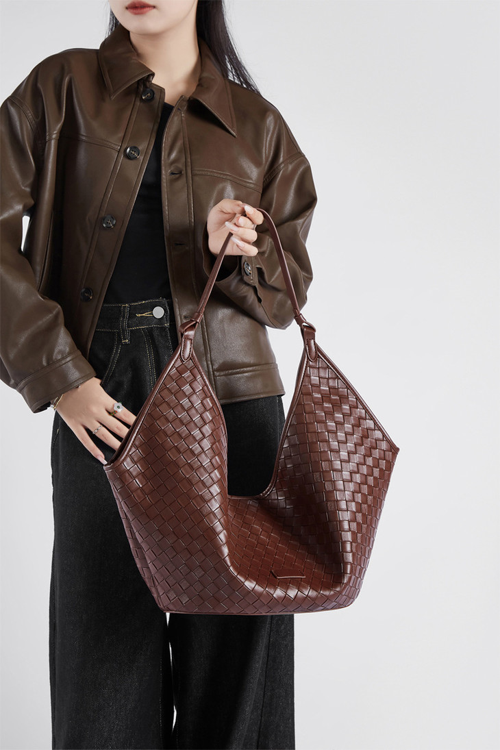 真皮大容量包包bags,时尚洋气牛皮编织纹上课通勤包QSL-2858