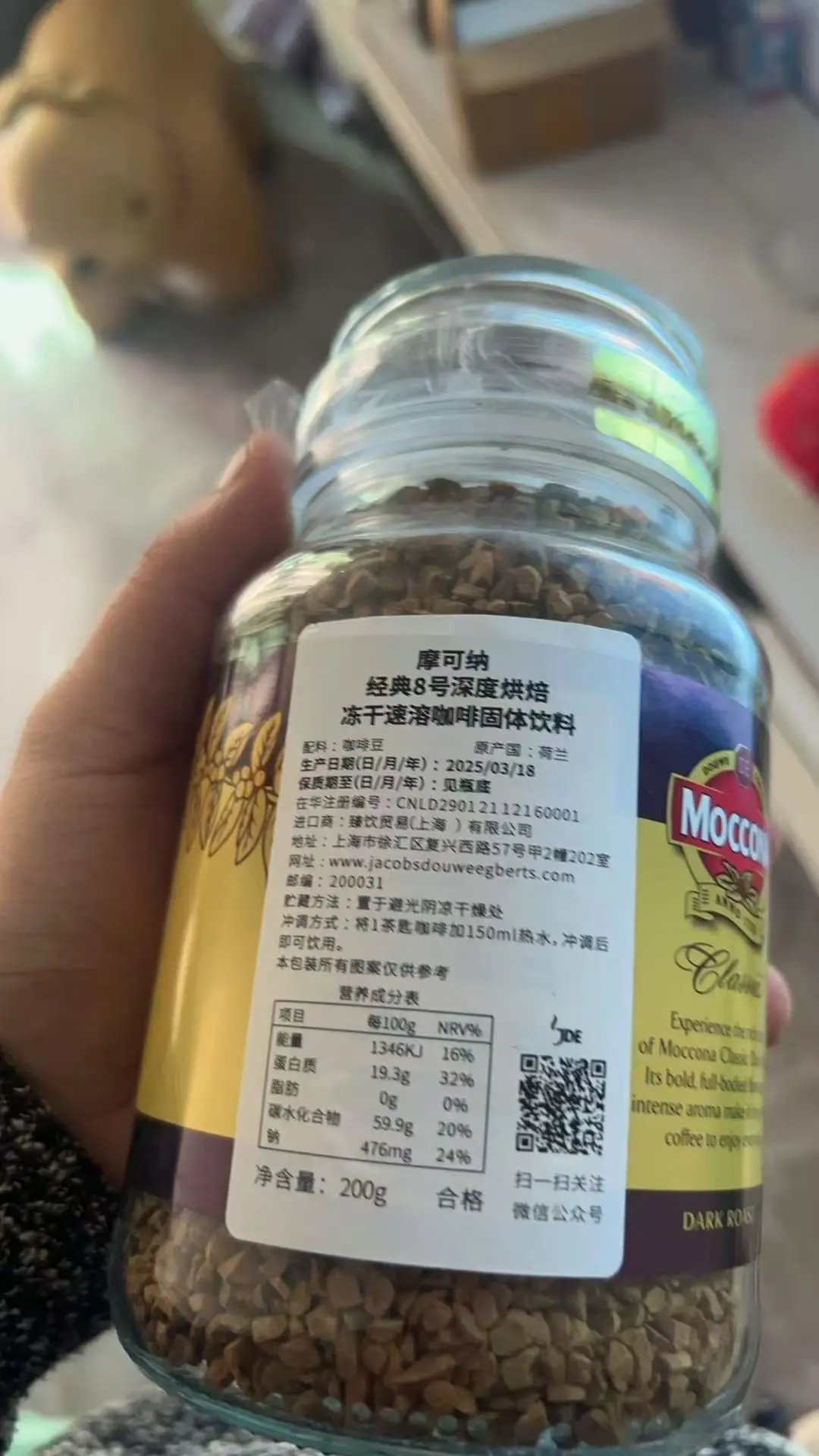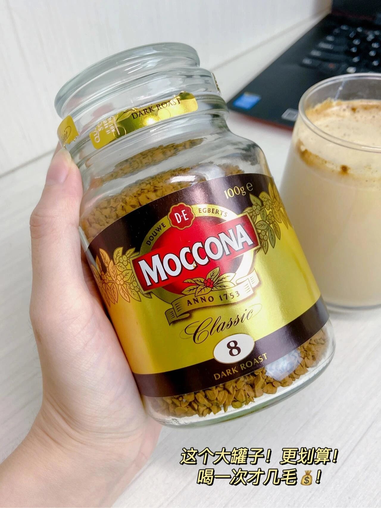 新增200g大瓶摩可纳咖啡 山姆同款 荷兰进口皇家咖啡 精选阿拉比卡咖啡豆深度烘培 萃取冻干 不苦不酸 冷热水都可冲泡 10秒还原现磨口感 【摩可纳8号深度黑咖啡】 苦味适中,没有酸味,咖啡味很香浓 配料也干净,只有咖啡豆可以放心入 冷水萃取,热水冲泡,不拘泥于温度 热量也很低,减脂期间都可以喝