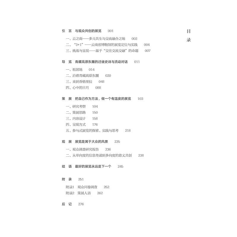 “追寻香格里拉:青藏高原东麓的迁徙史诗与流动对话”主题展览是云南省博物馆推出的原创大展,展览以考古学、民族学与民间文学为基础,通过对考古及民族文物、史诗、公众参与和当代艺术的呈现,勾勒出青藏高原东麓数千年来的迁徙与融合,并转向与当下对话和联结。本书作为展览的策展笔记,聚焦展览在跨学科研究、叙事创新、沉浸式呈现和参与式展览方面的探索,深入回顾策展团队的构思过程与实践经验。全书涵盖“引言:与观众共创的展览”“导览:青藏高原东麓的迁徙史诗与流动对话”“策展:把自己作为方法,做一个有温度的展览”“观展:展览是属于大众的风景”和“结语:zui好的展览永远是下一个”五大板块,既书写了青藏高原东麓数千年来人群交往交流交融的历史,为铸牢中华民族共同体意识提供了意义重大的案例,也成为梳理总结此类展览实践的又一范本。