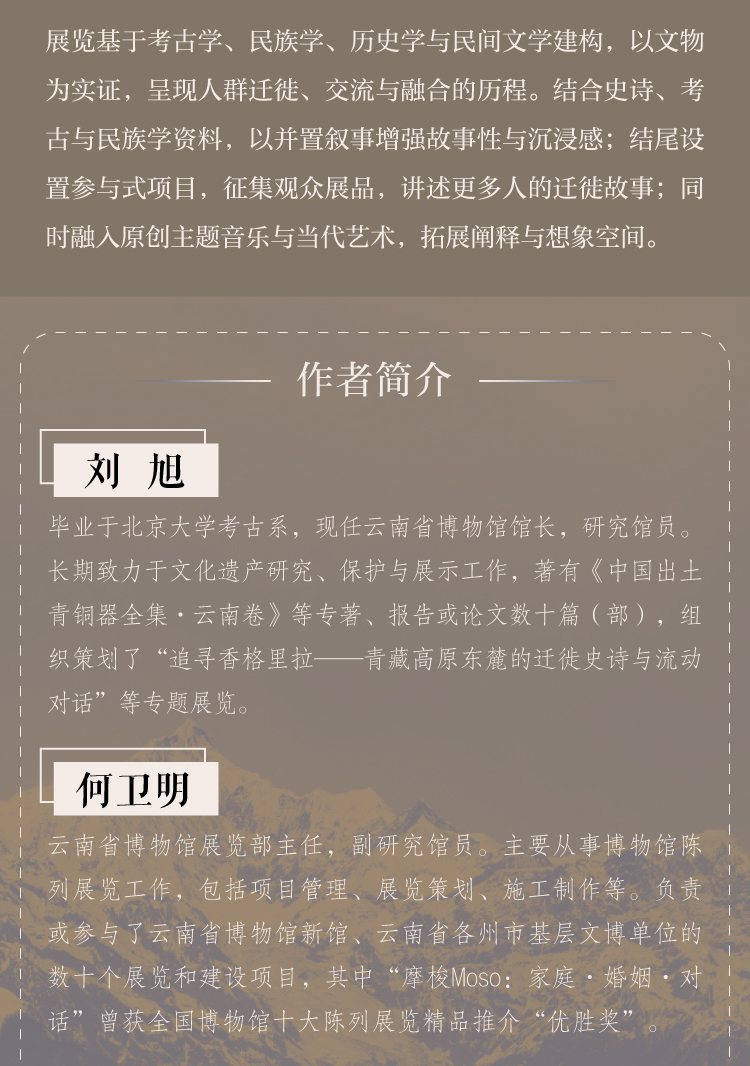 本书是云南省博物馆“追寻香格里拉”展览的深度策展注脚,堪称民族文化区域展陈的优质范本。展览以“迁徙—融合”为脉络,系统梳理青藏高原东麓的考古遗存、多民族史诗与当代流动叙事,巧妙串联考古实证、民族学田野资料与公众参与式共创,更通过史诗图像化、主题音乐嵌入、多感官体验设计,让冰冷的物质遗存转化为鲜活的文化对话场域。书中既还原了策展团队从“重走迁徙路”到跨学科叙事构建的扎实实践,也精准呈现了对“各民族交往交流交融”主题的深刻诠释,让公众得以透过文字,读懂这片土地上多民族共生共荣的历史纵深与当下温度,是理解中华民族多元一体格局与中华民族共同体意识的生动读本。