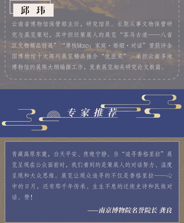 青藏高原东麓,白天平安、夜晚宁静。当“追寻香格里拉”展览呈现在公众面前时,我们看到的是策展人的对话努力、温度呈现和大众思维。展览让观众追寻的不仅是香格里拉——心中的日月,还有那千年传承、生生不息的迁徙史诗和民族对话。赞!