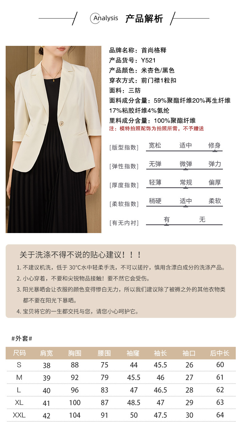 YBY Y521通勤西装外套一粒扣七分袖修身西服短外套