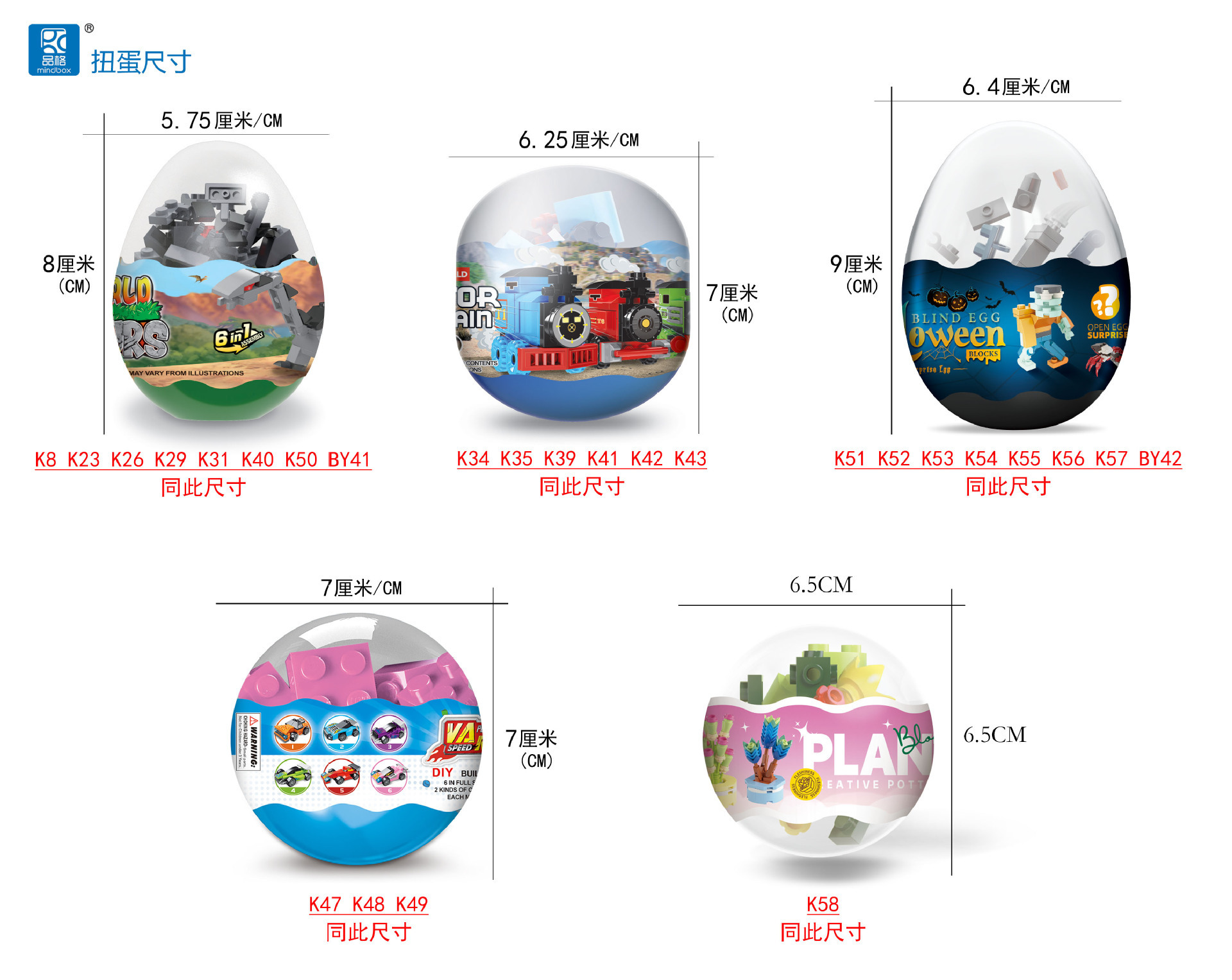 儿童积木扭蛋多合一合体变形 万圣节圣诞节动物工程车火车海盗船早教DIY拼装智力玩具奇趣蛋 单个扭蛋6-8cm左右