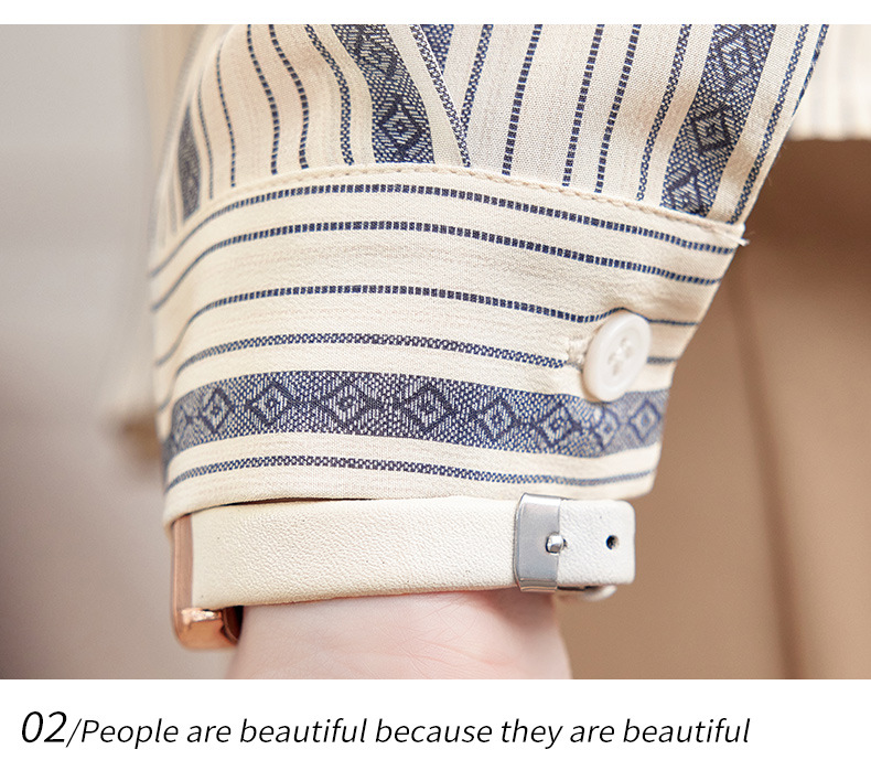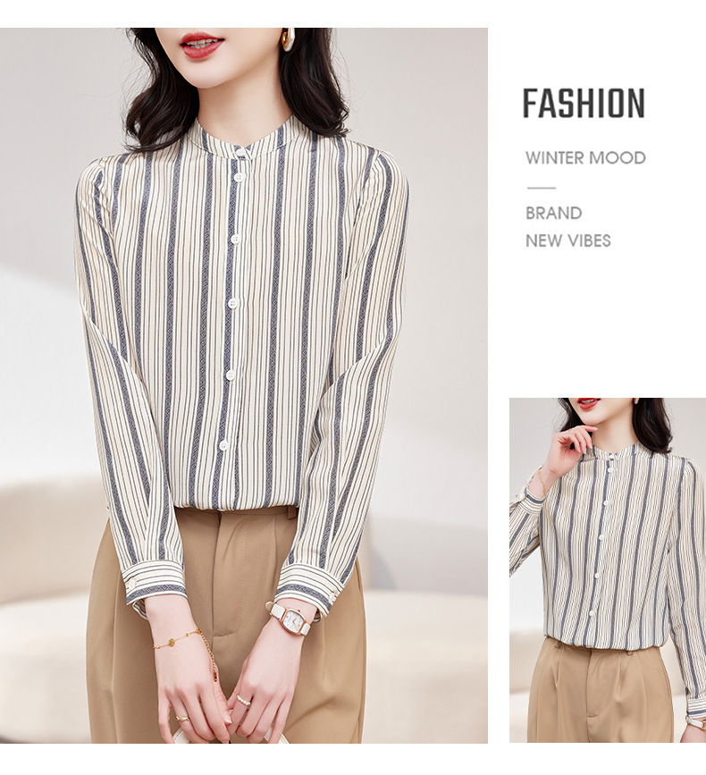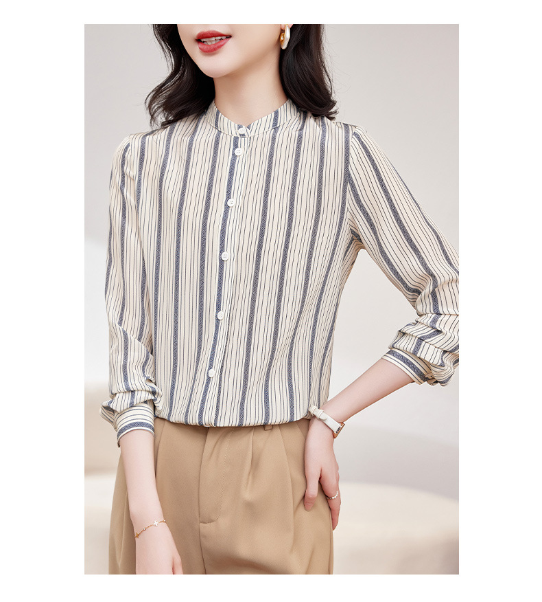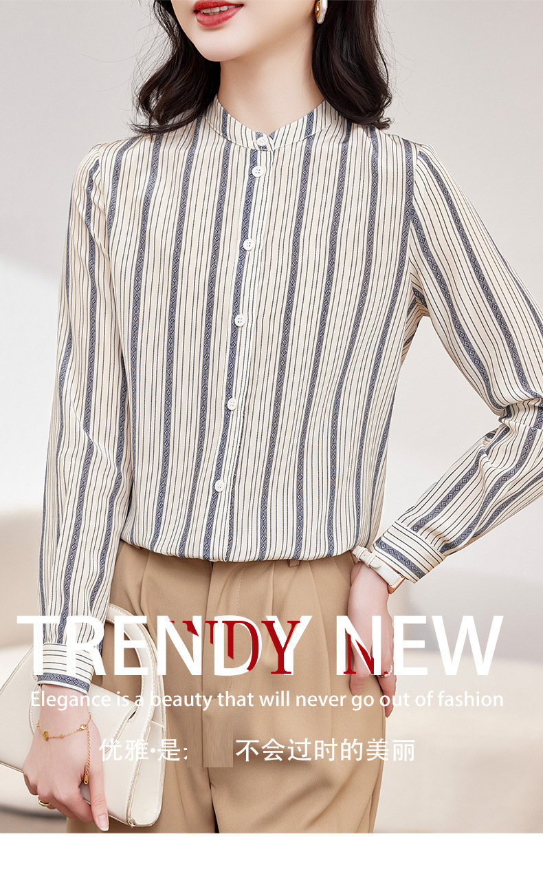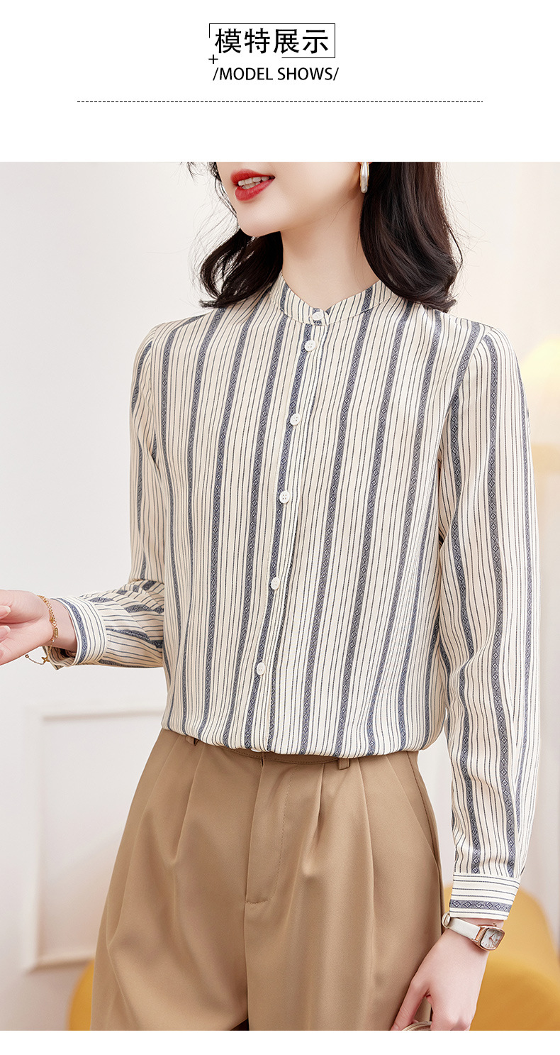 KQ-春季新款气质通勤真丝条纹衬衫长袖衬衣女士桑蚕丝设计感上衣小衫