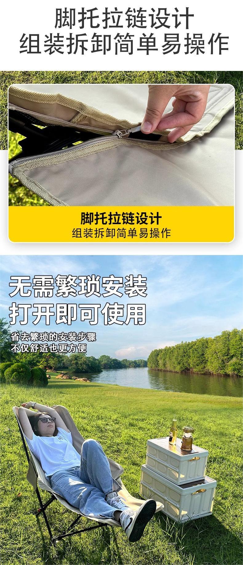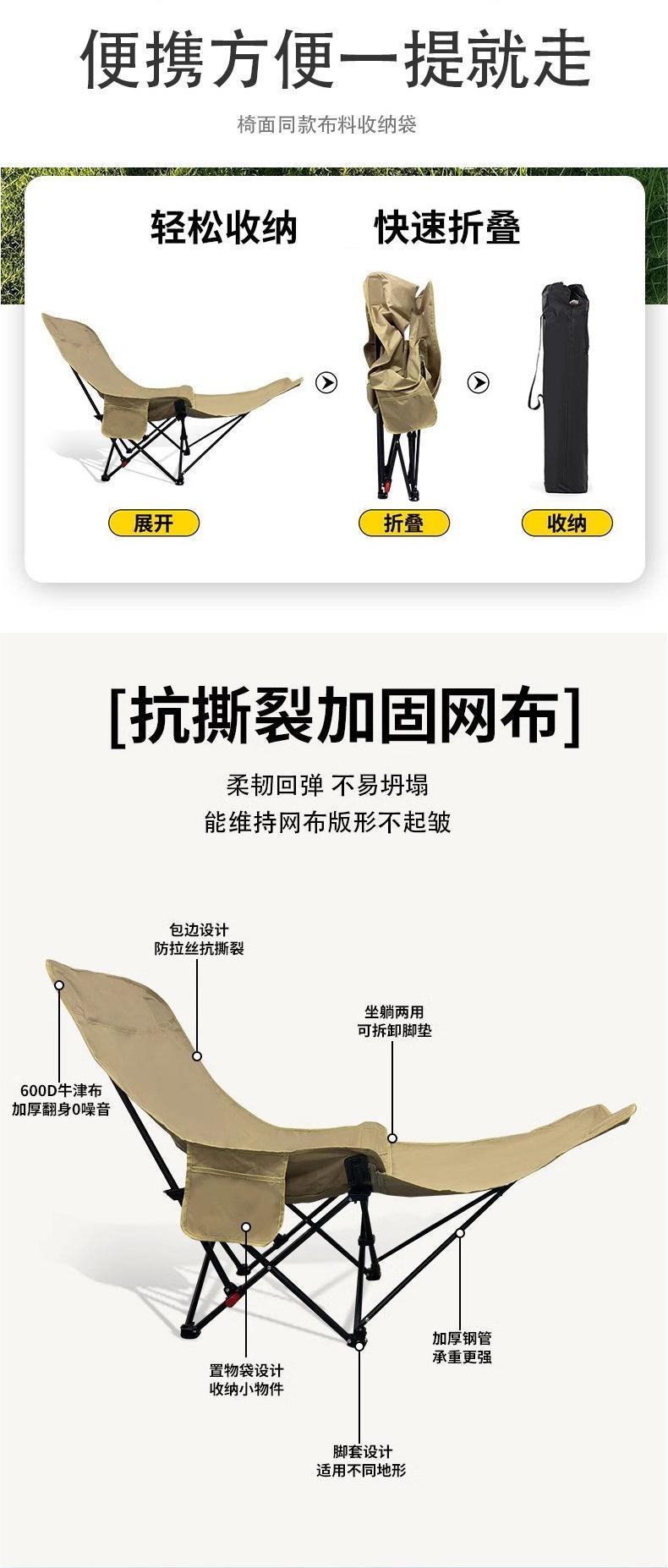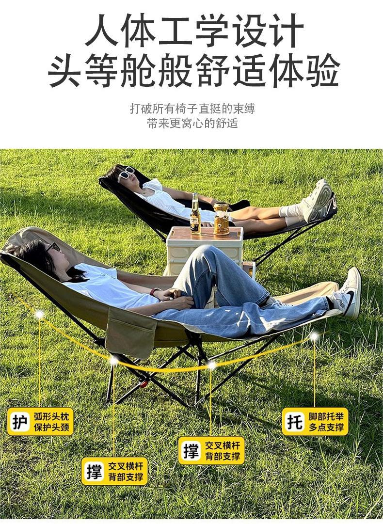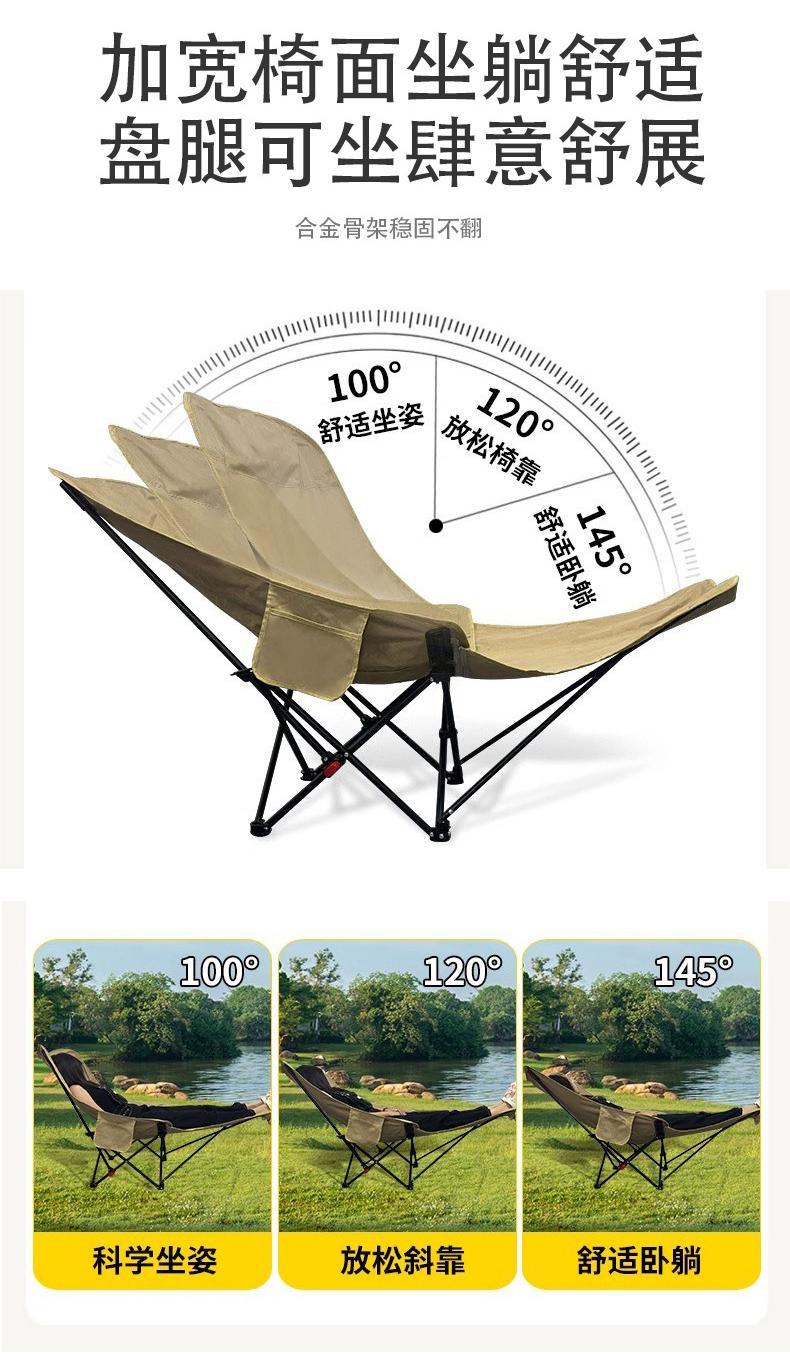 【抗撕裂加固网布❗️柔韧回弹不易坍塌】户外露营折叠椅子办公室午休折叠躺椅四档可调节大号月亮椅带腿托。jb