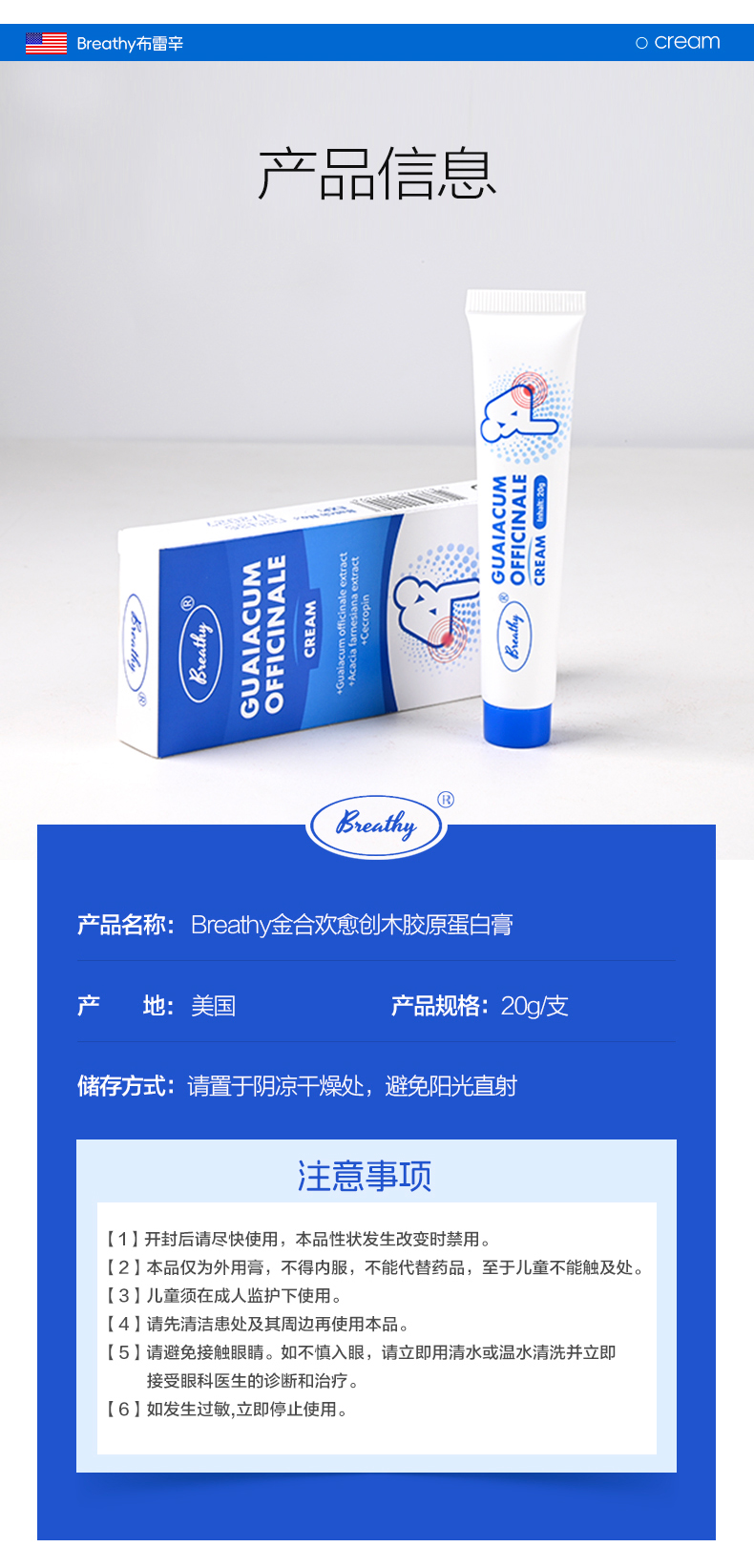 【一抹全搞定】Breathy布雷辛金合欢愈创木胶原蛋白膏(舒痔清)院线同款 消肿止痒 温和无痛 操作便捷 20g/支
