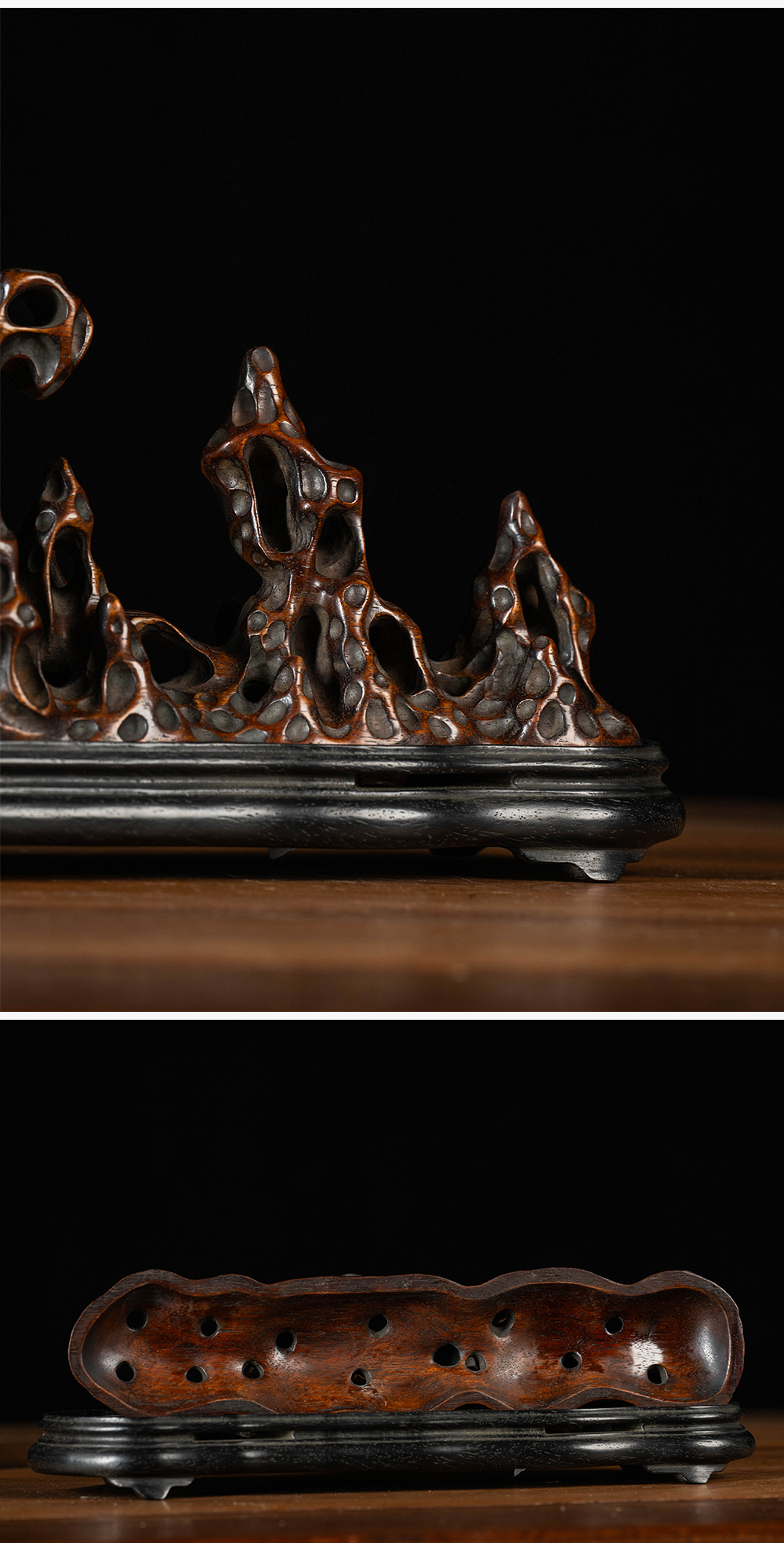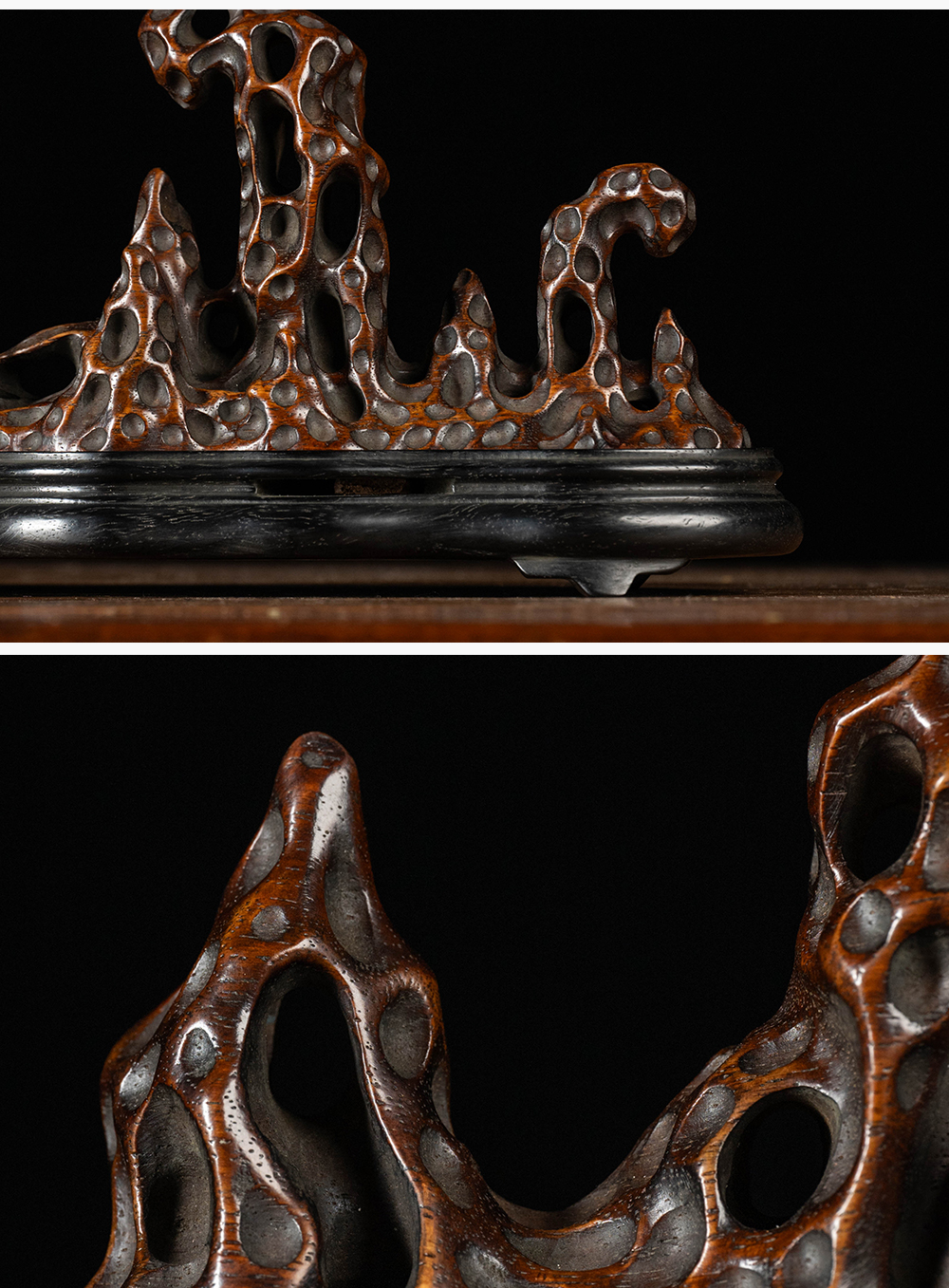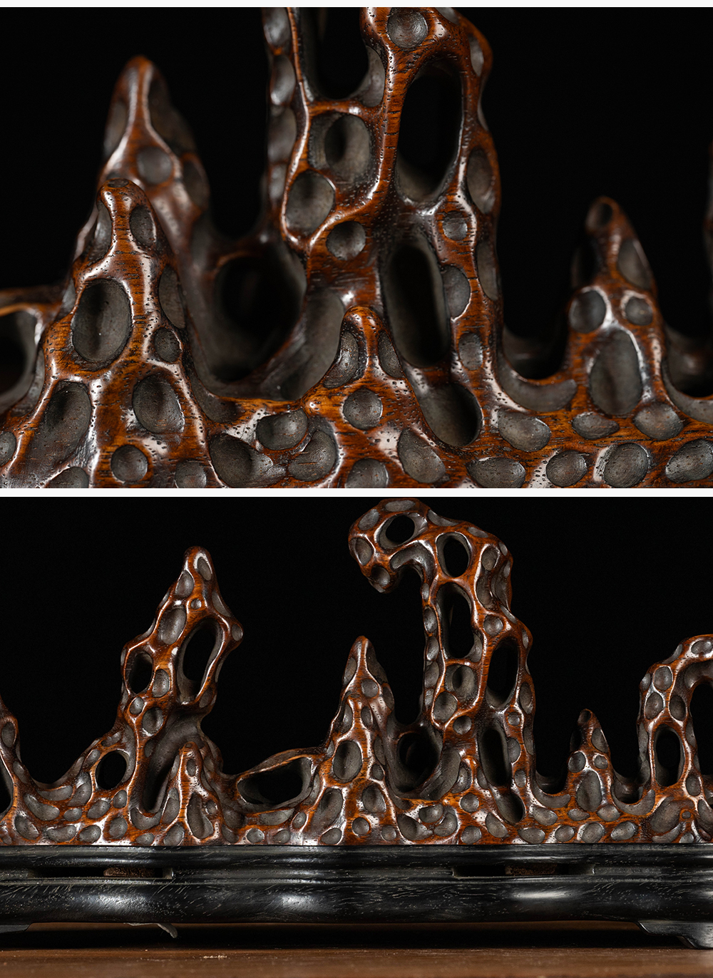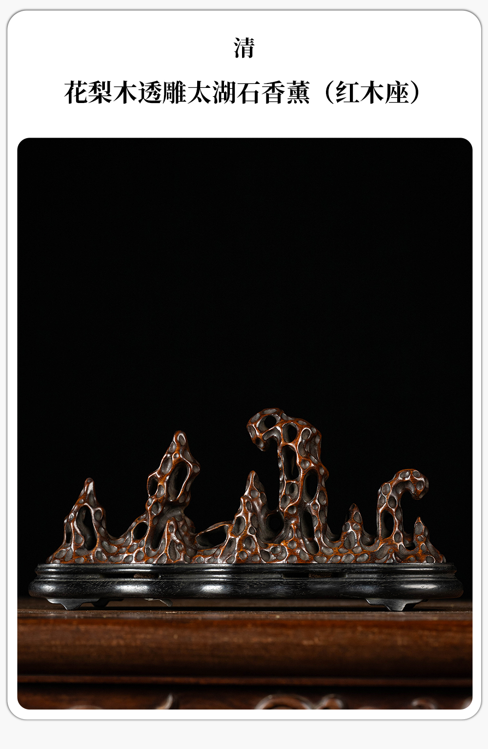 清 花梨木透雕太湖石香薰(红木座)