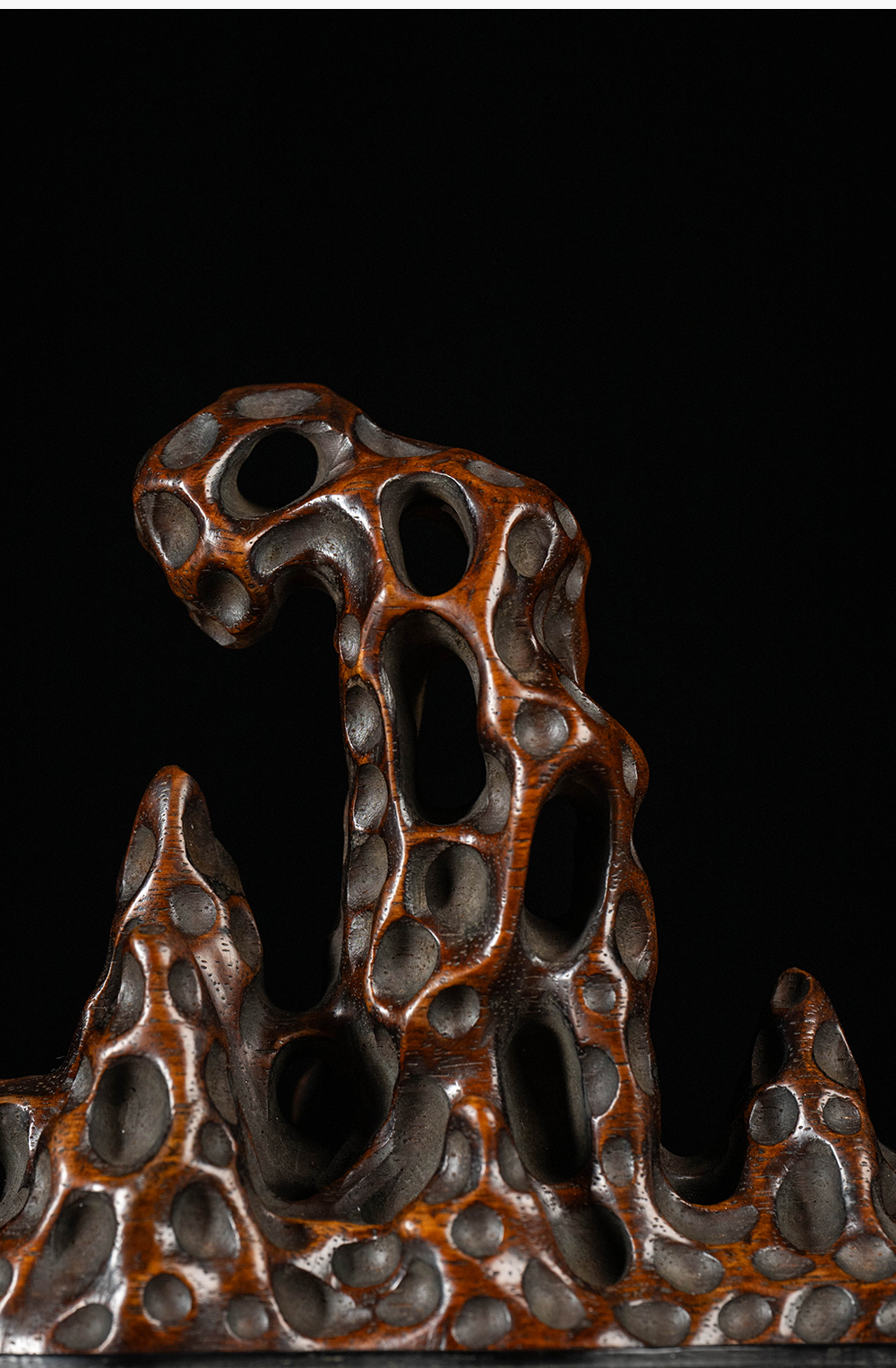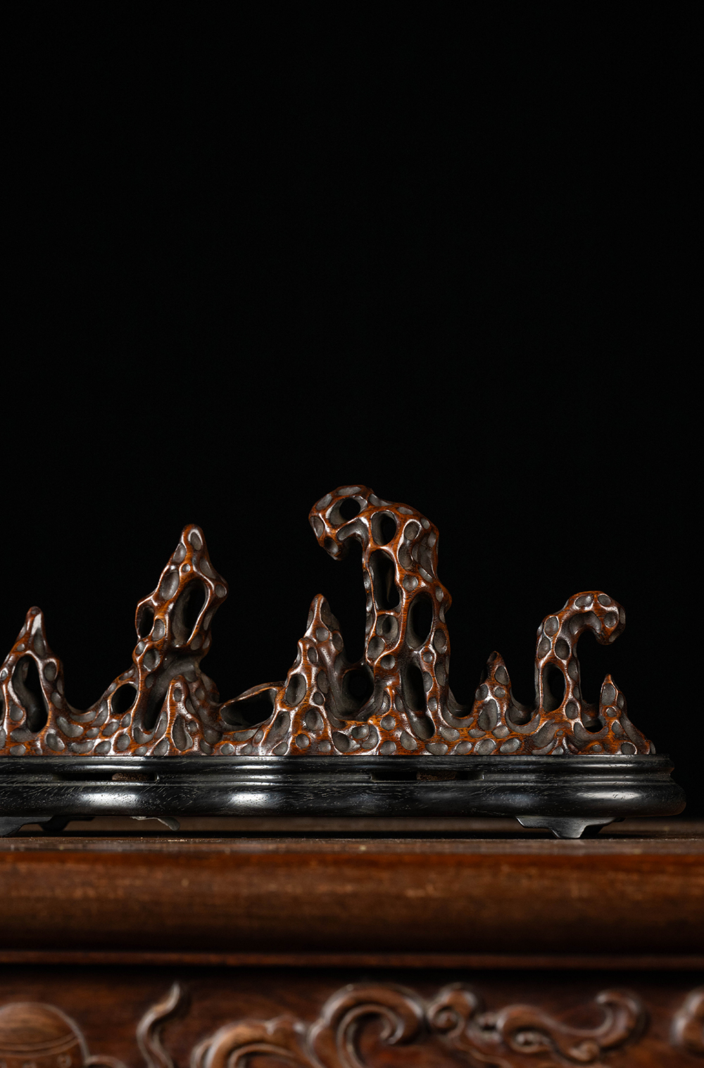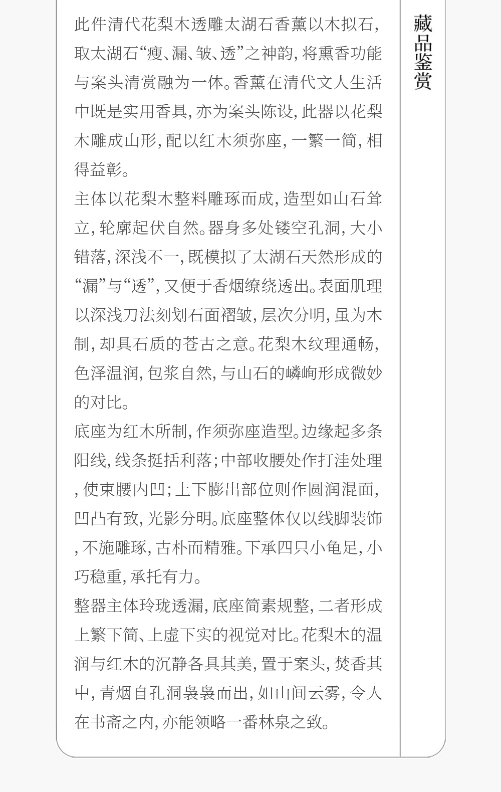 清 花梨木透雕太湖石香薰(红木座)