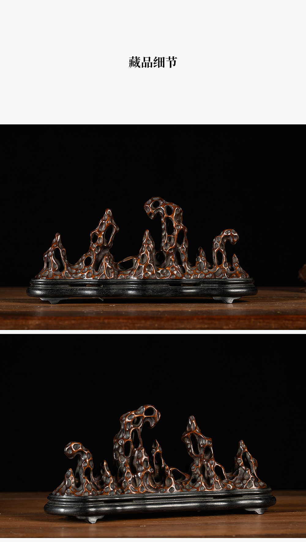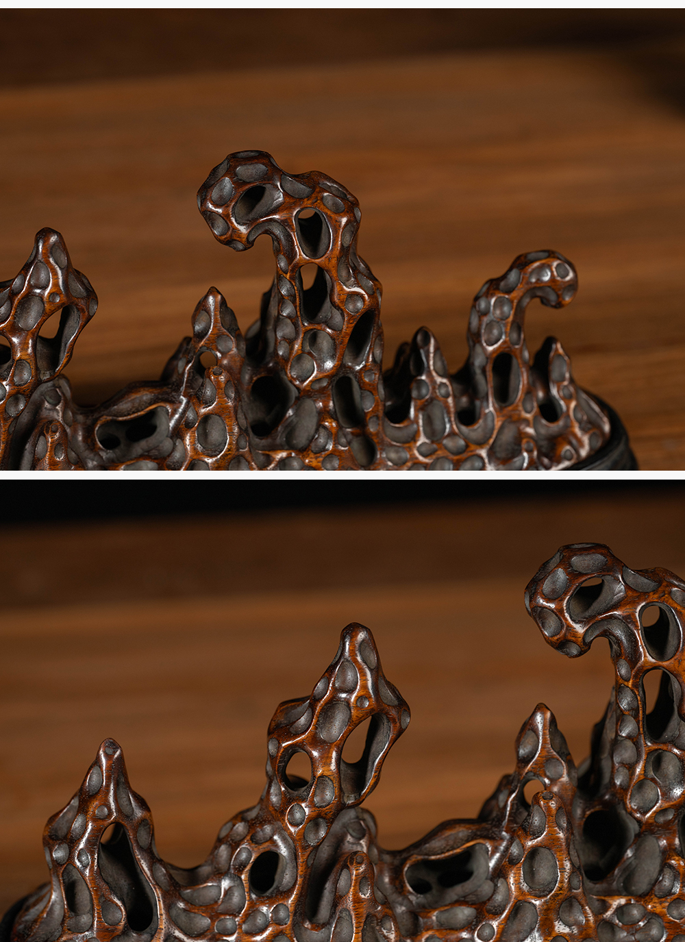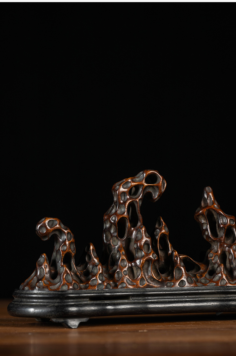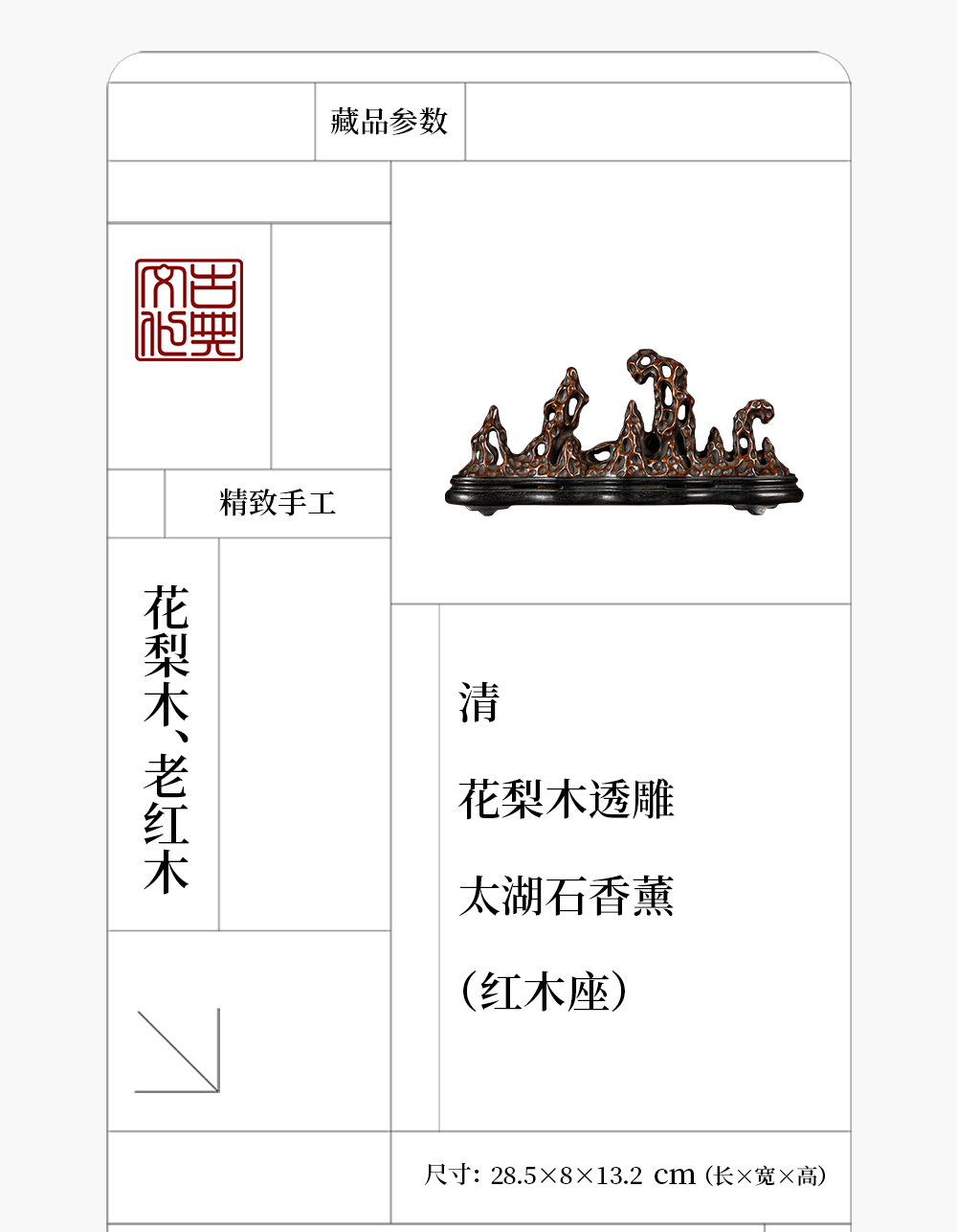 清 花梨木透雕太湖石香薰(红木座)