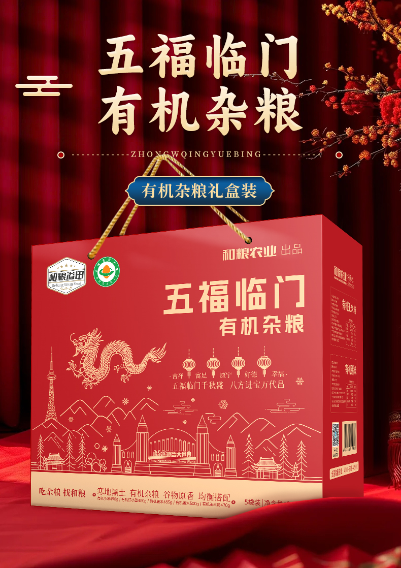 溢田·五福临门有机杂粮礼盒 当季新粮 五种杂粮 颗粒饱满 营养健康 精美礼盒