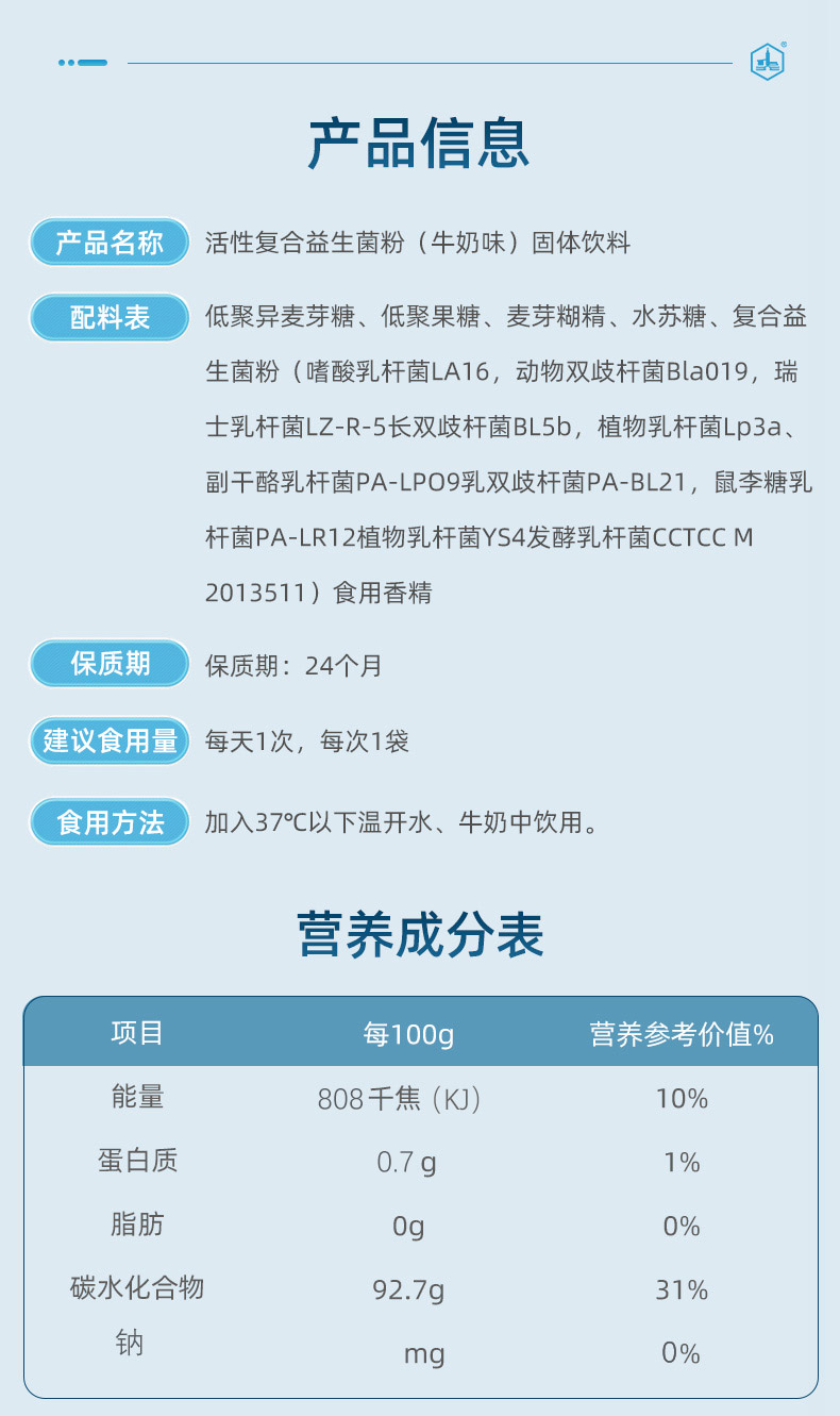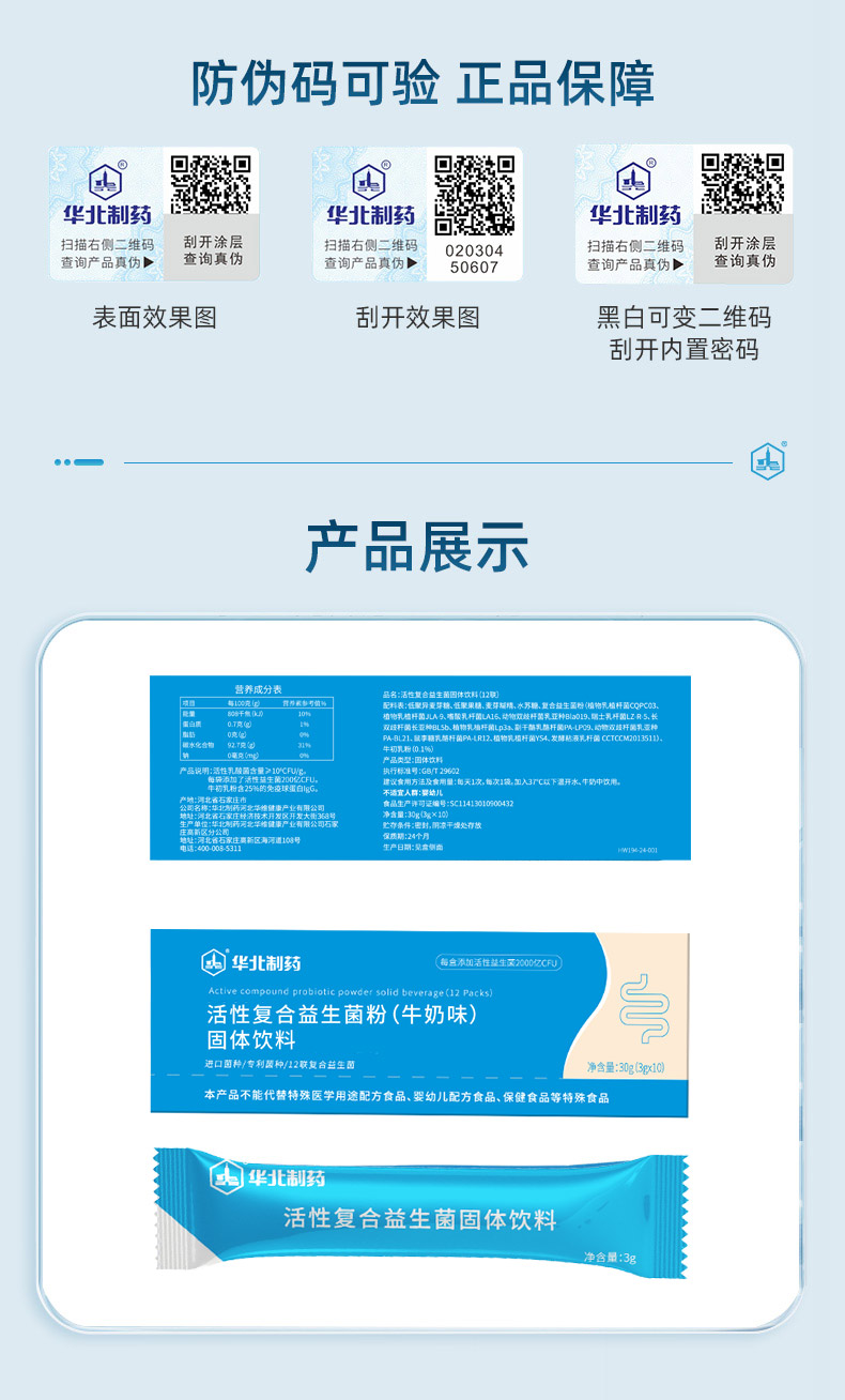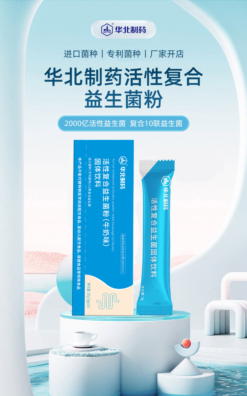 华北制药活性复合益生菌粉(牛奶味) 10袋/盒 进口菌种