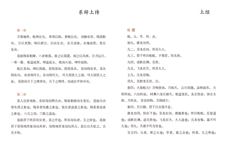 对于《易经·系辞传》,主要选取更为重要、较少重叠的《系辞·上传》进行解释。