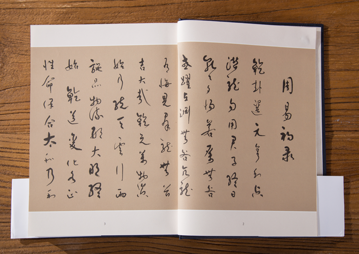 如果你想欣赏余秋雨的书法作品,只要翻到两本书末尾,就能看到他最新的书法作品《周易录行书》和《老子行书》。