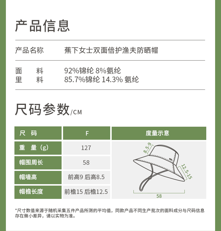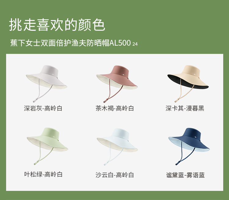 蕉下女士双面倍护渔夫防晒帽AL50024纯色款