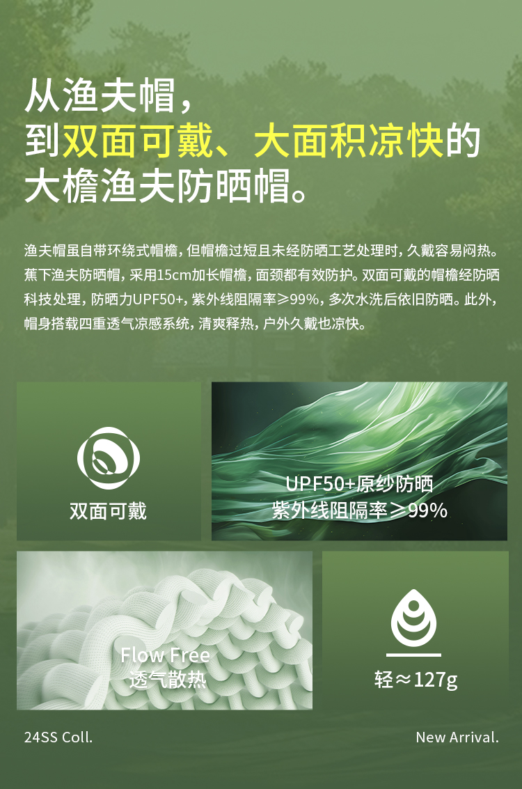 【蕉下精选】蕉下蛋卷一体无痕大檐空顶防晒帽UL712