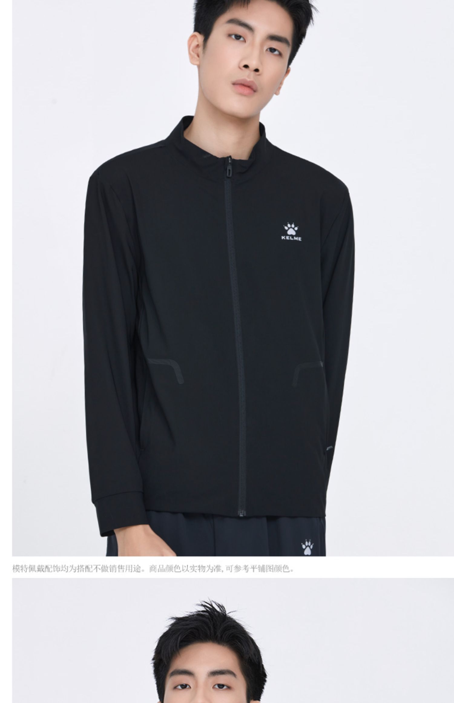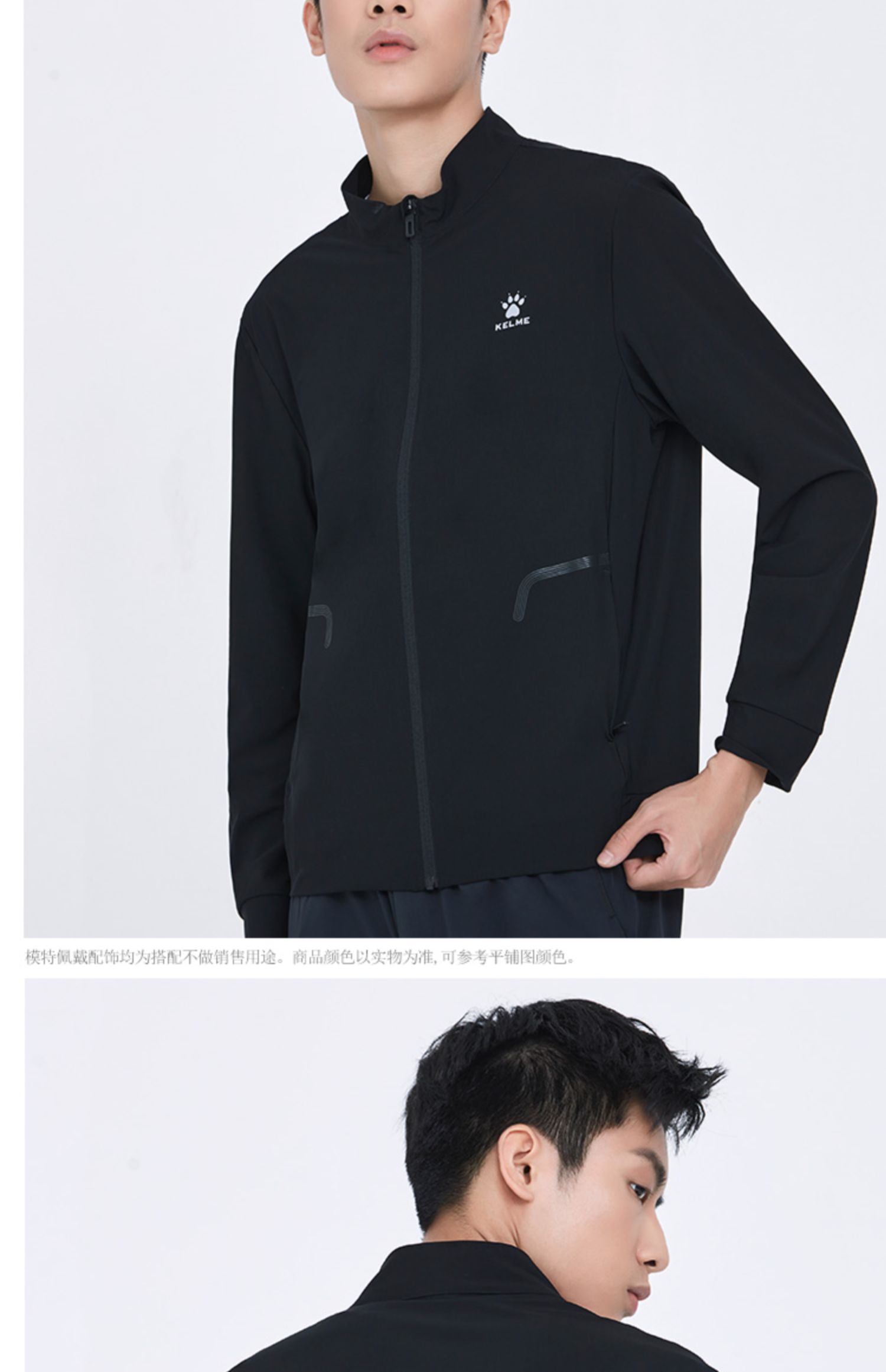 卡尔美针织外套男春季新款高弹健身立领开衫夹克运动服
