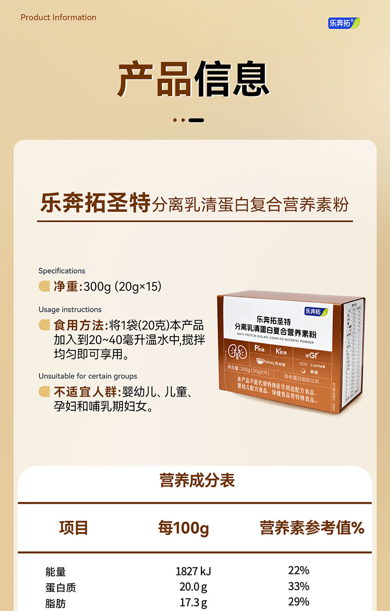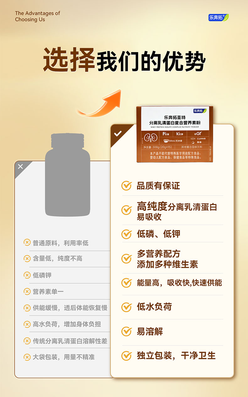 乐奔拓圣特分离乳清蛋白复合营养素粉0磷0钾低GI糖肾专属营养方