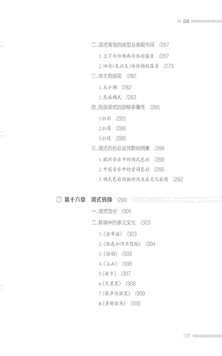 本书内容围绕着音的四大基本属性“音高、音值、音强、音色”及调式旋律六个部分展开,将其作为十七个专题知识点进行论述,前六章讲的是节奏、节拍、速度方面的内容:“休止”休矣、音乐时速、节奏漫谈、节拍类型、弹性节拍、音乐散文,从文学、绘画等角度,并结合实例探讨了休止符在音乐中“五声胜有声”的艺术表现作用等内容;第七章讲的是音色——美音求源,论述了音色的心理属性、中国音乐音色审美“近人声、尚自然”等特点;第八章讲音强——强弱“相对论”;第九到十一章谈的是音程、音高:音程协和论、音程应用论、声无定高,介绍了五声音阶的多种起源说等;第十二至十六章侧重于调式:从宫观念、五音大成、七声调式、调性思维、调式转换,探讨了中国民族调式从二音列、三音列、四音列到五声、七声调式的形成与发展过程等;第十七章探讨了旋律——旋法魔术,介绍了旋法规律及其文化成因受民族性、地域性、语言性,乃至作曲家个性等方面的影响和制约等。作者着力关注这些知识点的深层文化背景、文化内涵,以加强对音乐文化多视角、全方位的考察与认知,使音乐学习者不仅可以“知其然”,还可以“知其所以然”,为其进一步学习音乐文化打下坚实而全面的基础。本书可作为高校本专科生的乐理拓展教材使用,同时供艺术院校的研究生、高校音乐专业理论教师,以及有志于提高自身音乐修养与开阔艺术视野的音乐爱好者们使用。