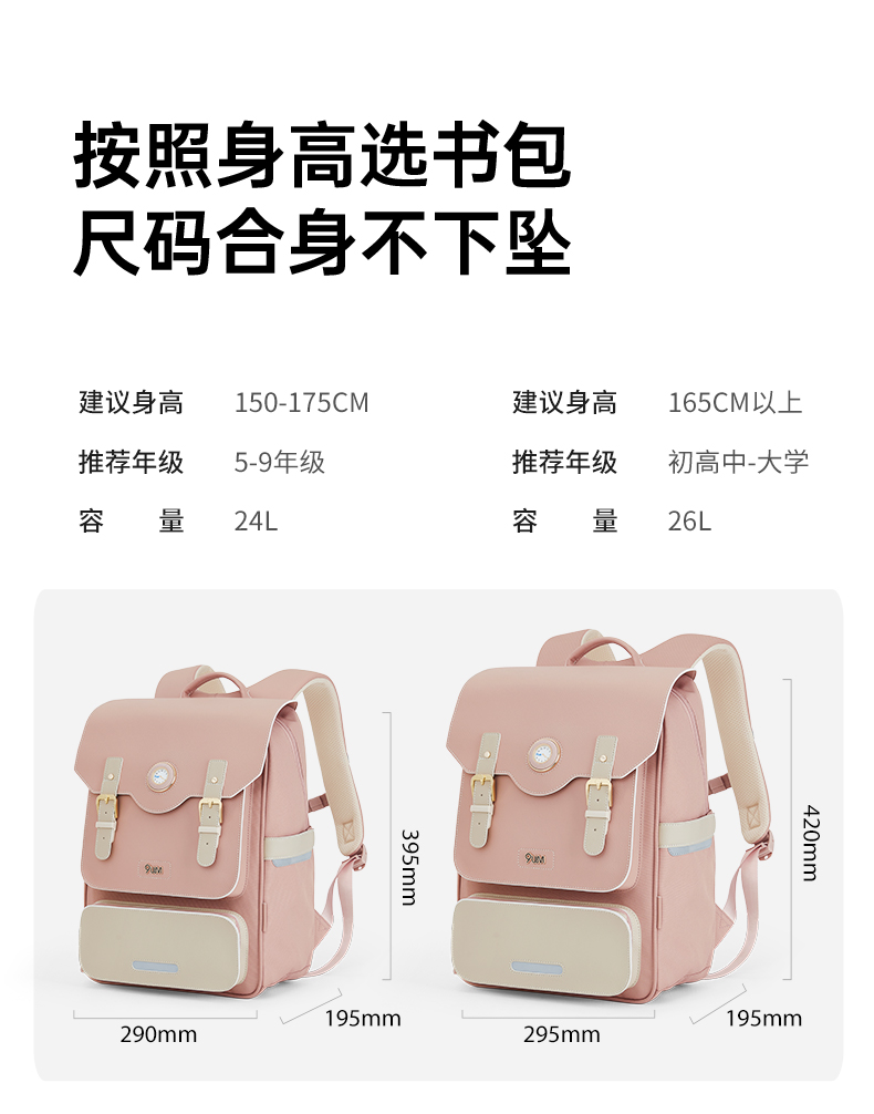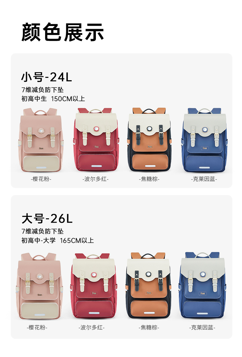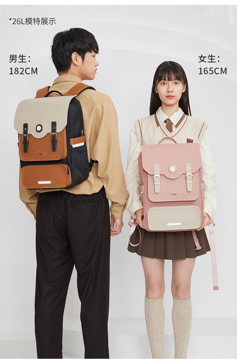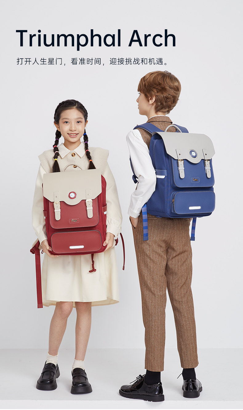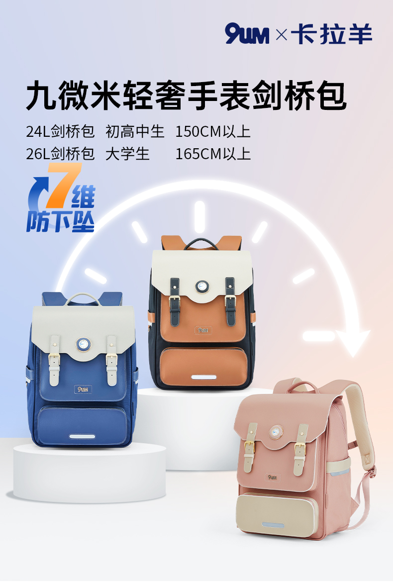 九微米X卡拉羊24L/26L中学生防下坠减负气囊缓震轻奢立体书包 凯旋门 U5170/L