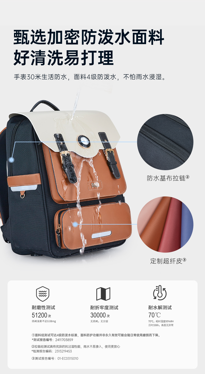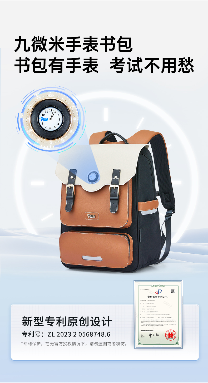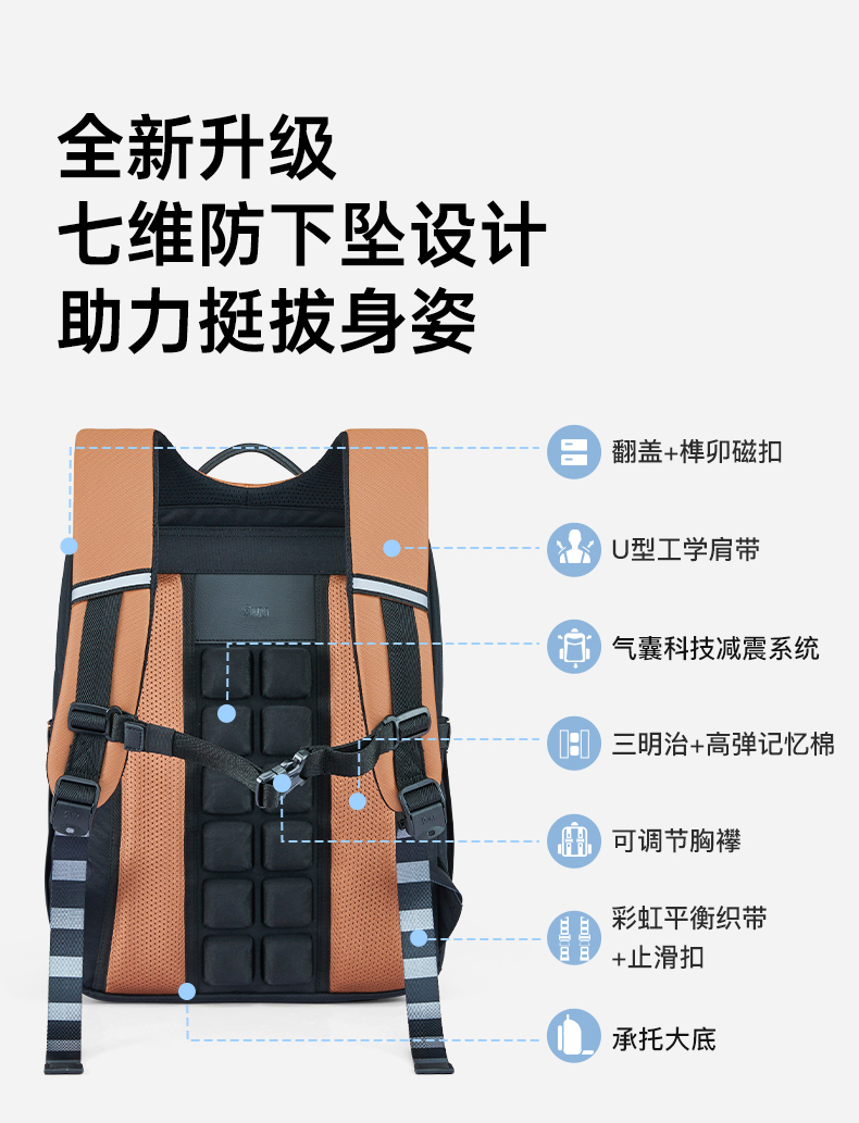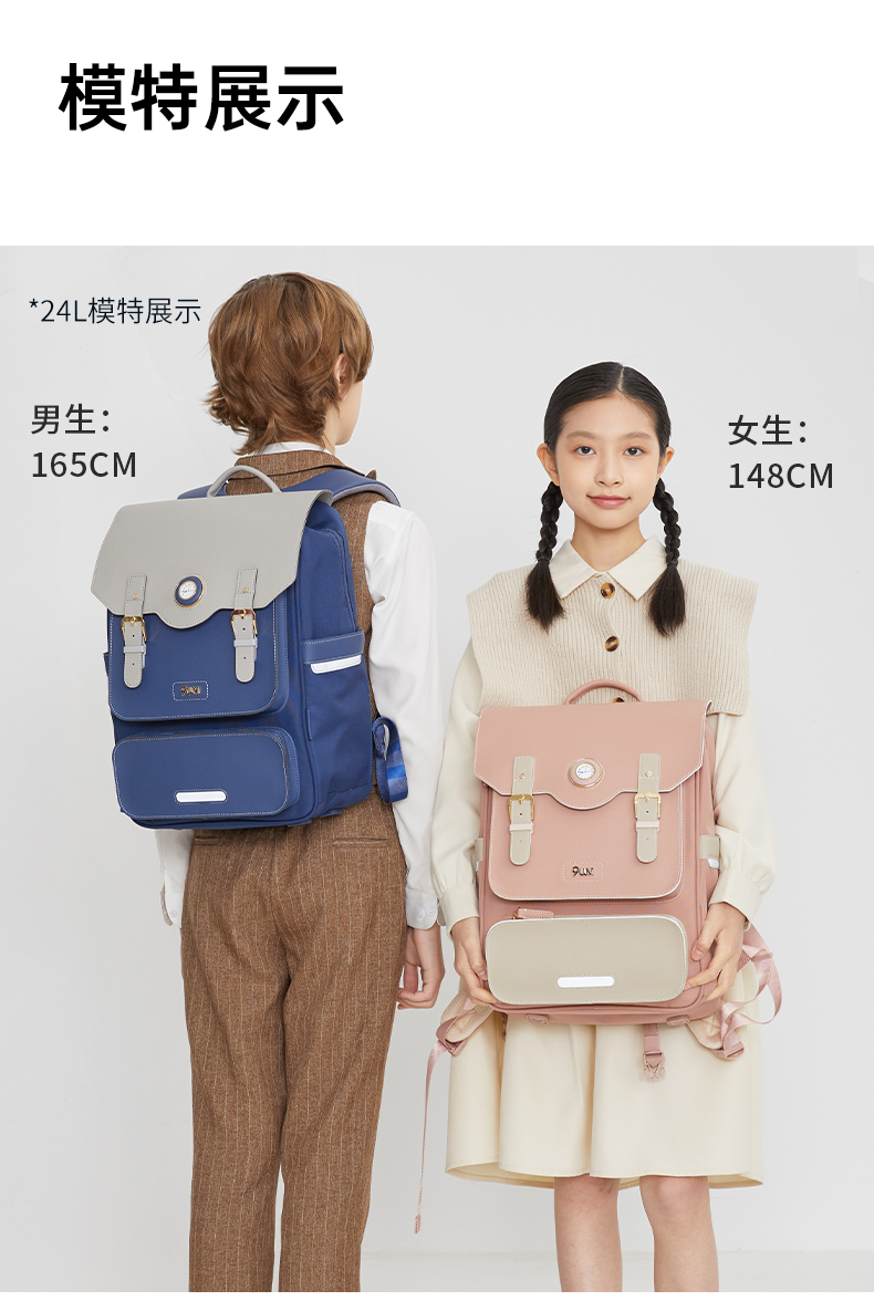 九微米X卡拉羊24L/26L中学生防下坠减负气囊缓震轻奢立体书包 凯旋门 U5170/L
