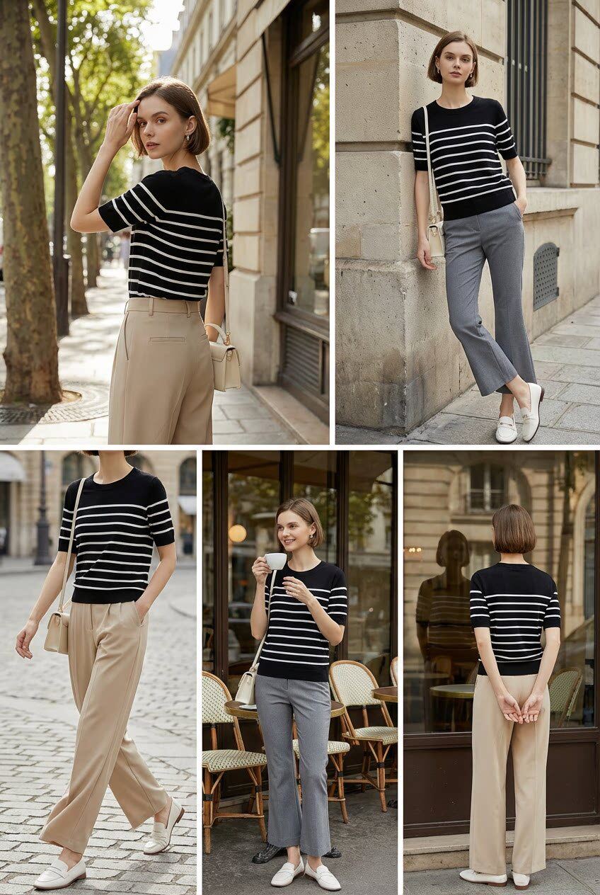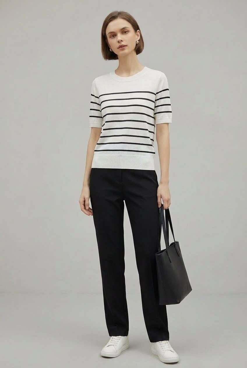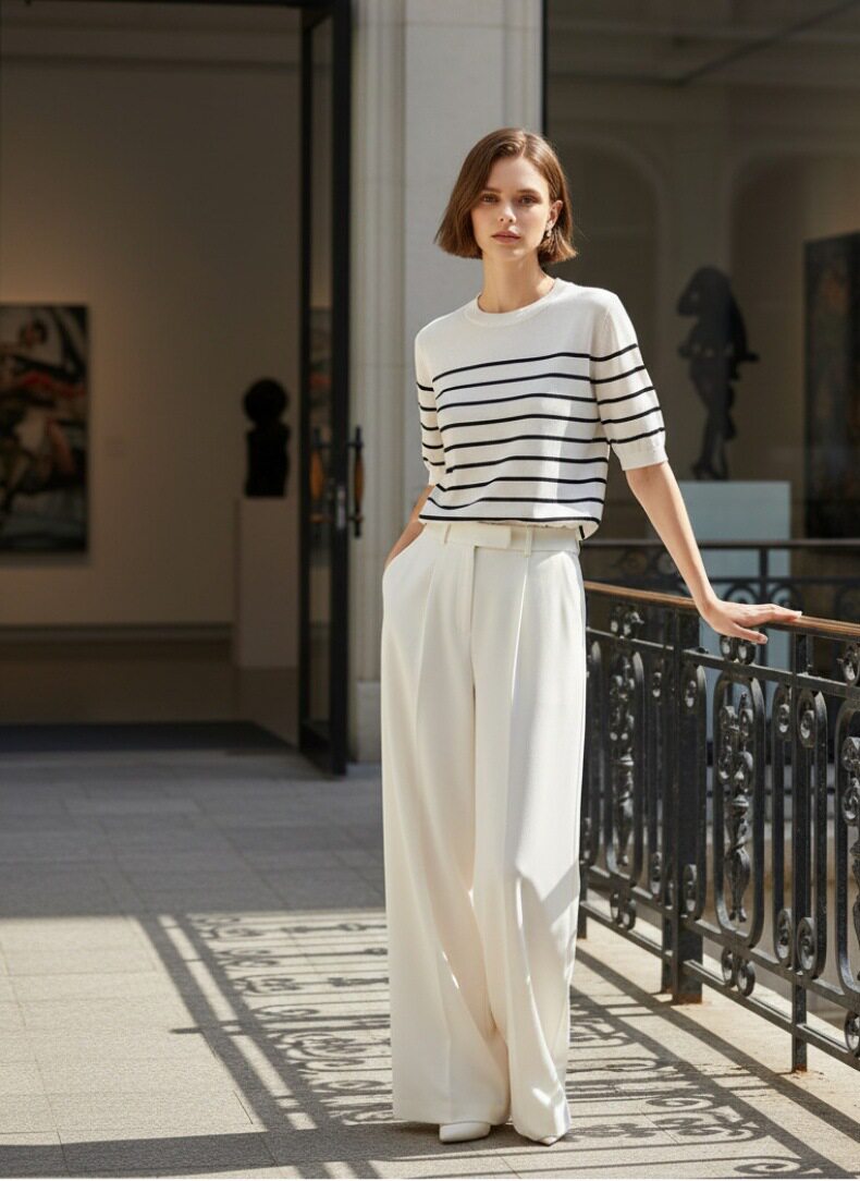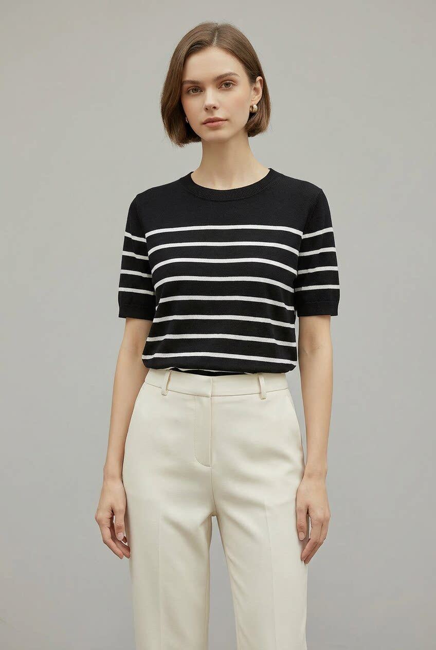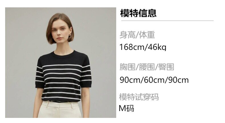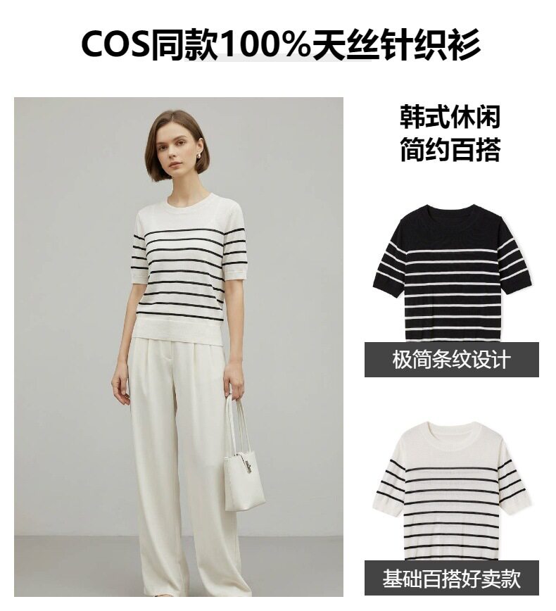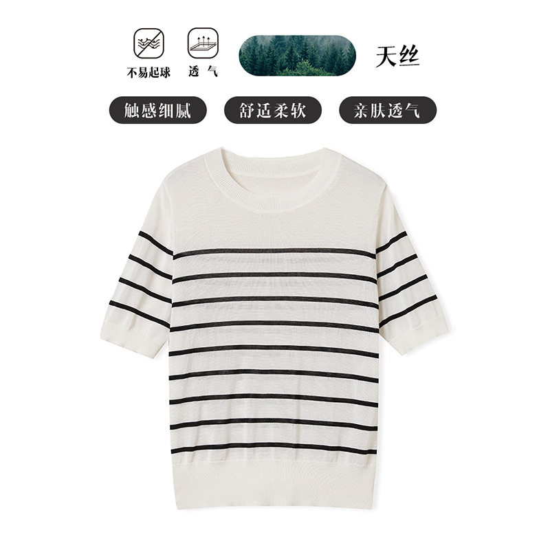 「自」全新升级【铂金会员146/天猫199/差价53】(14348)洛诗琳气质天丝圆领条纹短袖2026新款休闲百搭显瘦针织T恤