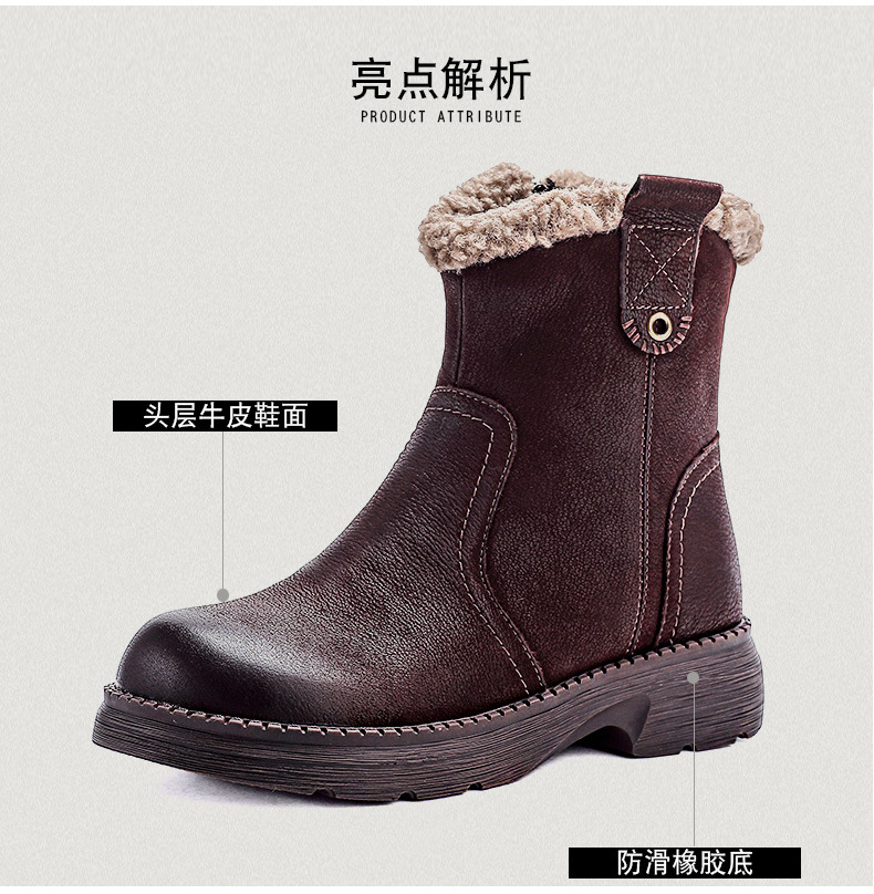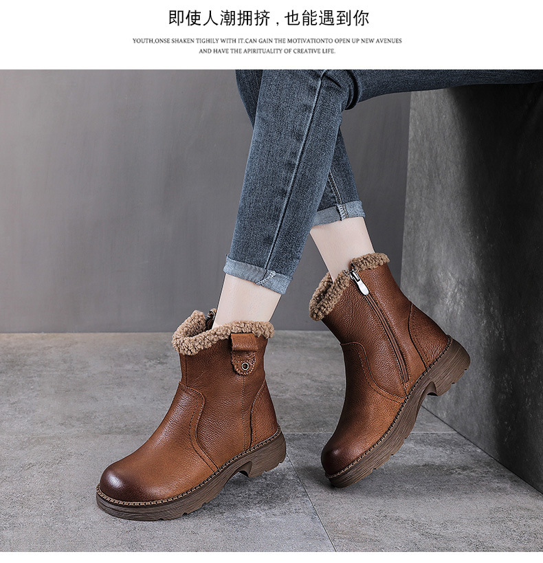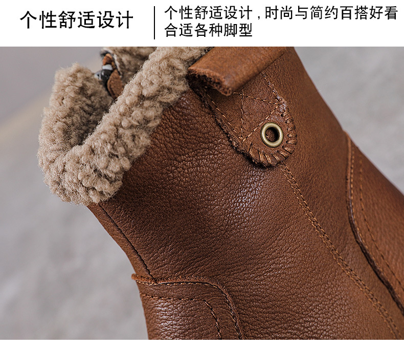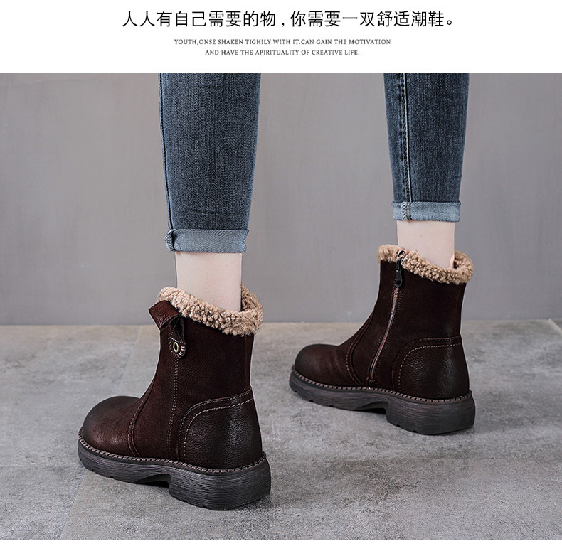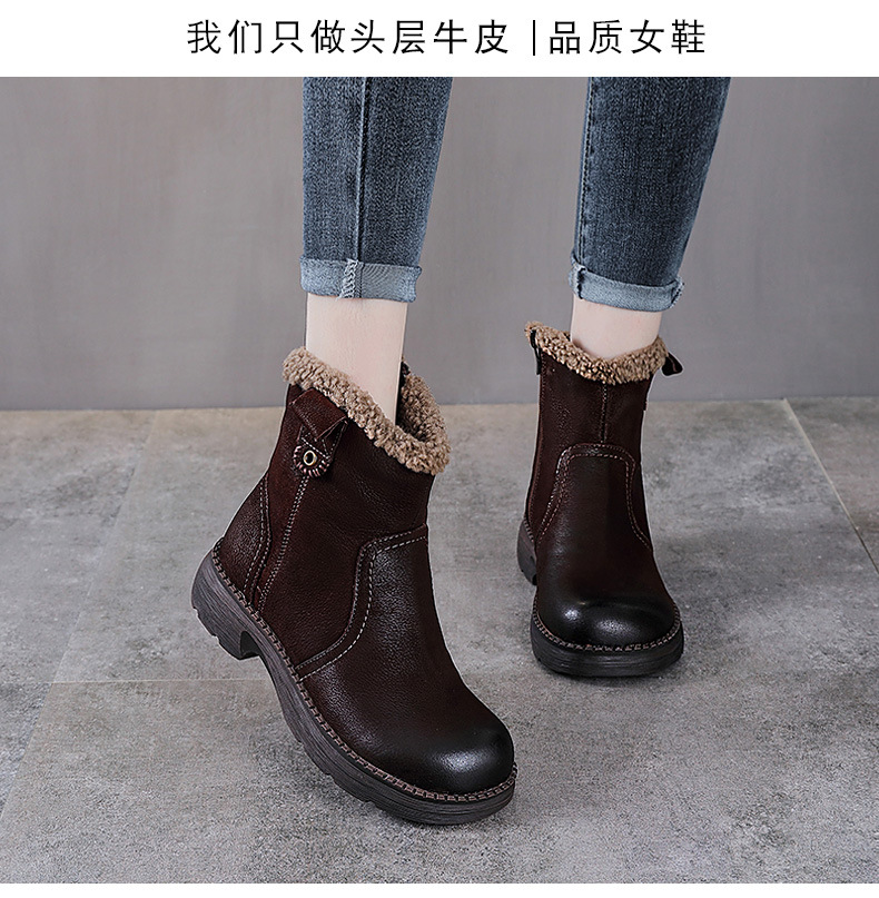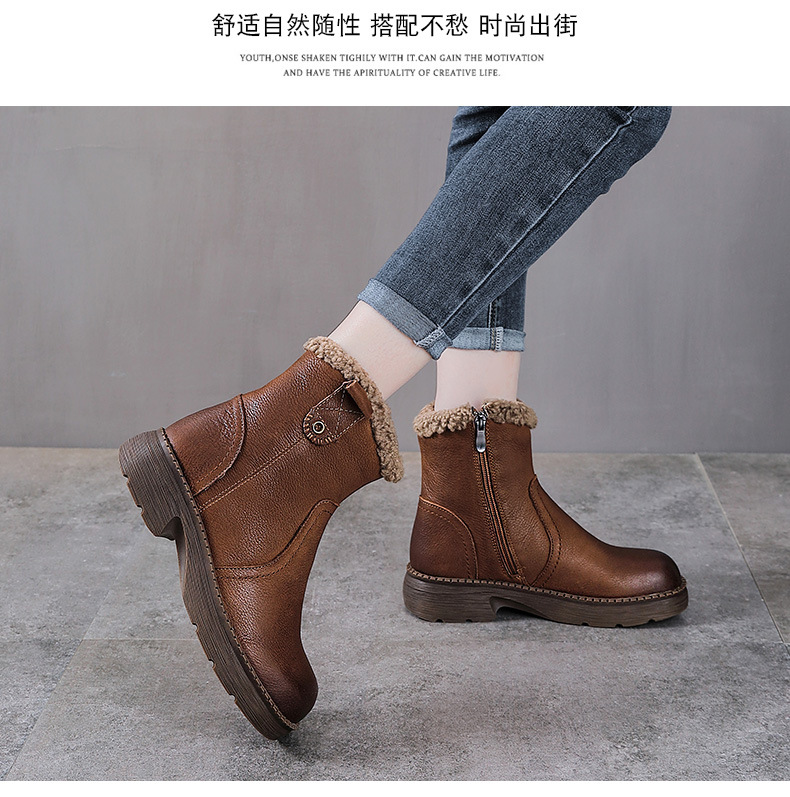 YR 2955厚底短靴雪地靴真皮复古马丁靴加绒保暖棉靴