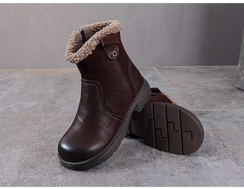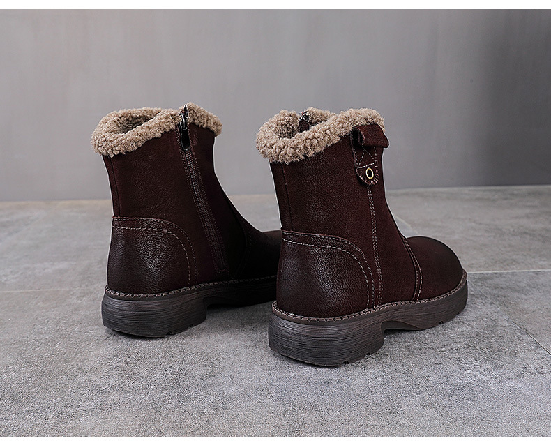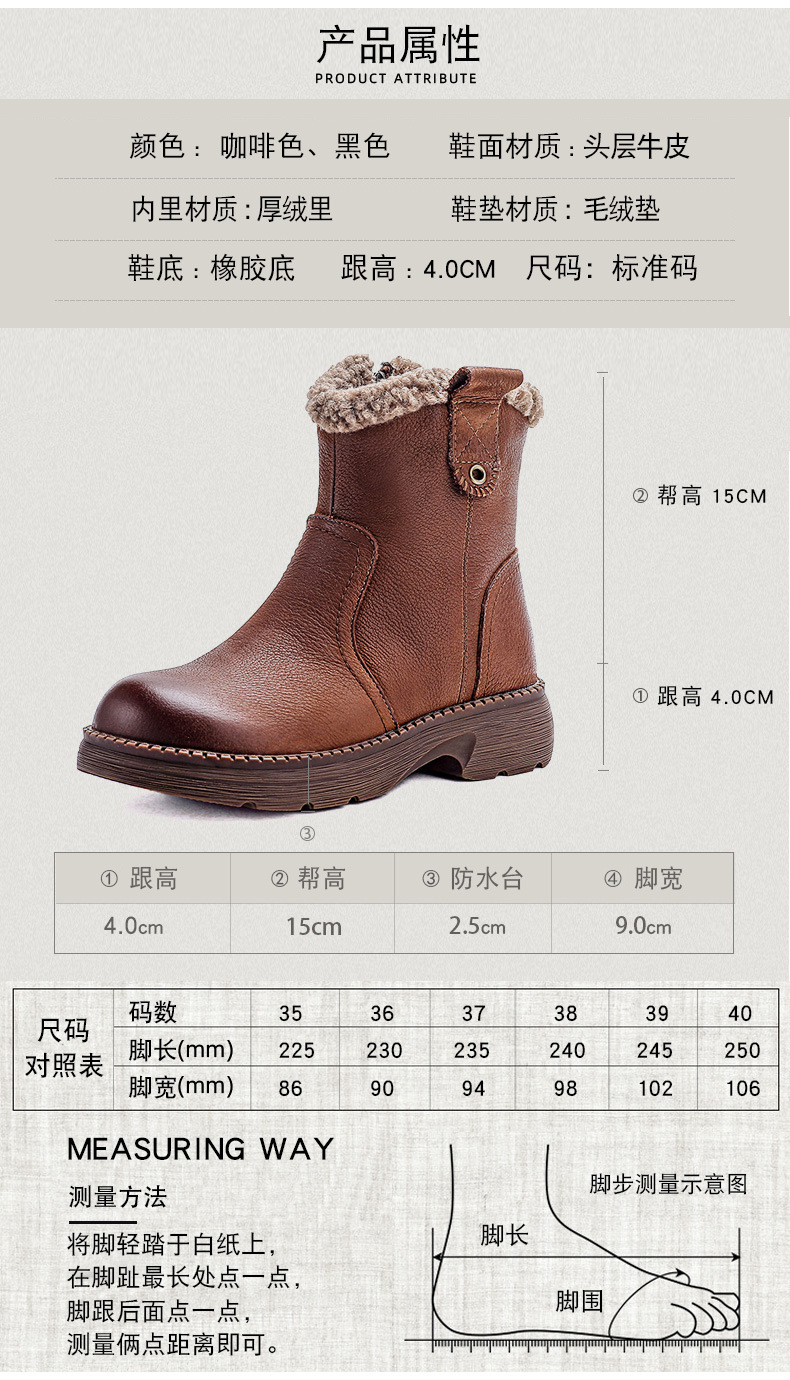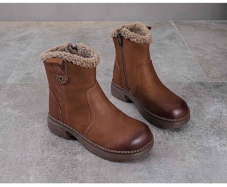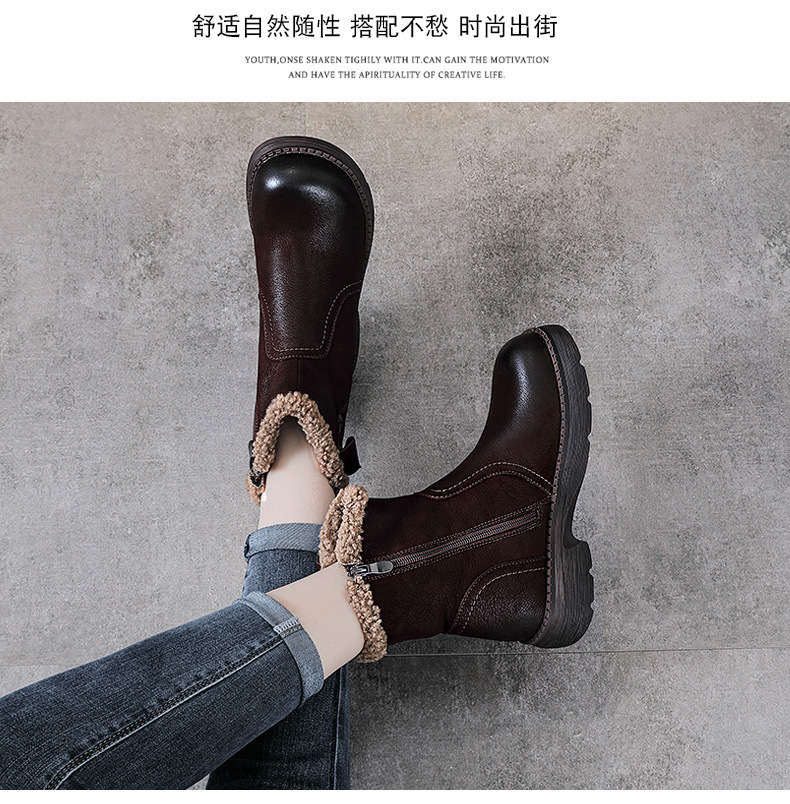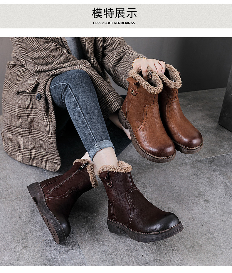 YR 2955厚底短靴雪地靴真皮复古马丁靴加绒保暖棉靴