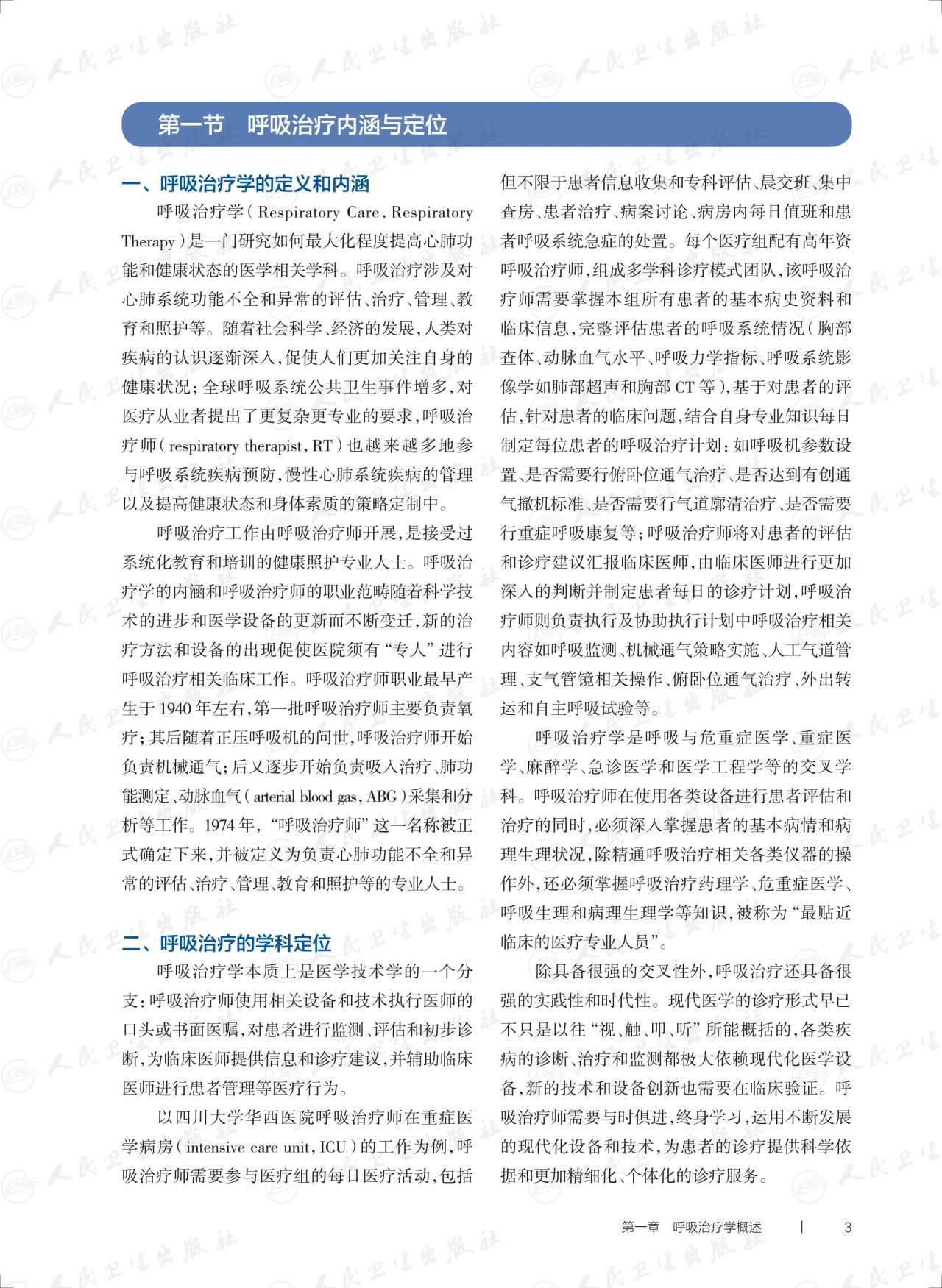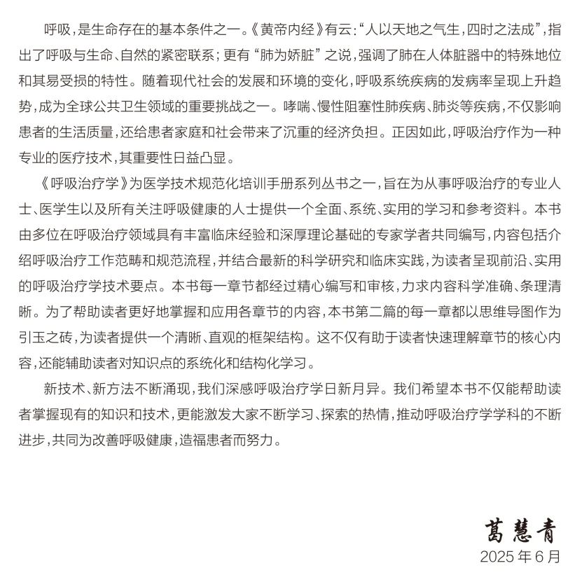 呼吸治疗学在应对心肺功能不全和异常方面发挥着重要作用,其核心目标是最大程度地提高患者的呼吸功能和整体健康状态。呼吸治疗师主要在大型医院的重症监护病房、呼吸科病房、急诊科等关键科室工作,负责呼吸支持、气道管理、心肺康复等重要任务。临床操作的规范化、系统化对于呼吸治疗学人才培养至关重要,本书编写过程中严格把控内容质量,力求客观规范;旨在为呼吸治疗学相关的医学院校师生、从业人员提供一个系统且实用的学习资料。