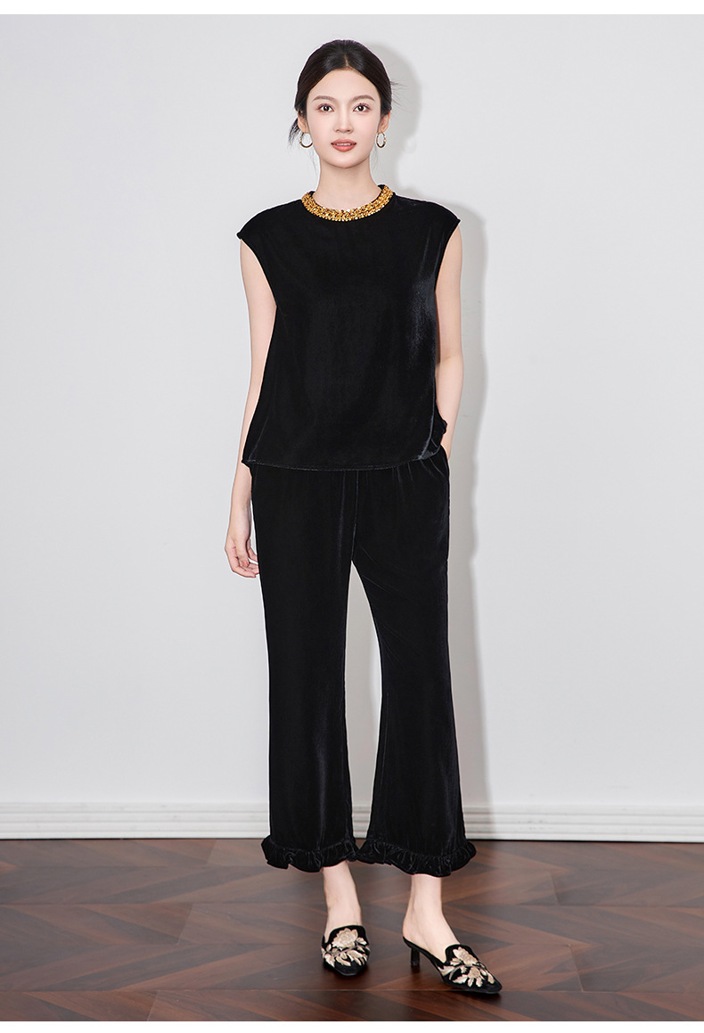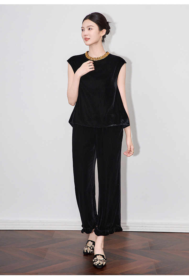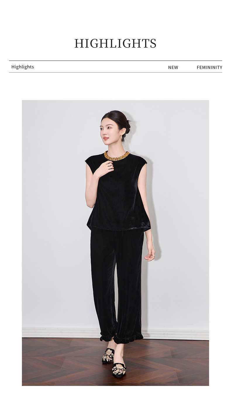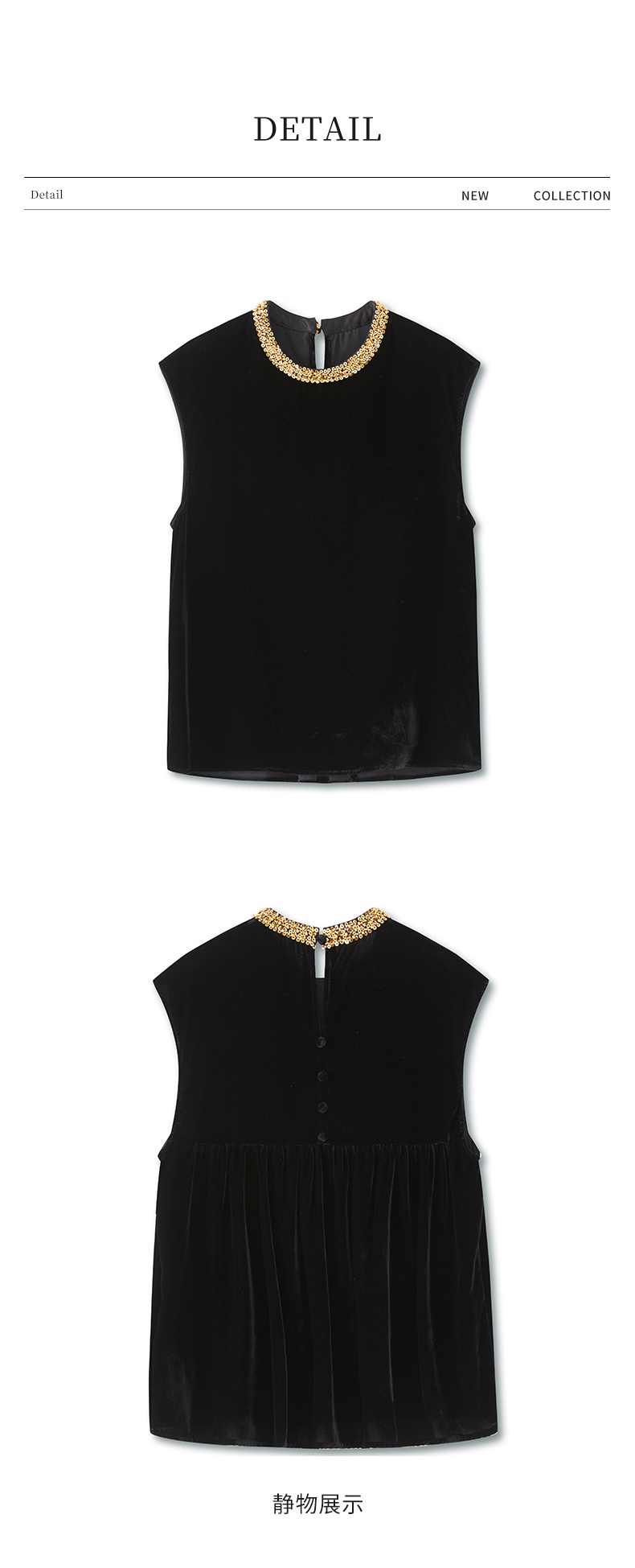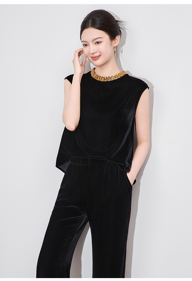 「高货wl」全新升级【铂金会员266/天猫359/差价93】(11000)洛诗琳时尚重工亮片钉珠上衣2025夏季通勤风丝绒无袖上衣
