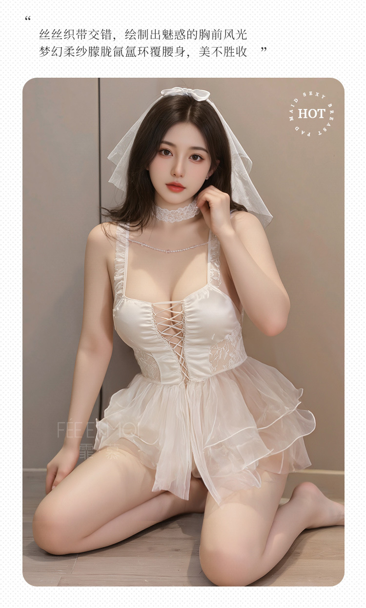 【新娘之夜】霏慕 珠链点缀前绑带新娘套装情趣内衣 ZY6631