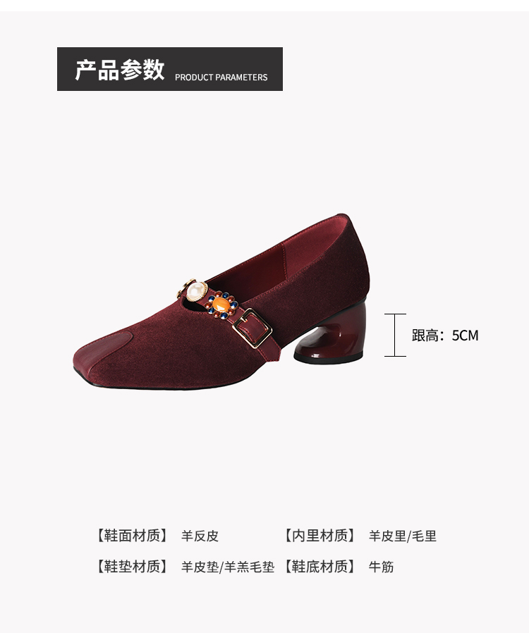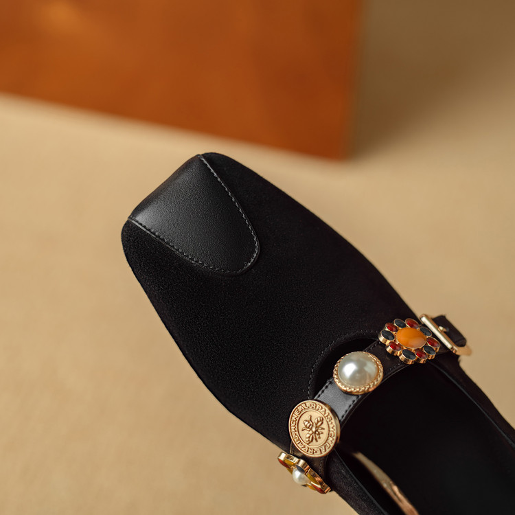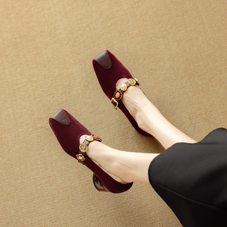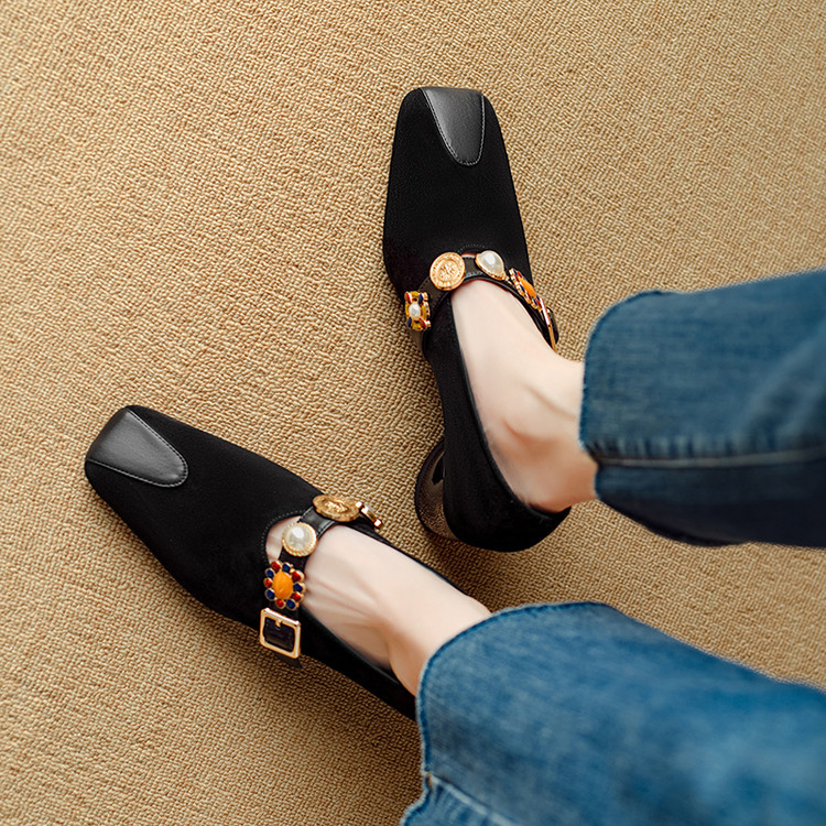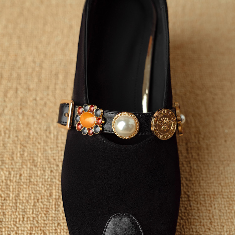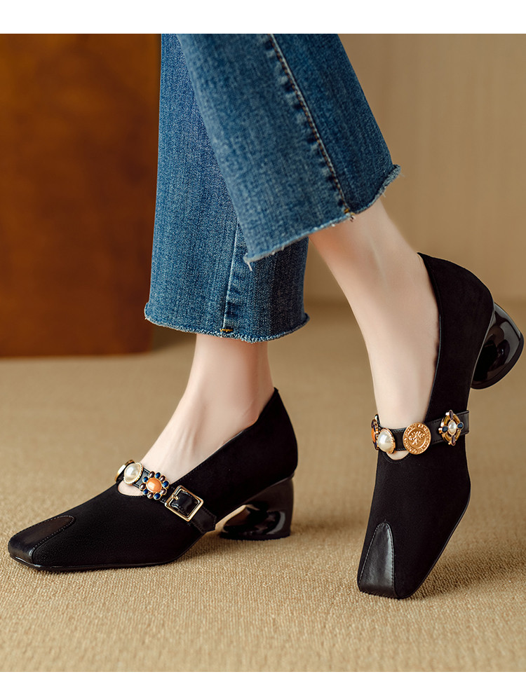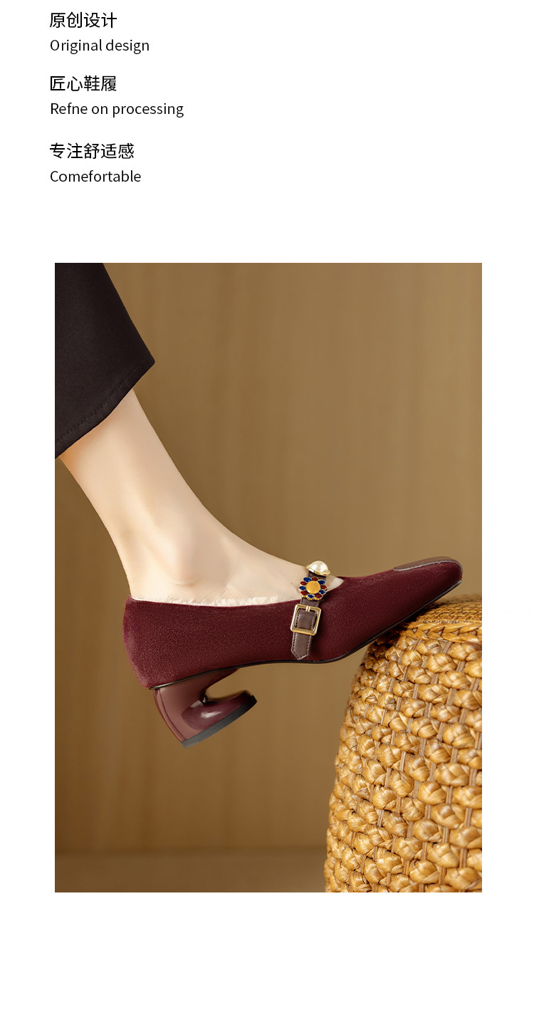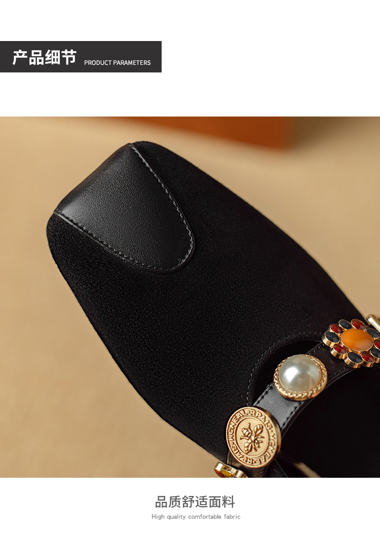 【预售5天】新款法式金属一字扣带玛丽珍女鞋浅口低跟方头小香风单鞋女NJMK&K1131-1