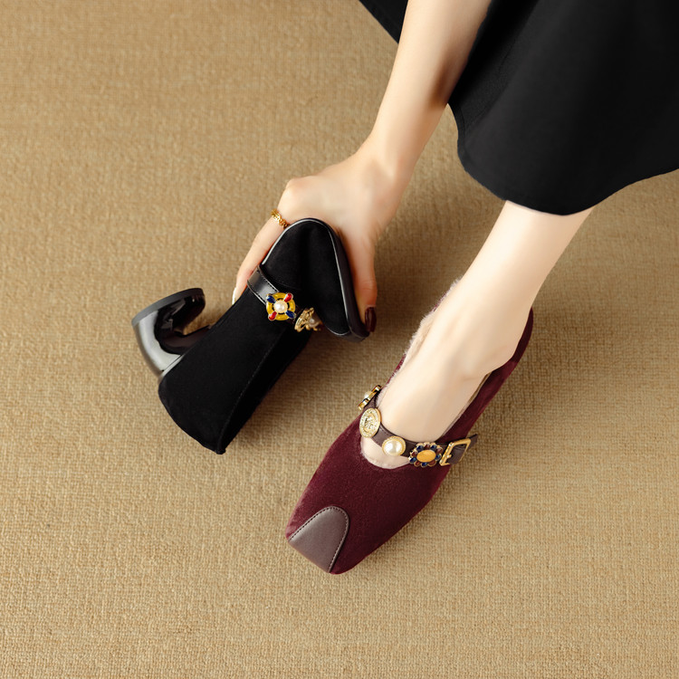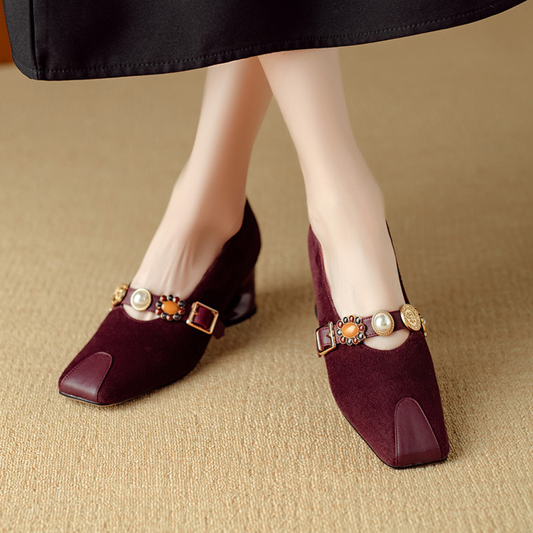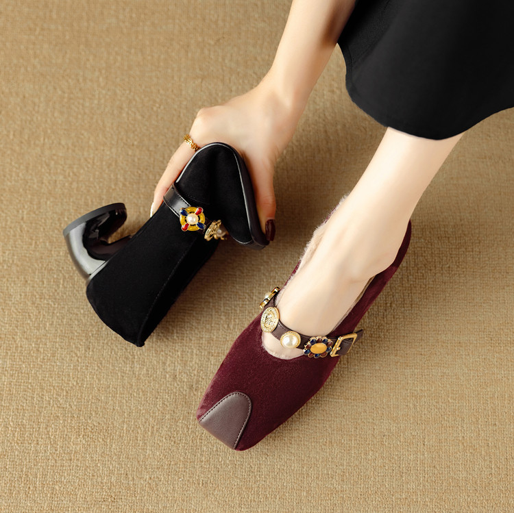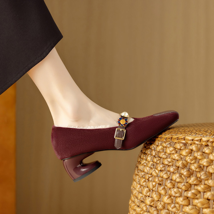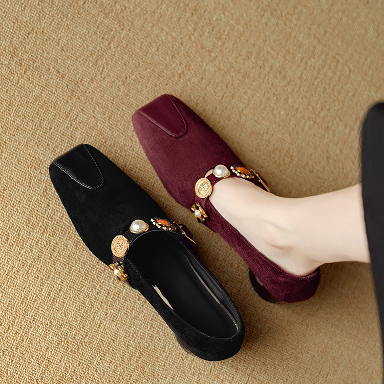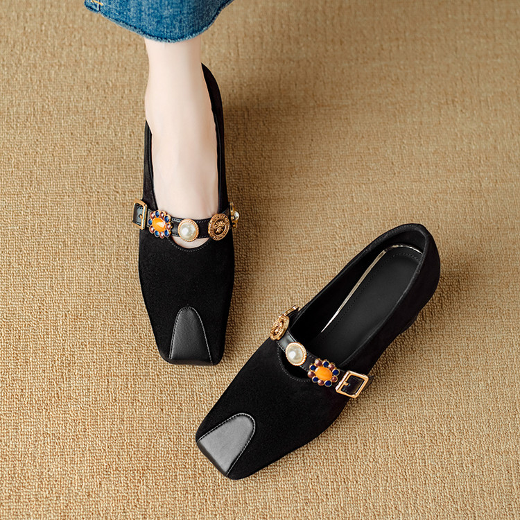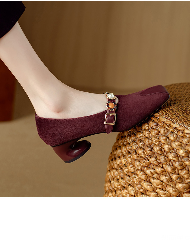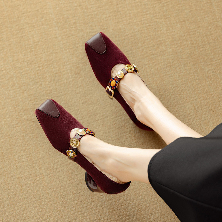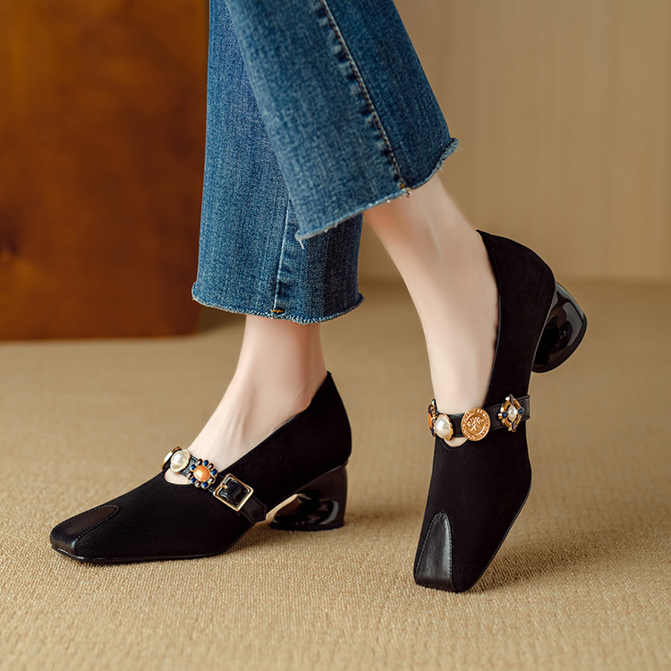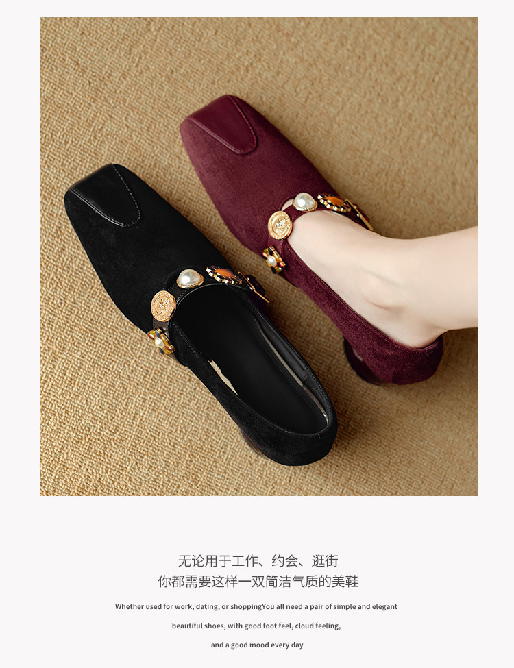 【预售5天】新款法式金属一字扣带玛丽珍女鞋浅口低跟方头小香风单鞋女NJMK&K1131-1
