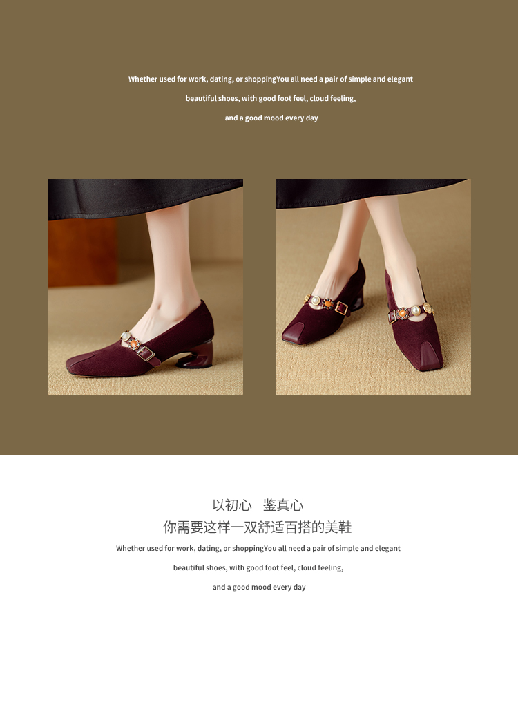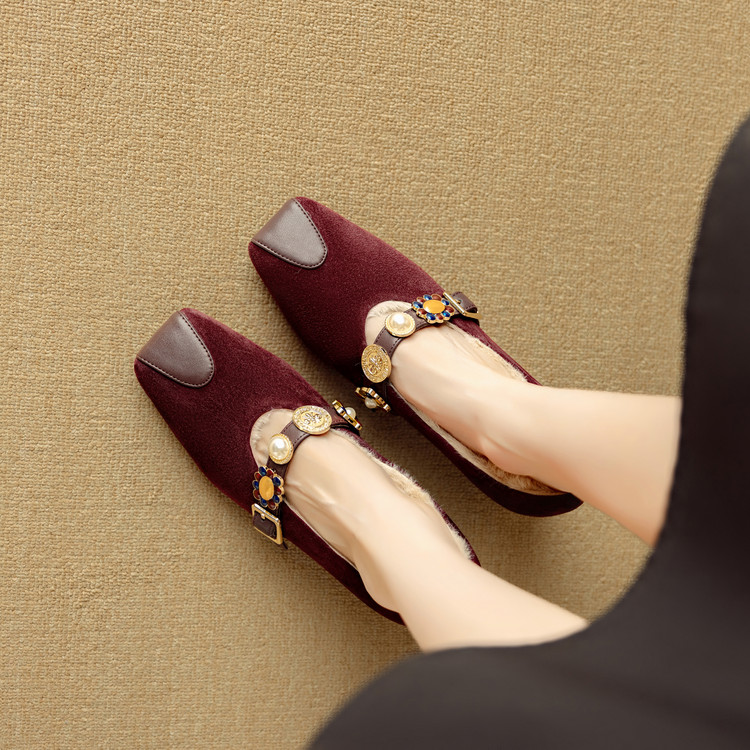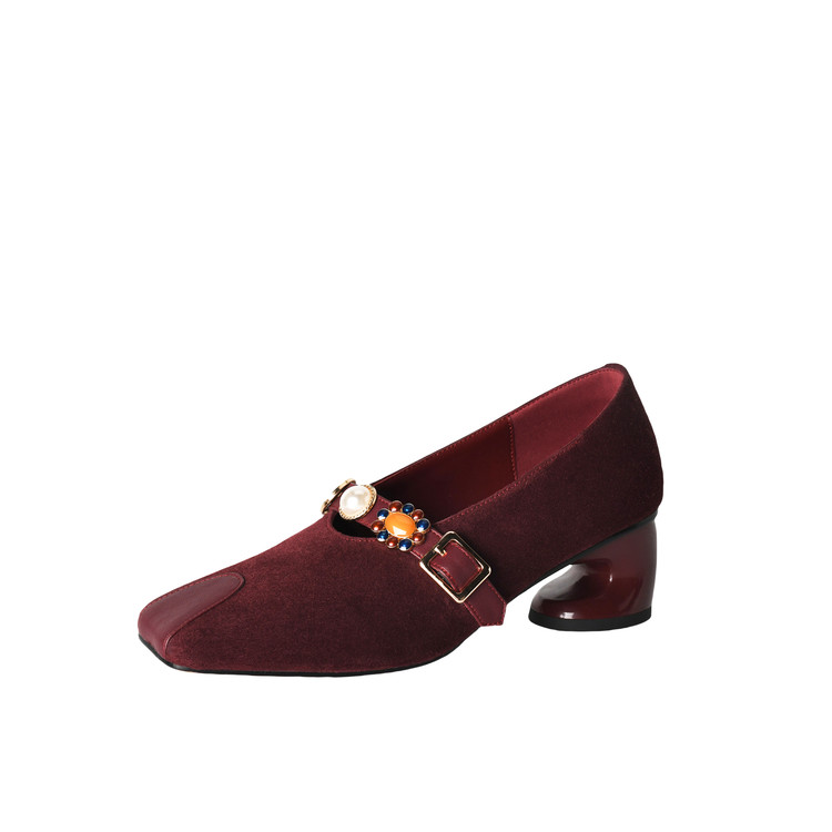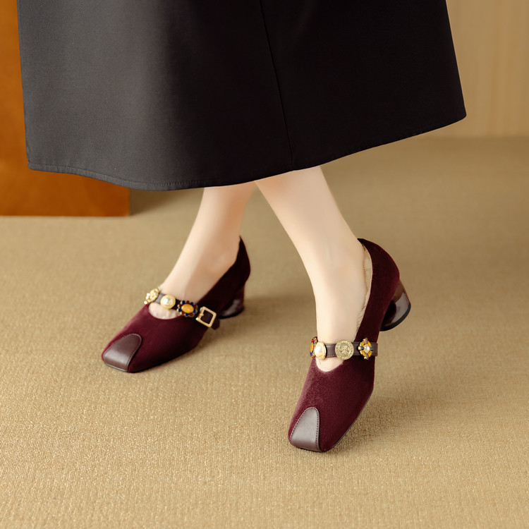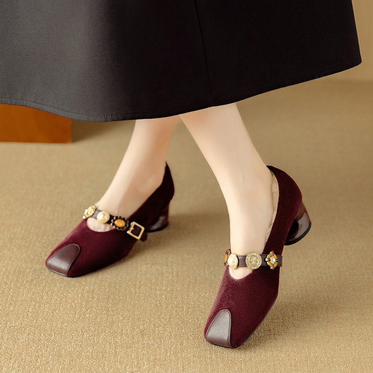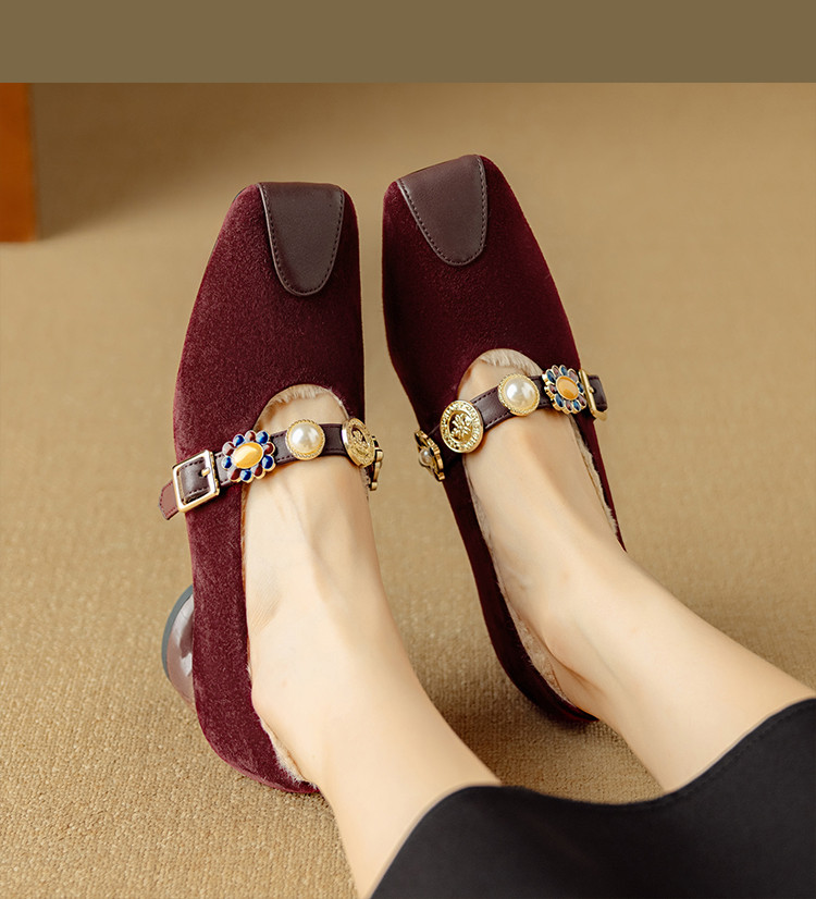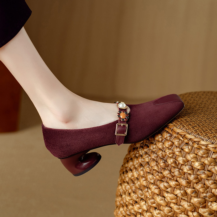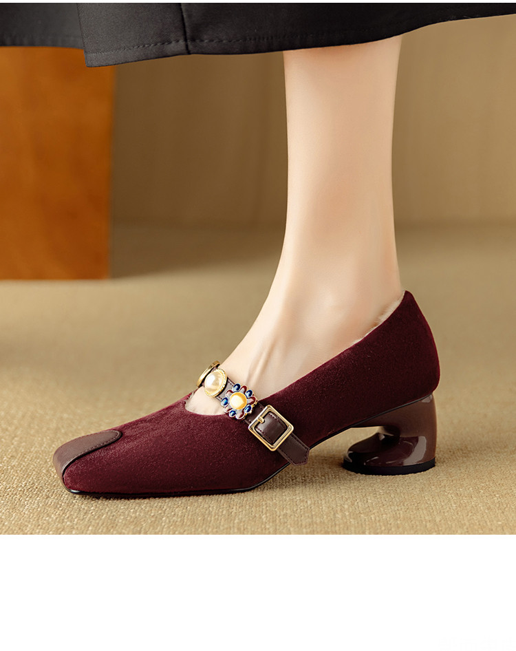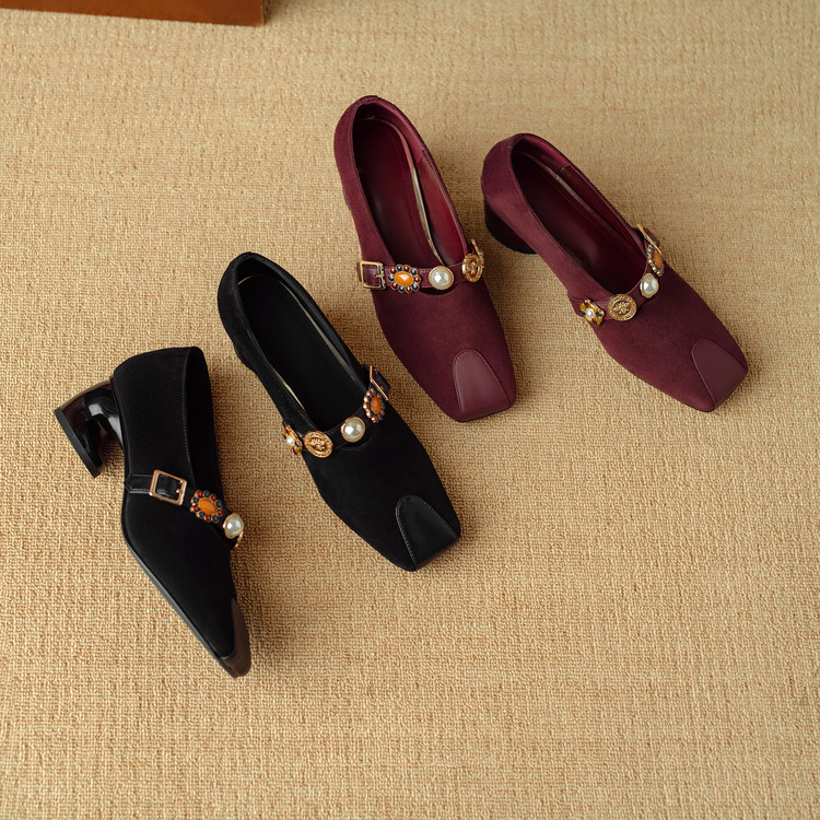 【预售5天】新款法式金属一字扣带玛丽珍女鞋浅口低跟方头小香风单鞋女NJMK&K1131-1