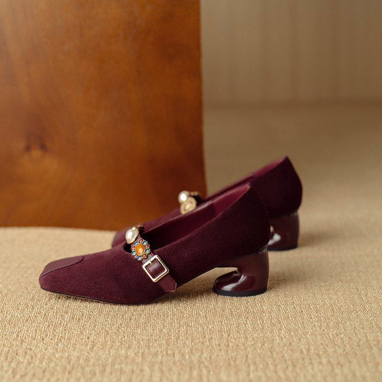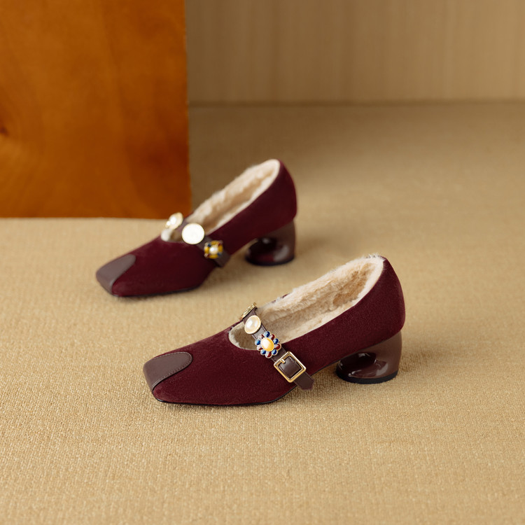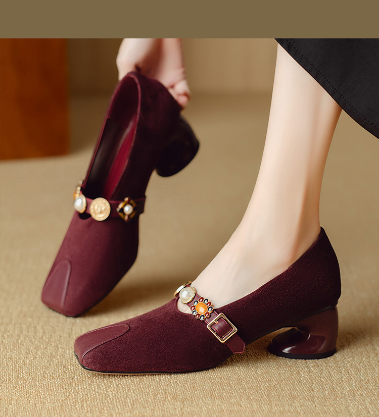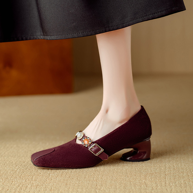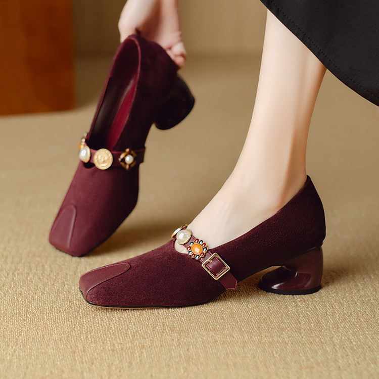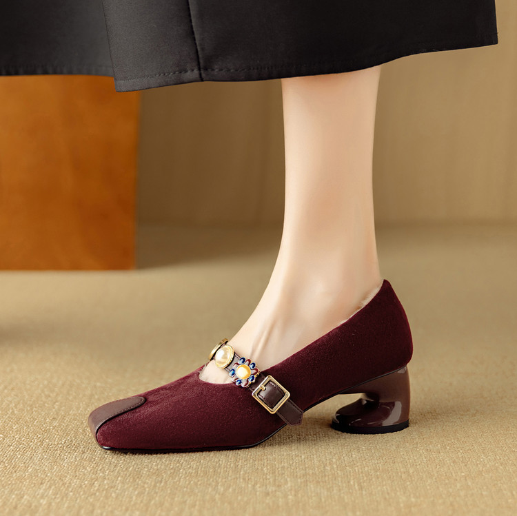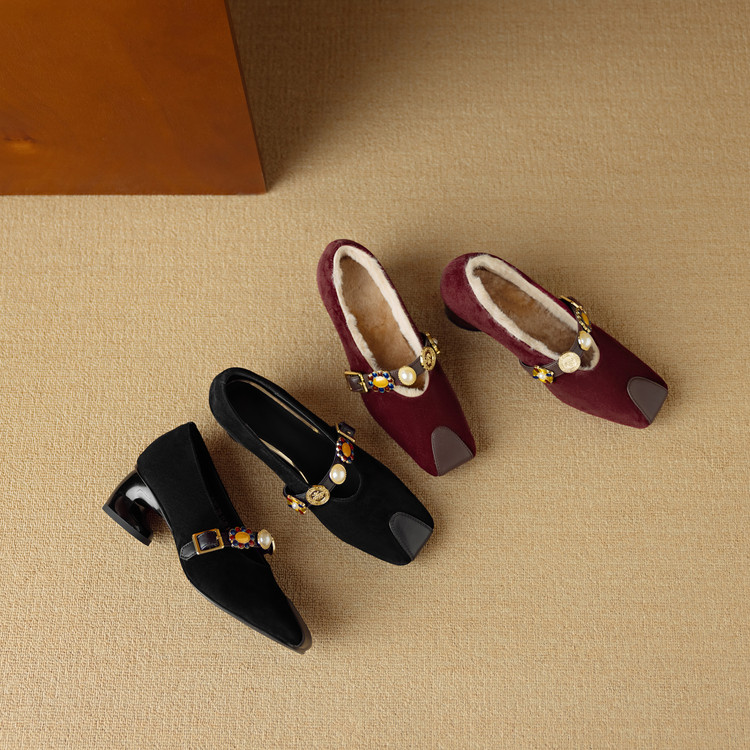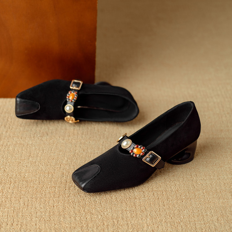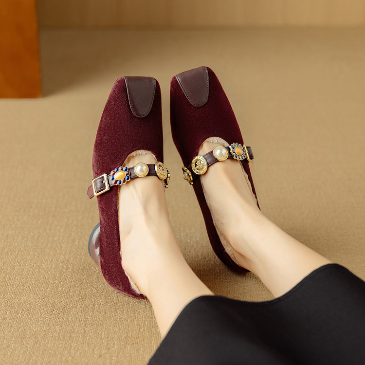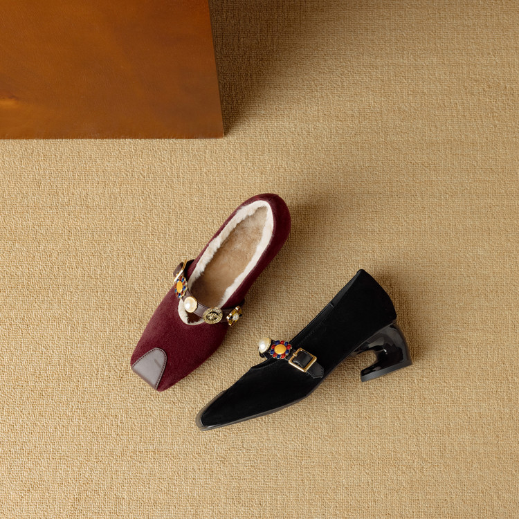 【预售5天】新款法式金属一字扣带玛丽珍女鞋浅口低跟方头小香风单鞋女NJMK&K1131-1