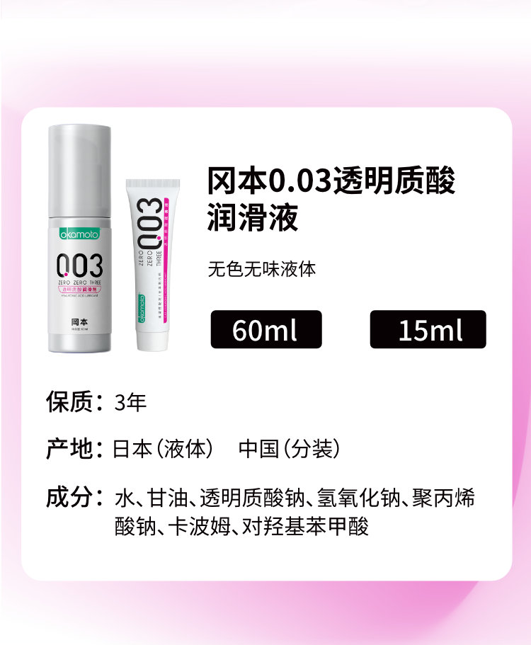 【年末亏本清仓】冈本003透明质酸润滑液60ml/15ml/12袋装