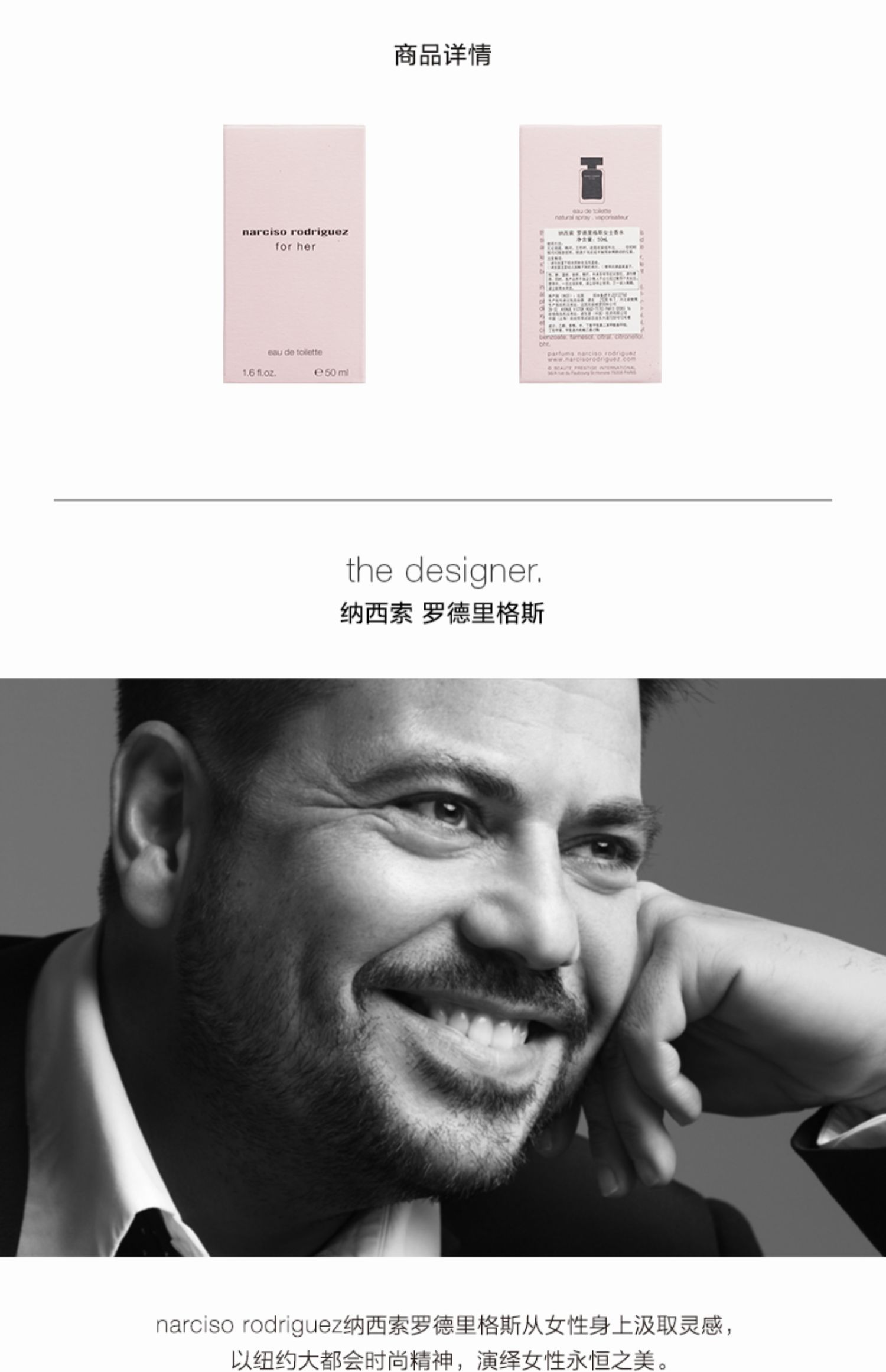纳西索narciso forher黑瓶女士 淡香清新 纳西素香水50ml