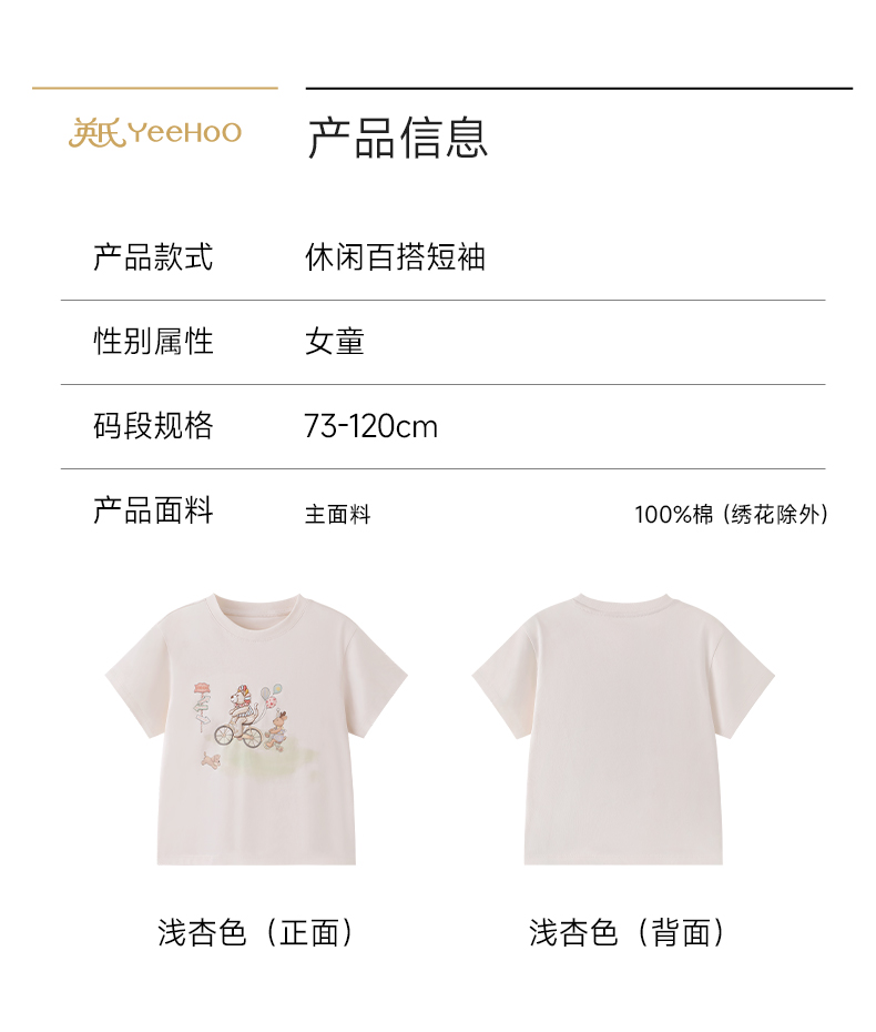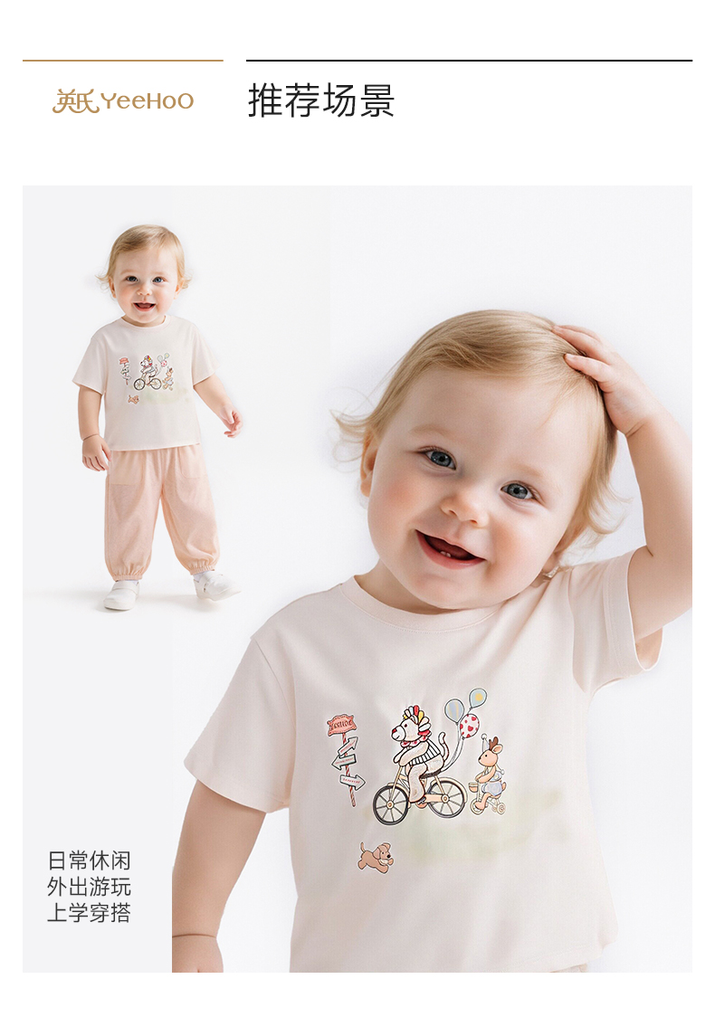 【联名款】英氏&Happy Horse儿童T恤宝宝夏季短袖T恤女童印花上衣