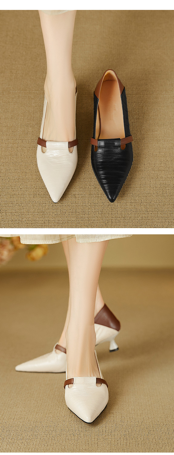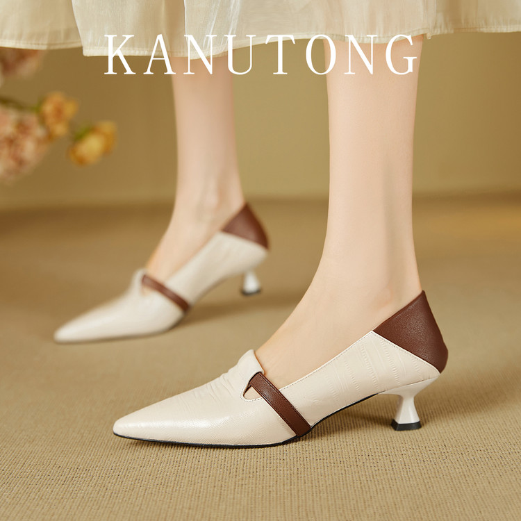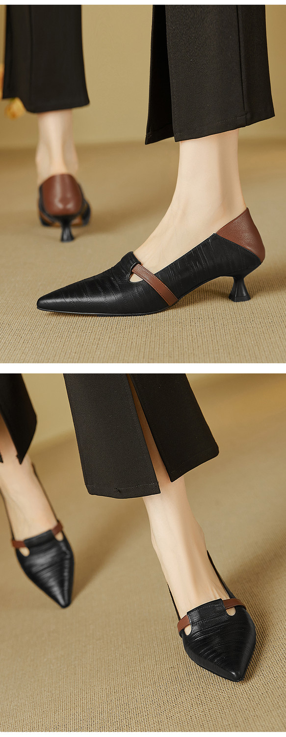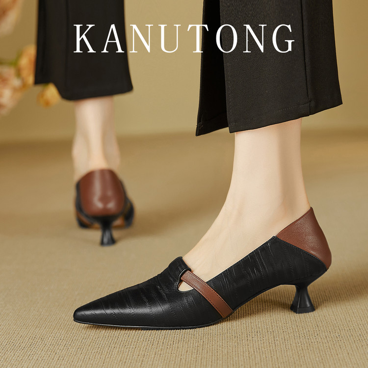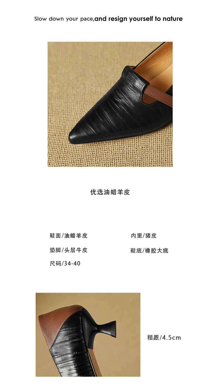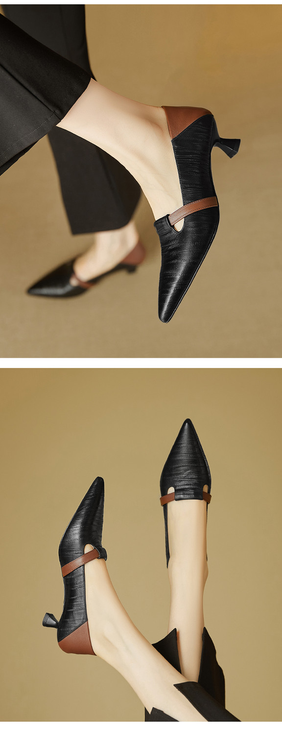 【预售5天】巴黎邂逅~气质尖头拼色一脚蹬单鞋女浅口复古猫跟高跟鞋KNTNX&KT1817
